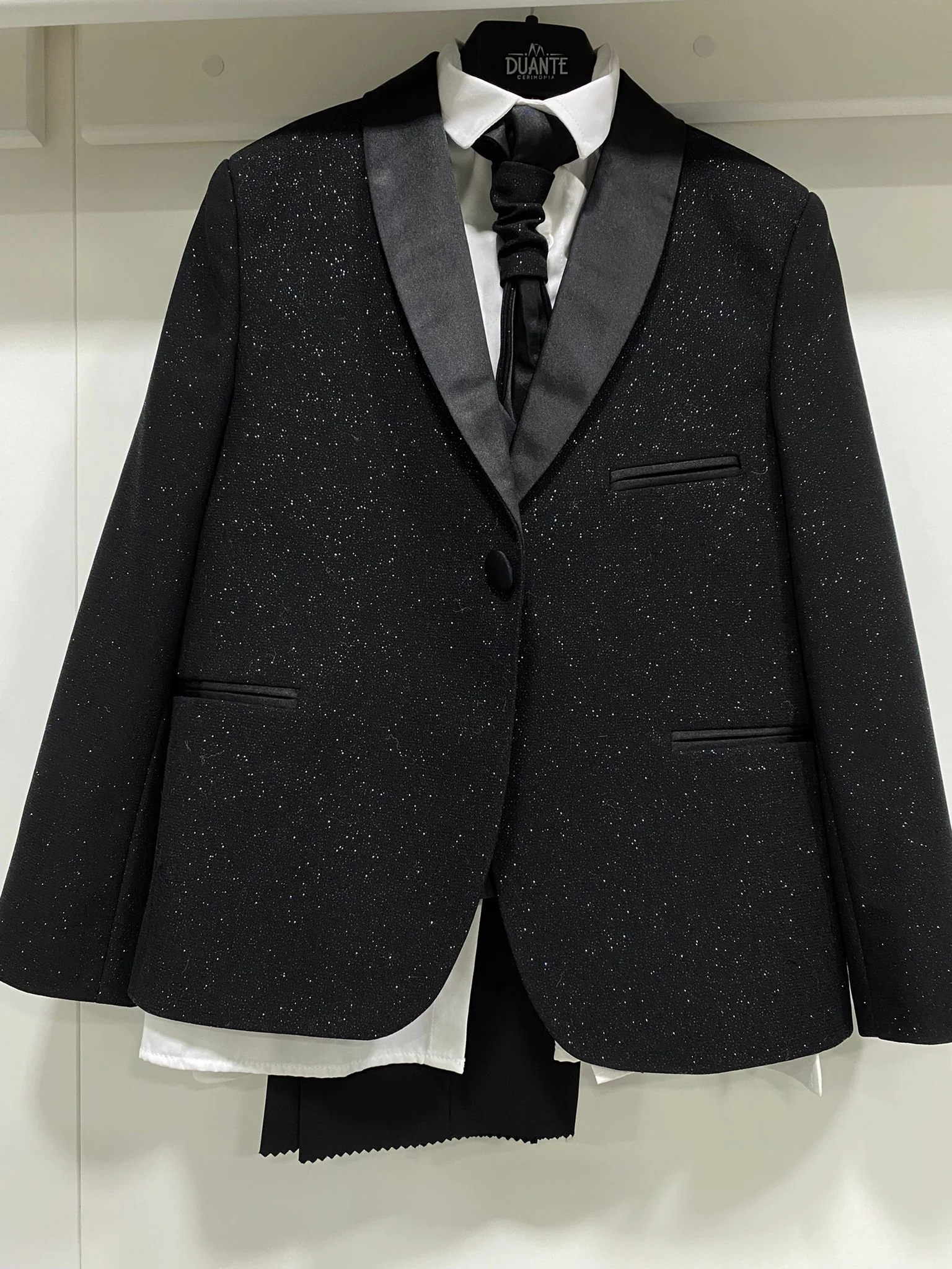 Abito bimbo con giacca, panciotto e pastrom brillè, con collo e pantalone di raso ottima vestibilità