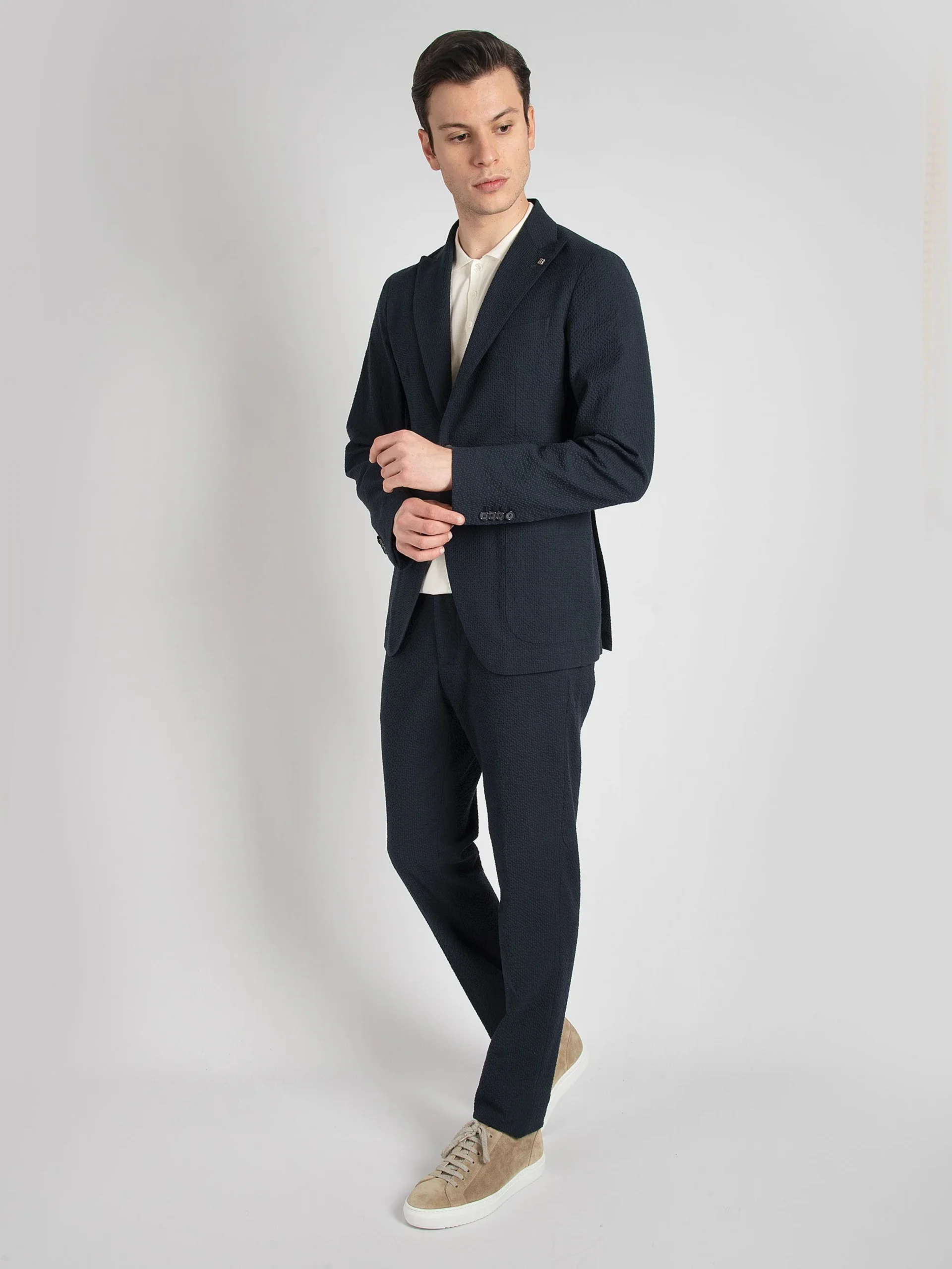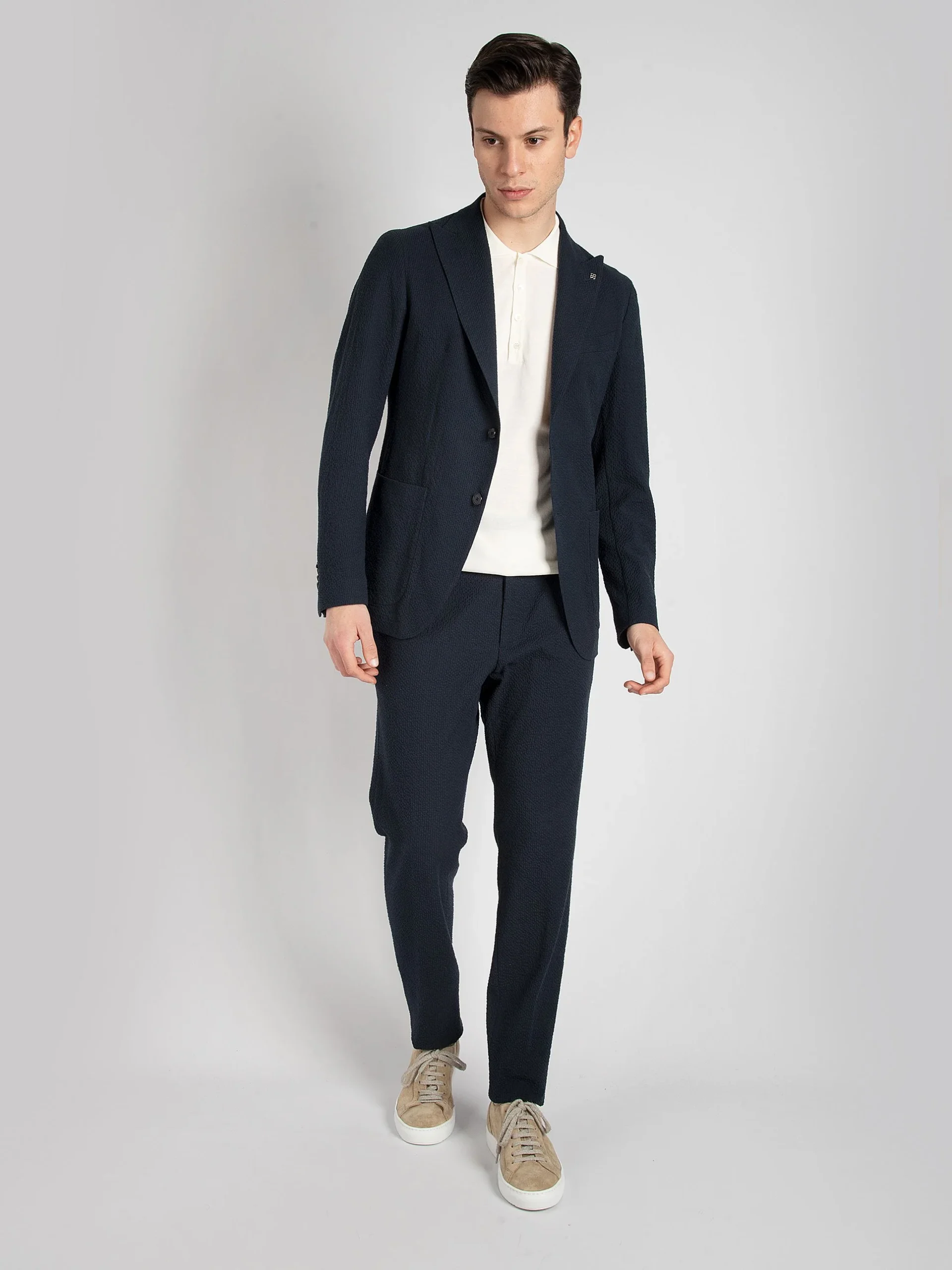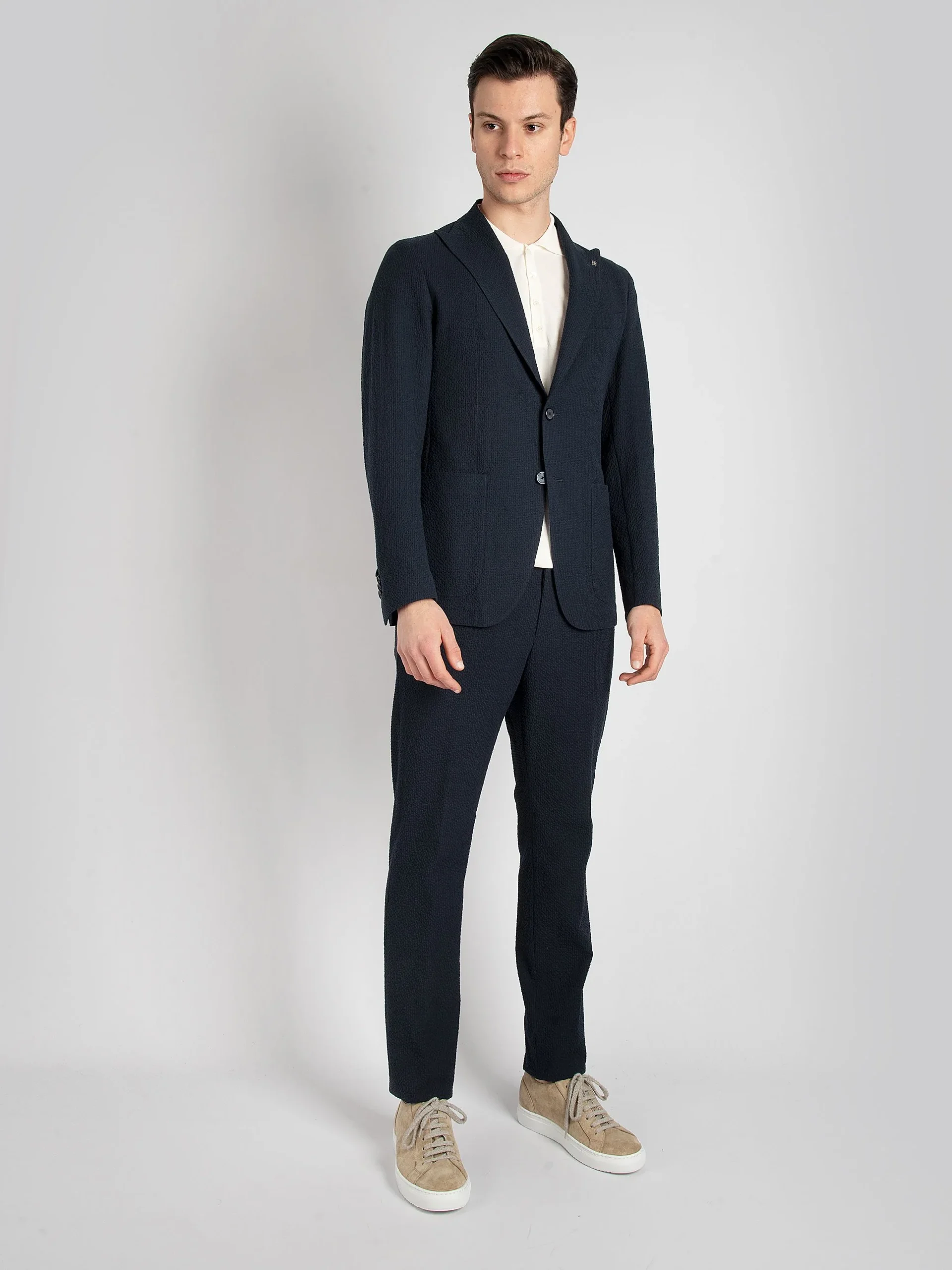 Mod: A-DERRICK26K14 23UEZ076 B3220 Abito ‘Derrick’ sartoriale sfoderarto. Tessuto seersucker blu notte. Vestibilità asciutta drop 7. Giacca monopetto due bottoni con rever lancia lunga. Doppia tasca interna in camoscio. Spilla logata in dotazione. Tasche toppa e ticket poket sul petto. Doppio spacco sul retro. Pantalone con una pence e tasche filo. Laccetto ed elastico in […]