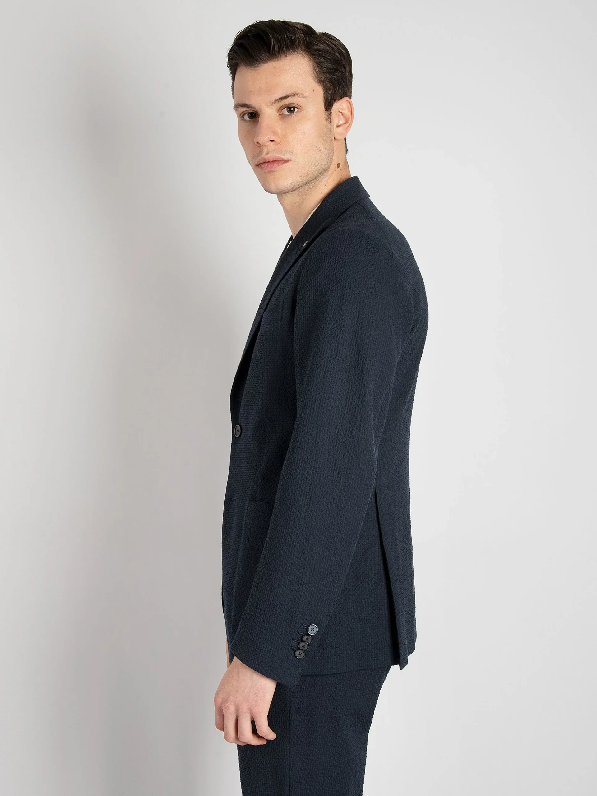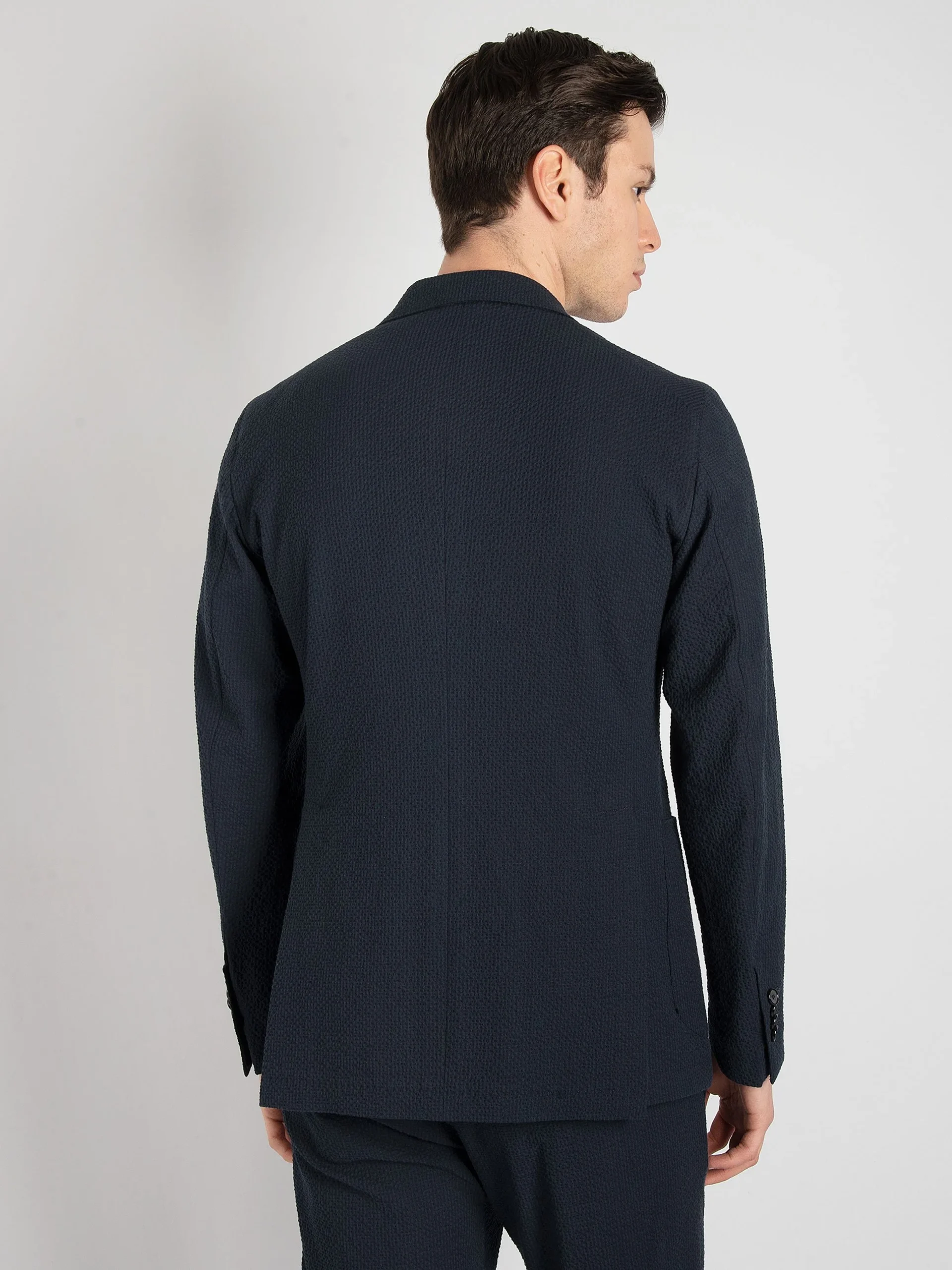 - Tessuto seersucker blu notte.