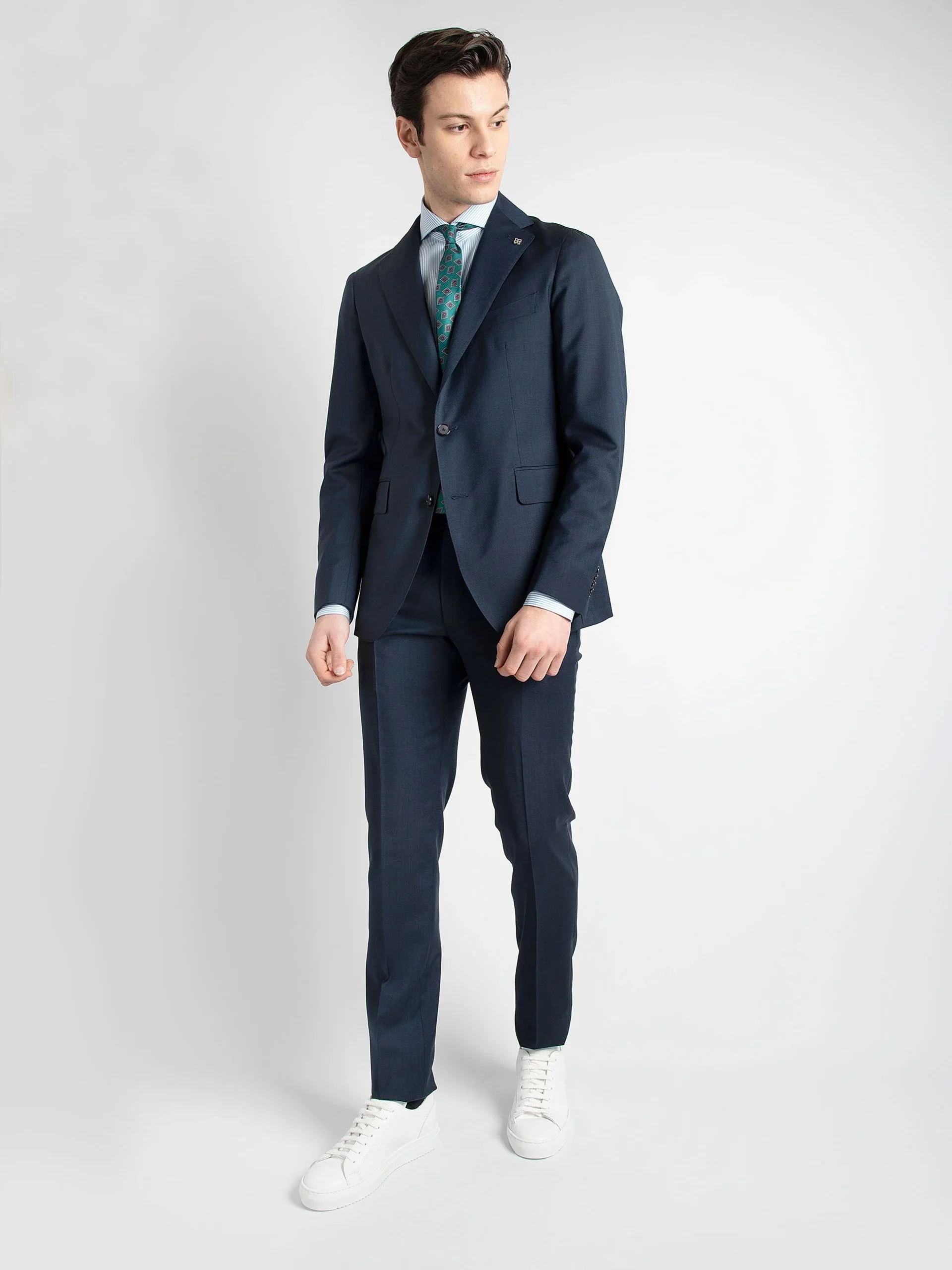 - Giacca monopetto due bottoni con rever classico.