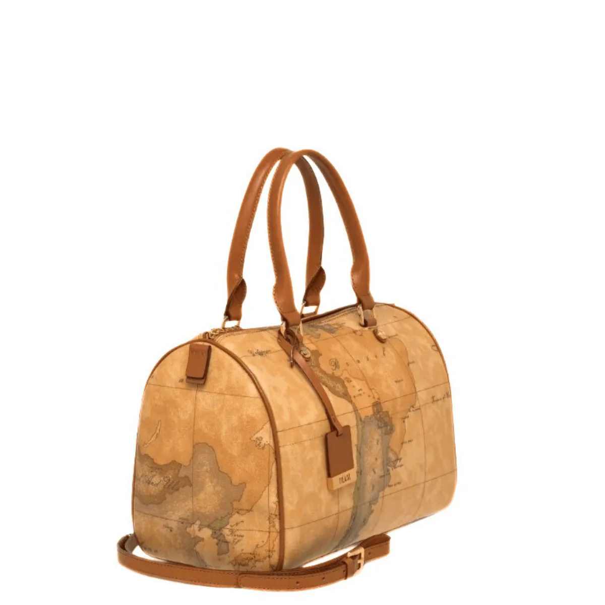Borsa a bauletto di ALVIERO MARTINI 1^ CLASSE in tessuto stampato con cartina geografica Geo Classic dalla doppia portabilità, a mano grazie ai manici arrotondati e a spalla con la tracolla regolabile. Ha la chiusura con zip. I dettagli accurati e le rifiniture preziose sottolineano la sua realizzazione Made in Italy.