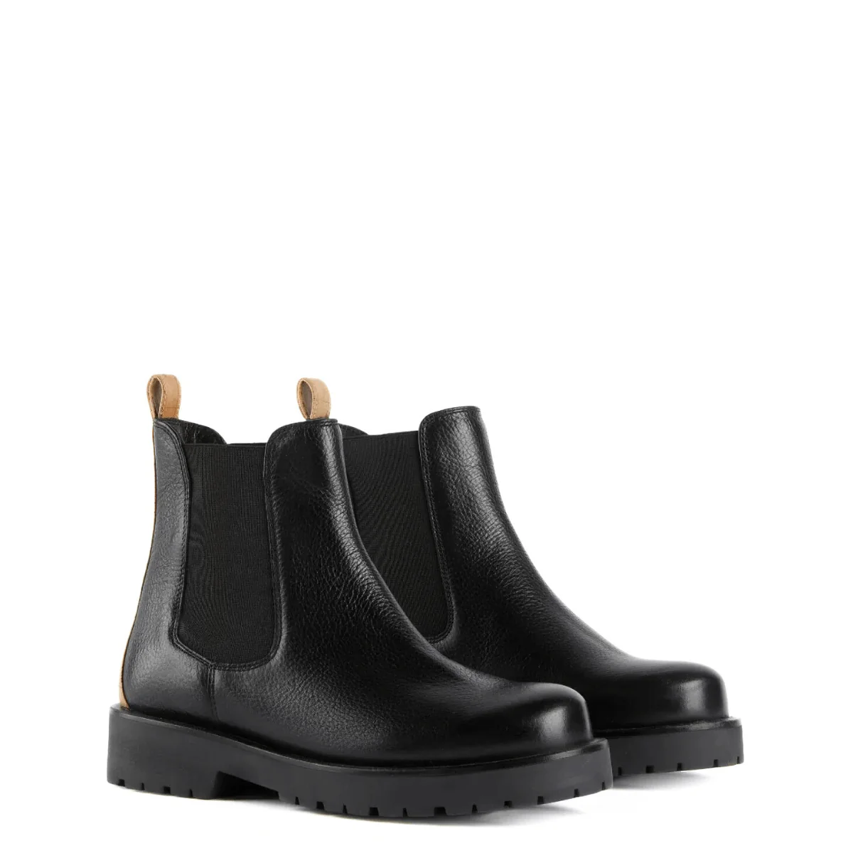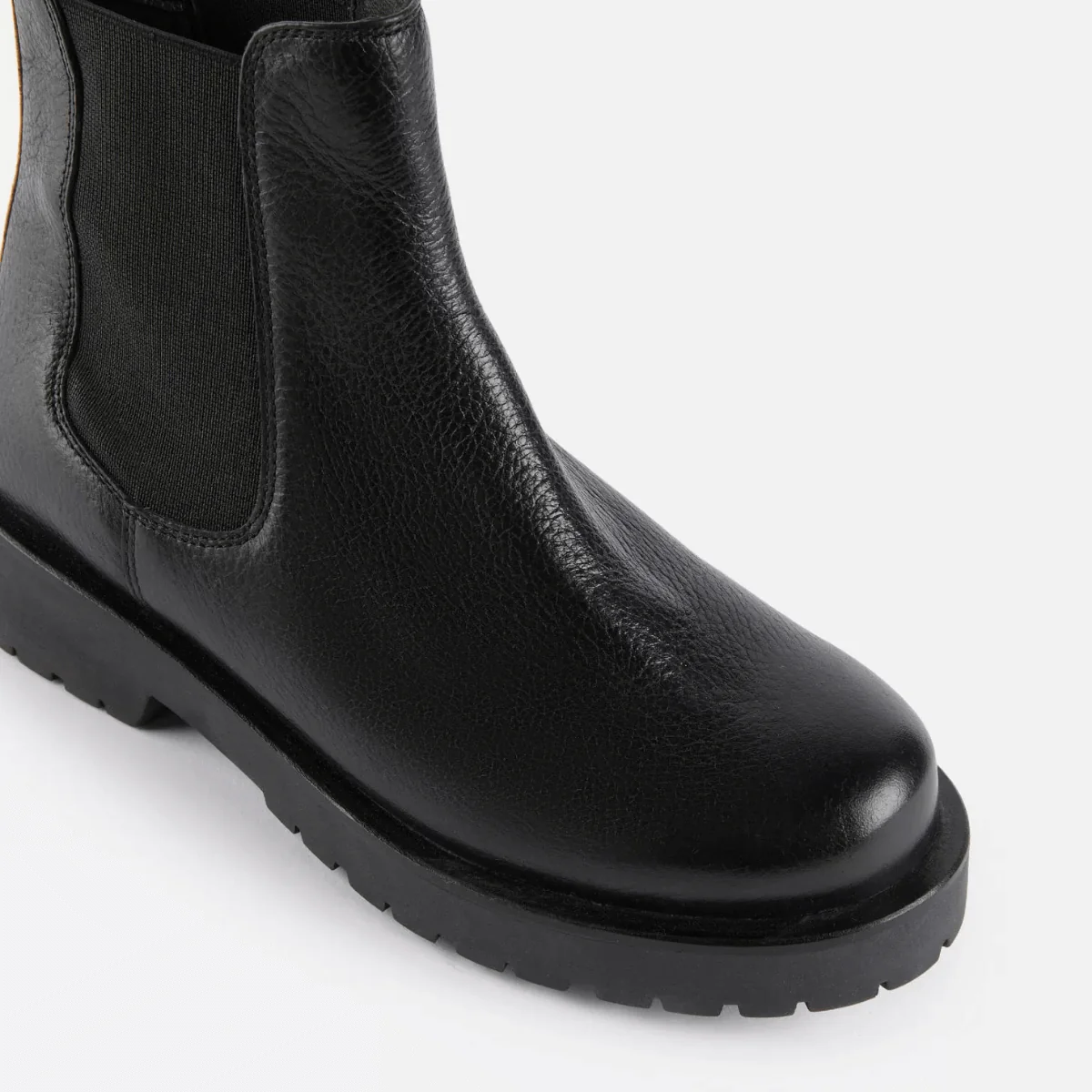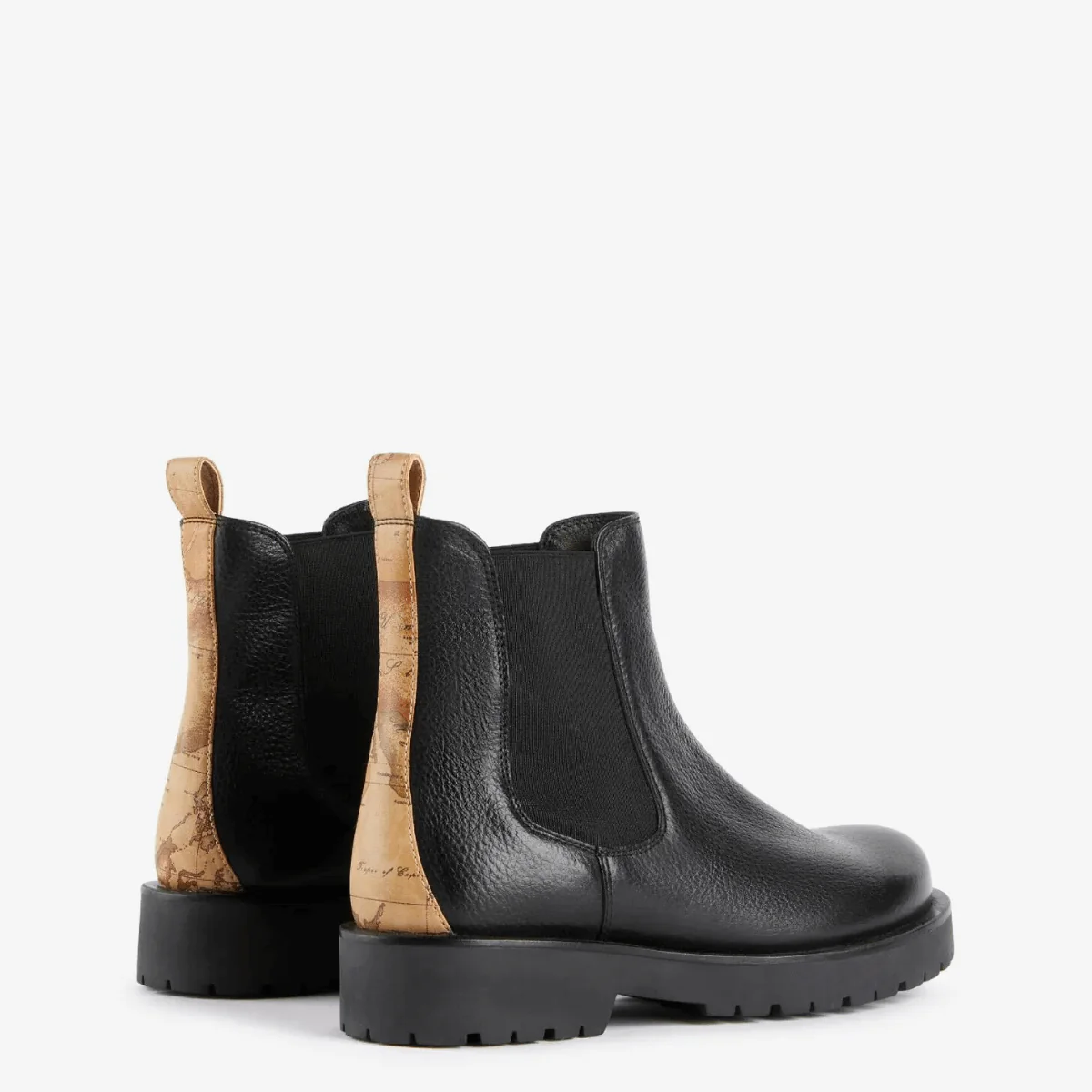 Stivaletto, modello beatles, da donna di ALVIERO MARTINI 1^ CLASSE realizzato in pelle nera con doppio elastico laterale e con inserto Geo Classic sul tallone. Interno in tessuto, sottopiede non estraibile in pelle. Suola in gomma.