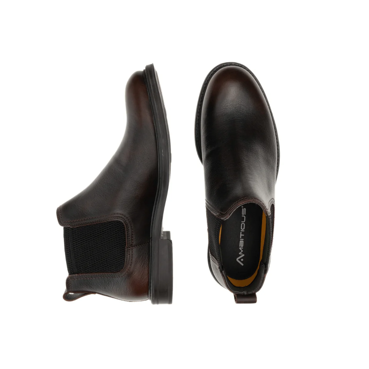 Beatles Chelsea LUKE di AMBITIOUS con uno stile classico ed elegante che eleverà sia i look casual che quelli sartoriali. Realizzata con tomaia in 100% pelle marrone e due inserti elastici. Interno e sottopiede estraibile in pelle e tessuto e suola in gomma.