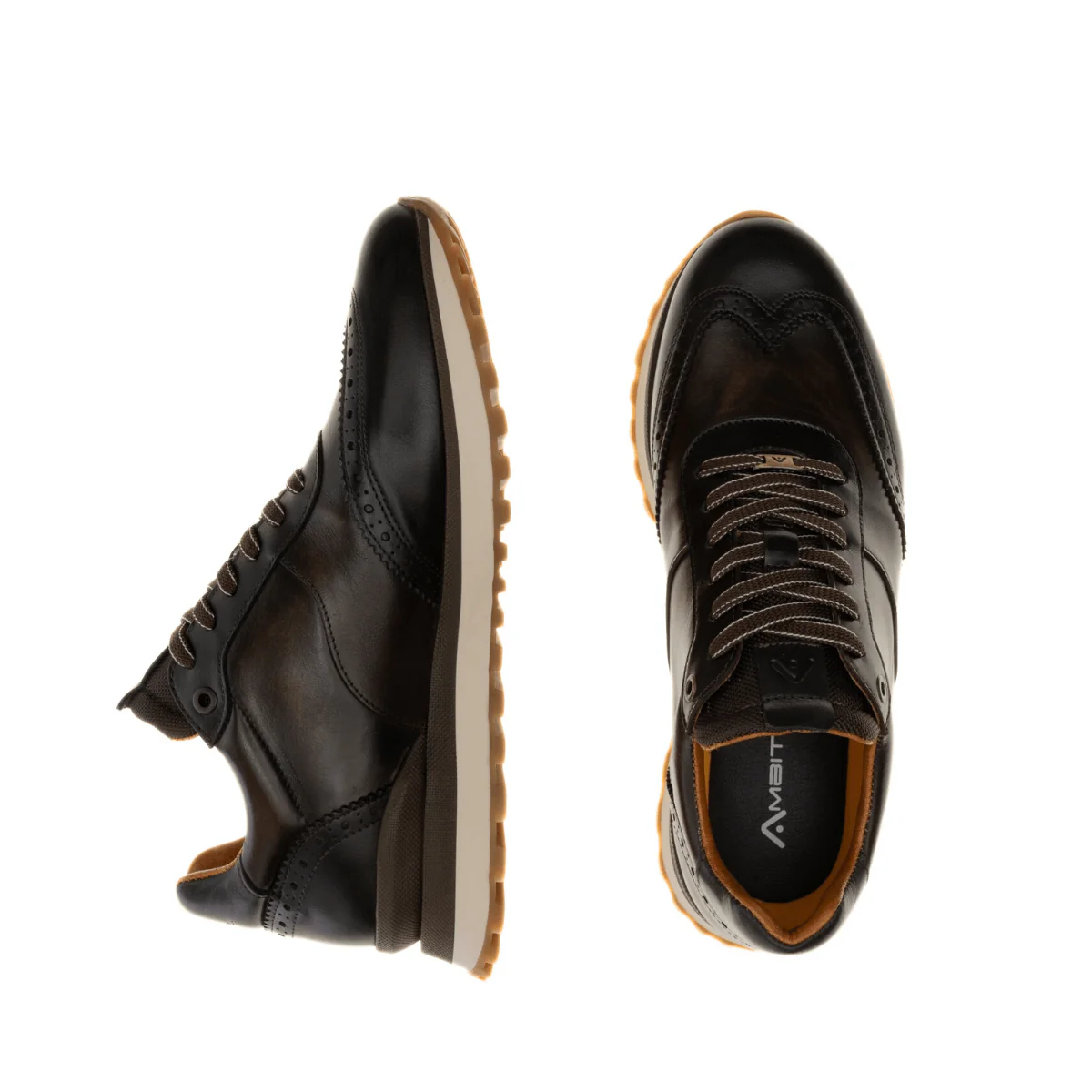 PARK Brogue Runner è una nuova sneaker ibrida casual di AMBITIOUS, che combina una silhouette da runner sportiva con dettagli classici delle calzature come la pelle effetto patina e la francesina. Questa versione presenta dettagli traforati sulla tomaia, suola tricolore e pannello posteriore a contrasto. Morbido sottopiede estraibile.