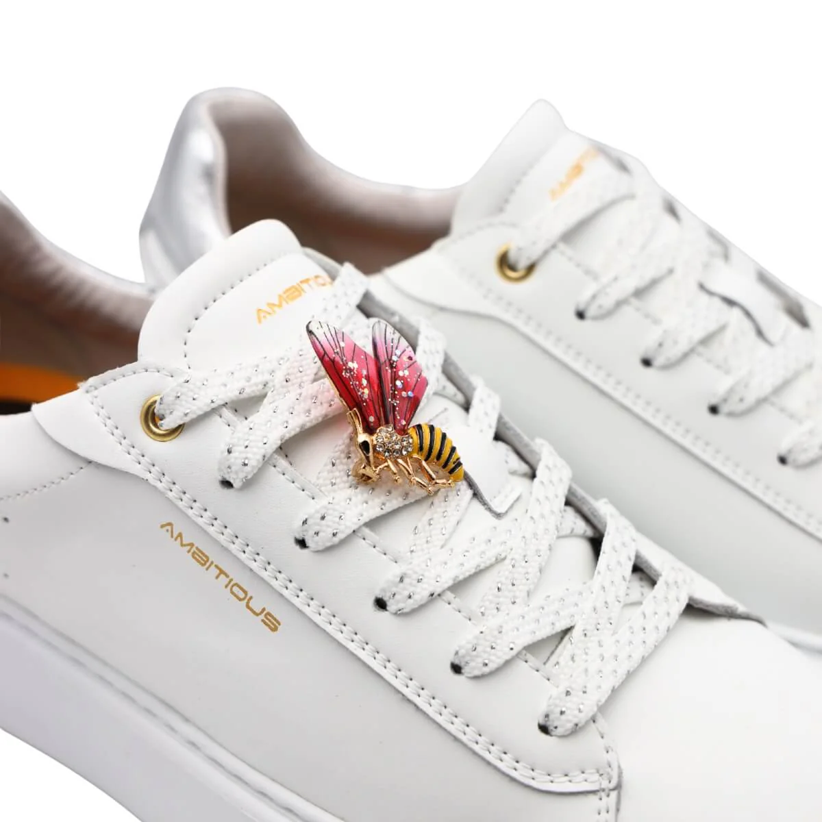 Un dettaglio distintivo è l’accessorio a spilla applicato sui lacci, removibile, che permette di personalizzare il look con semplicità. Puoi scegliere se mantenere un’estetica più essenziale oppure aggiungere un tocco decorativo originale.