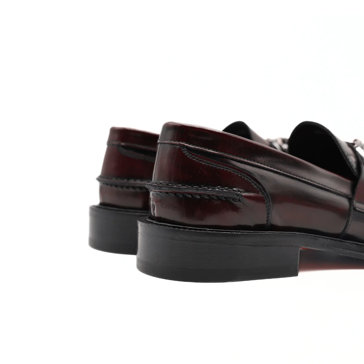 Mocassino da uomo di ANDREA FERRI realizzato in pelle spazzolata bordeaux con accessorio argento. Interno e sottopiede, non estraibile, in pelle. Suola in cuoio (3cm). MADE IN ITALY