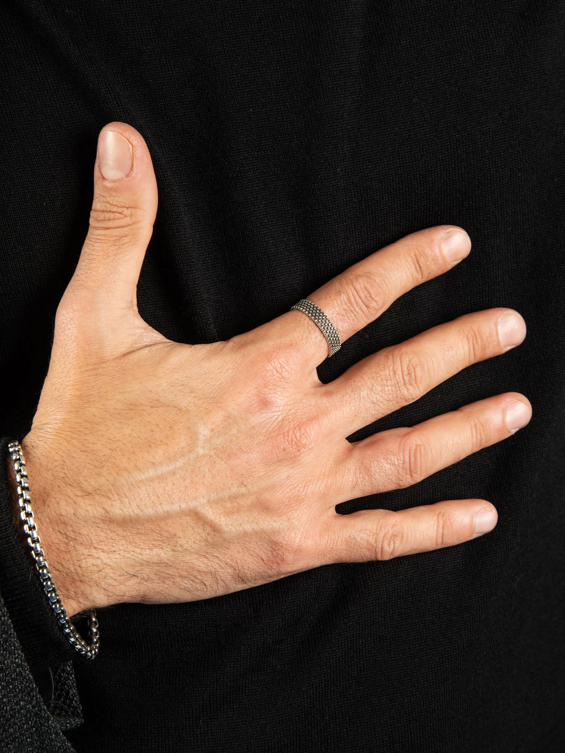 Mod: AN313 FASCIA PALLINI Anello artigianale unisex in argento 925% Lavorazione a pallini. Ossidazione nera anticata e color avorio. 100% lavorazione artigianale italiana. Acquistare questo gioiello vuol dire possedere una creazione unica e raffinata prodotta e rifinita manualmente nei minimi dettagli.