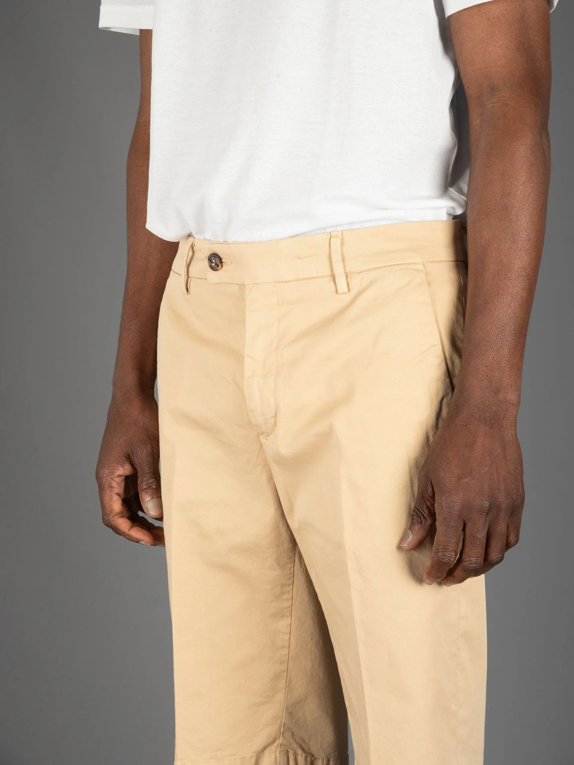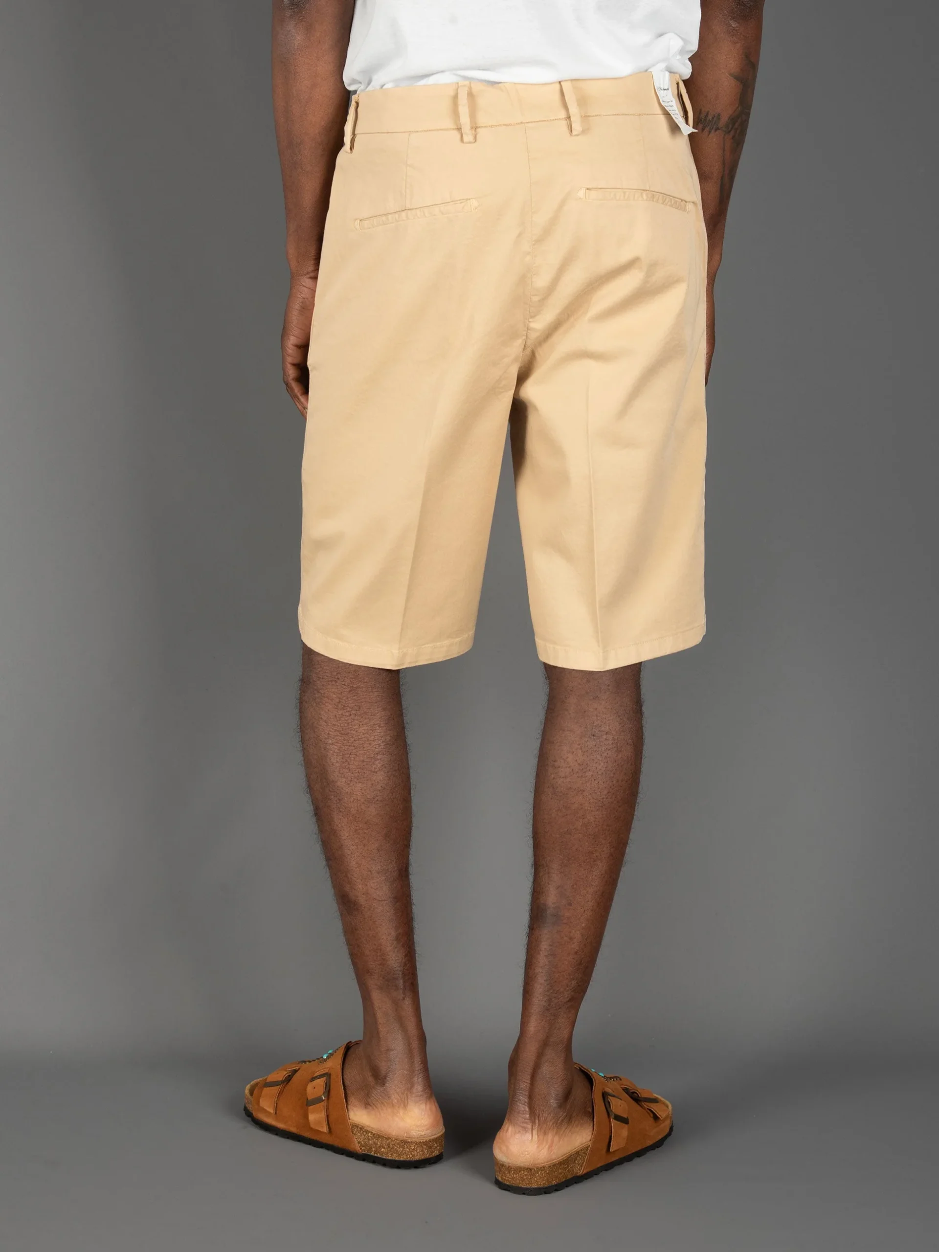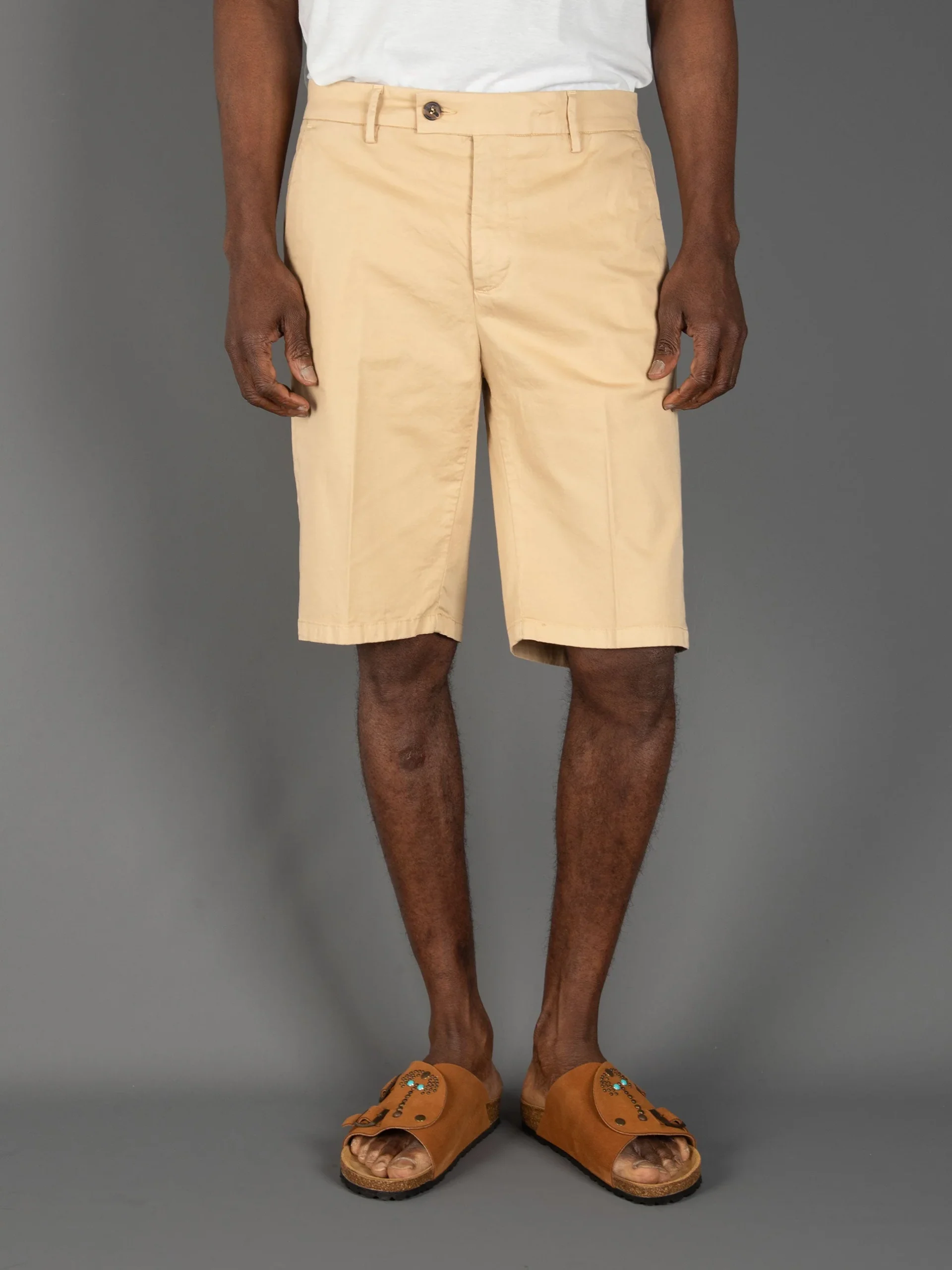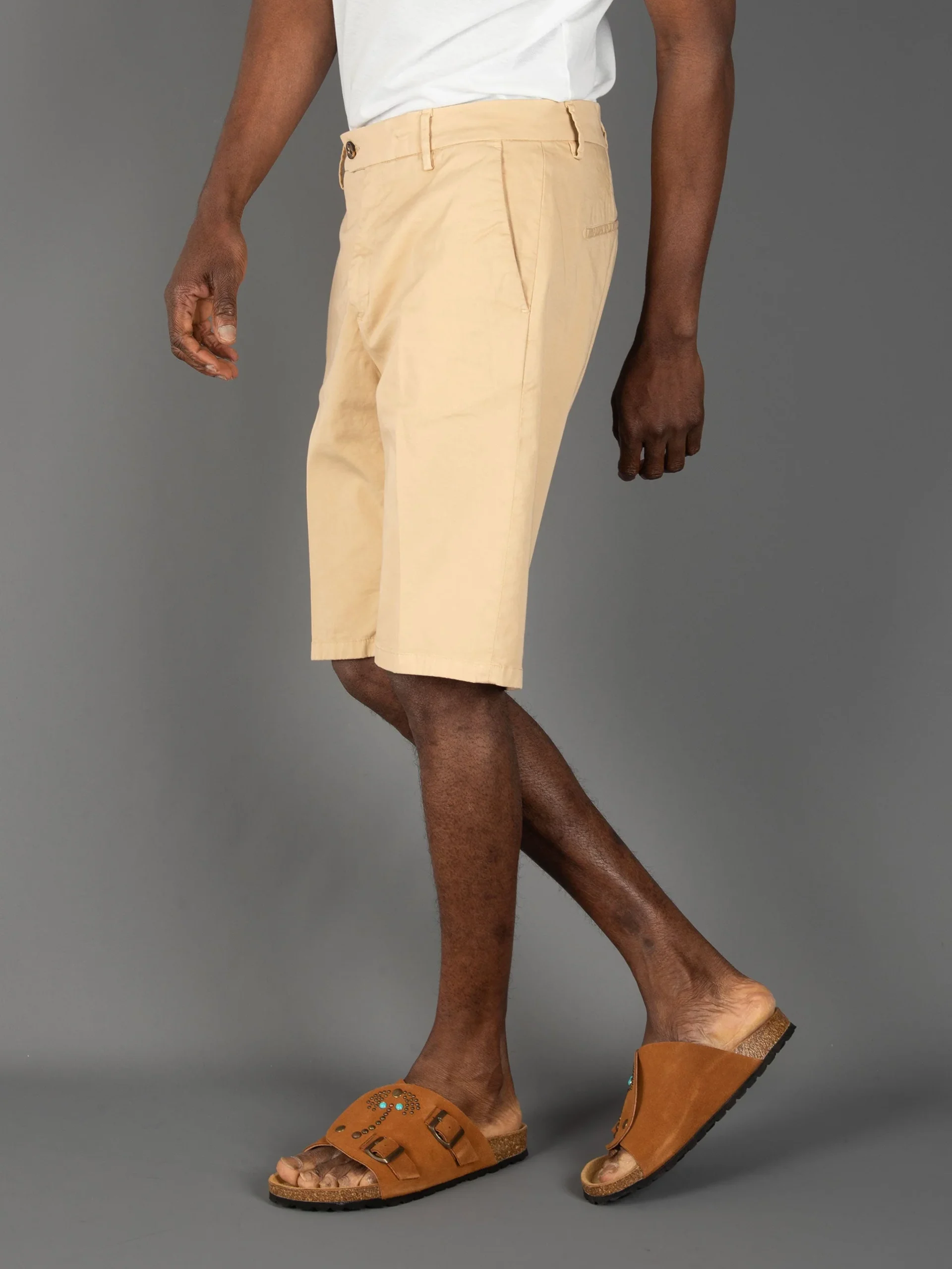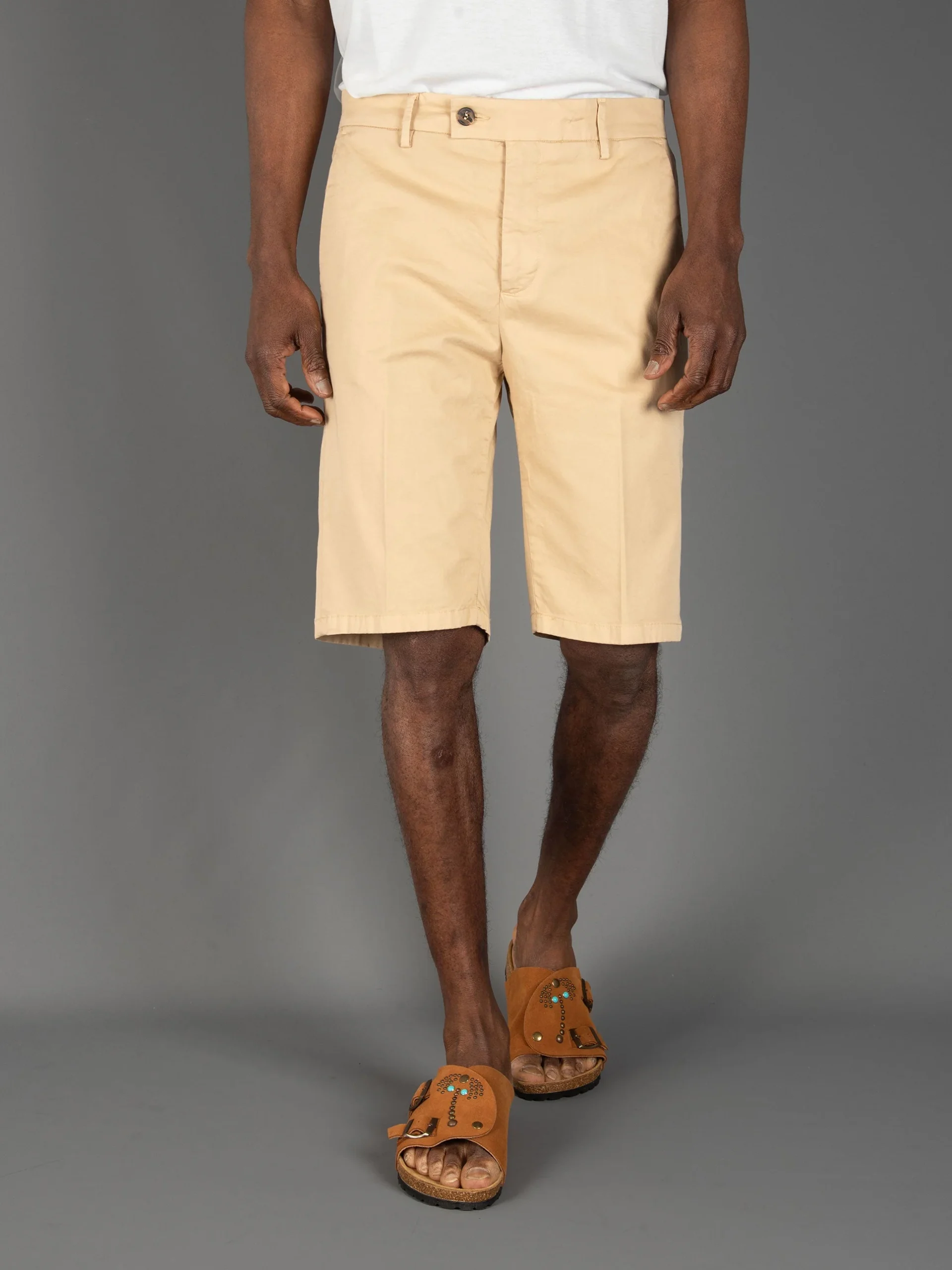Mod: BRIAN SH 101 SABBIA 03 Bermuda in cotone stretch. Allacciatura con cinturino, bottoni e zip. Tasche america e a filo sul retro. Vestibilità regolare. Composizione: 98% cotone e 2% elastan. 100% made in Italy. Il modello è alto 183cm e pesa 73 kg: indossa una taglia 46.