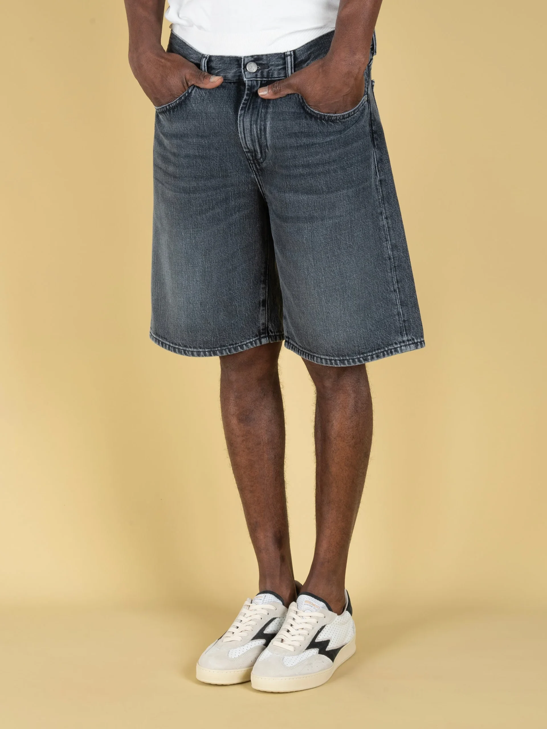 - Bermuda cinque tasche effetto used con lavaggio black.