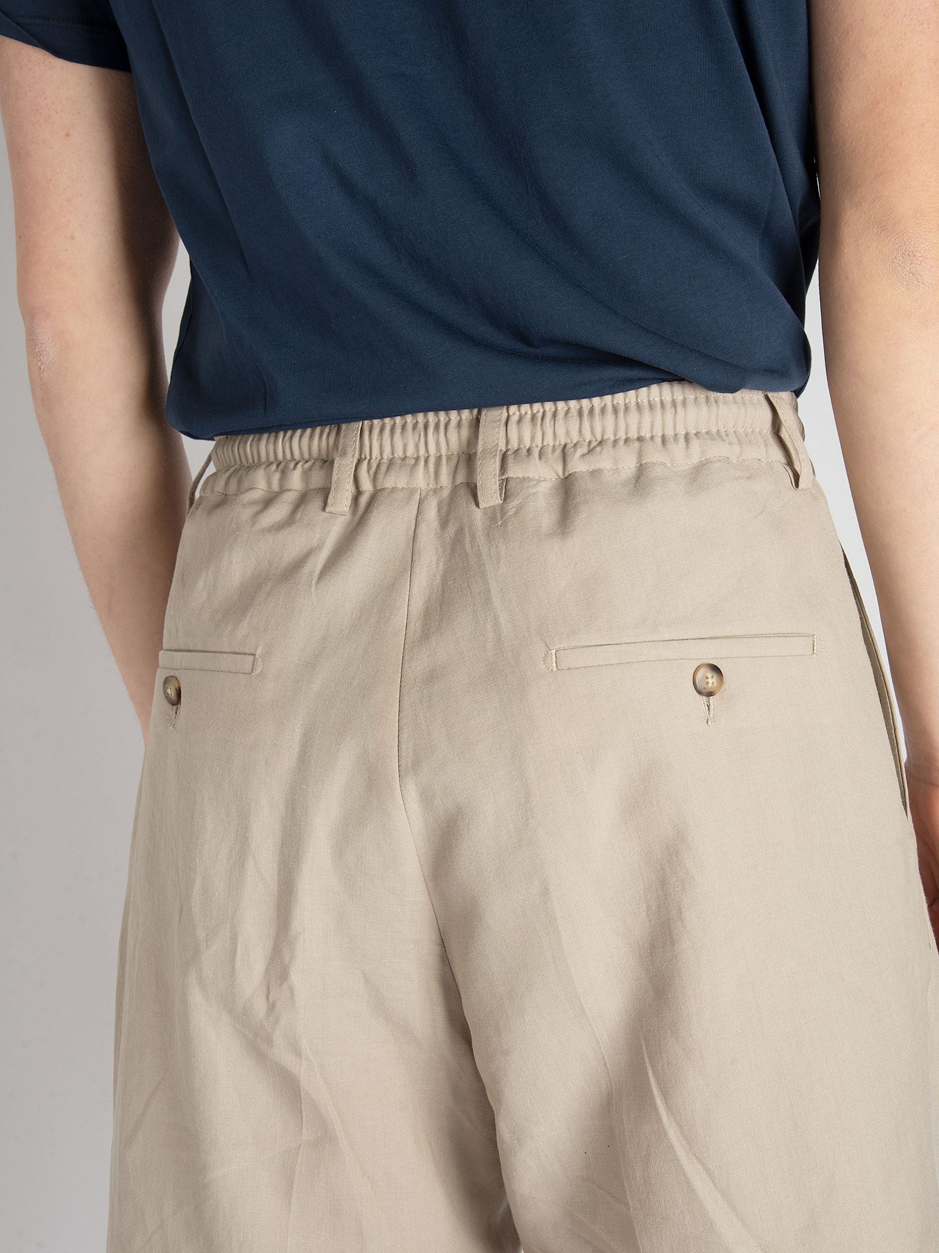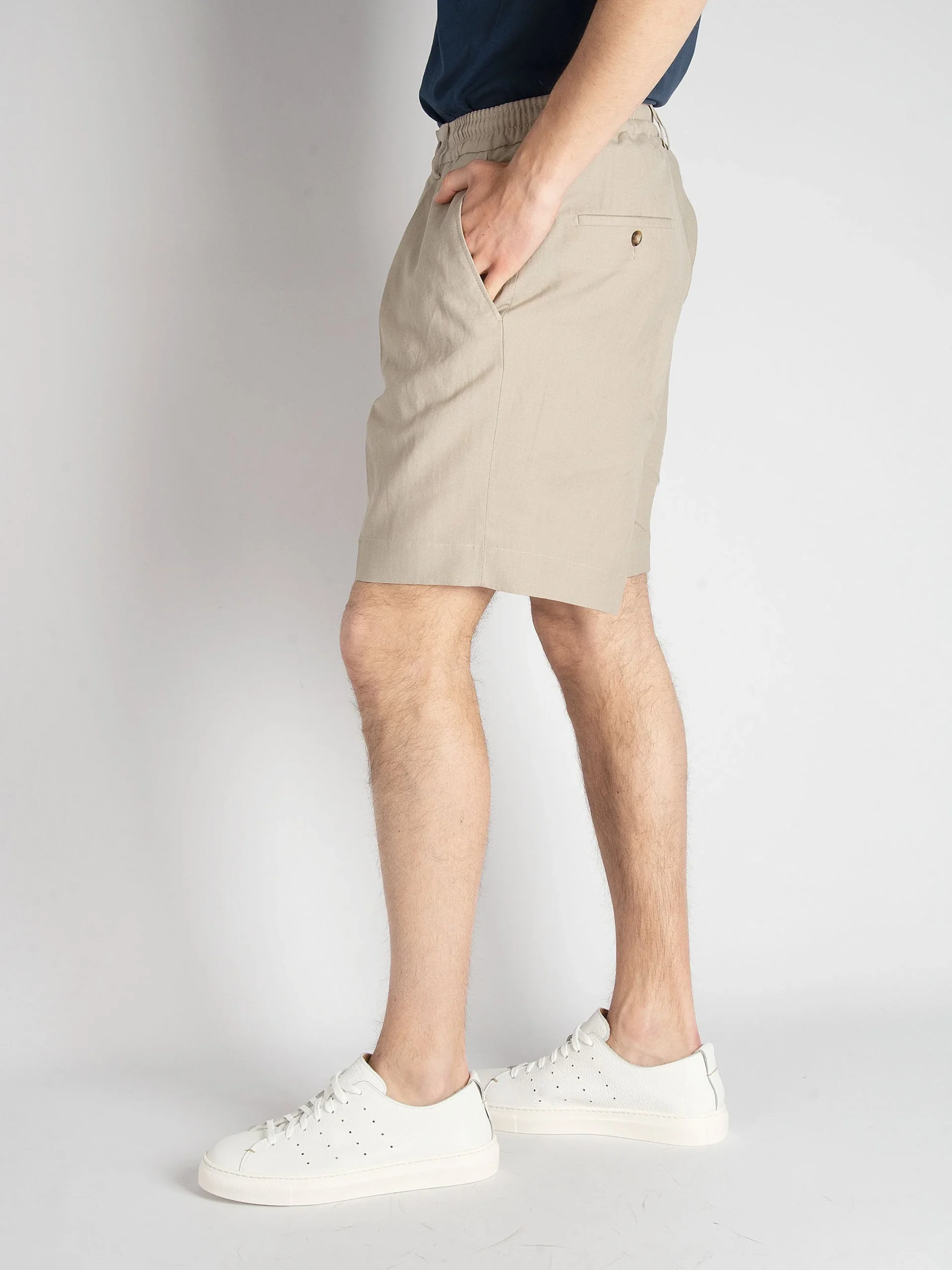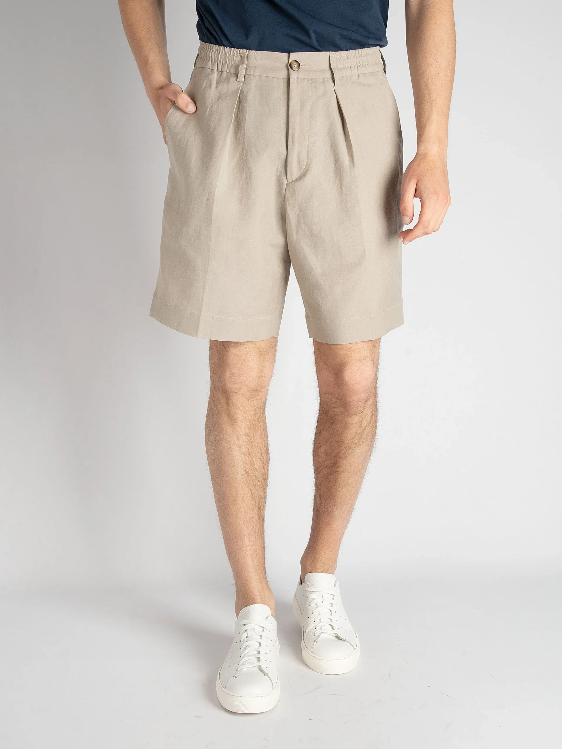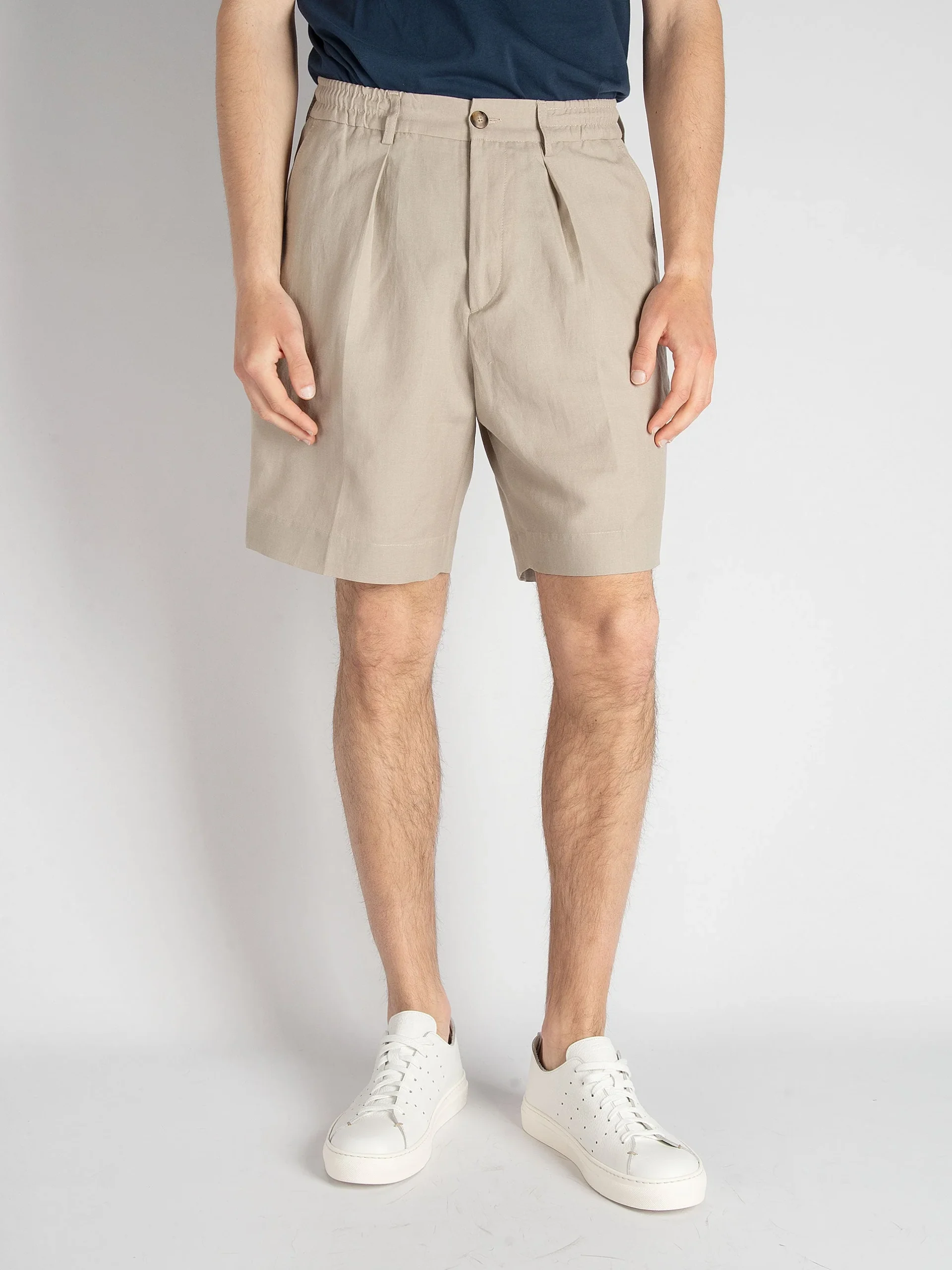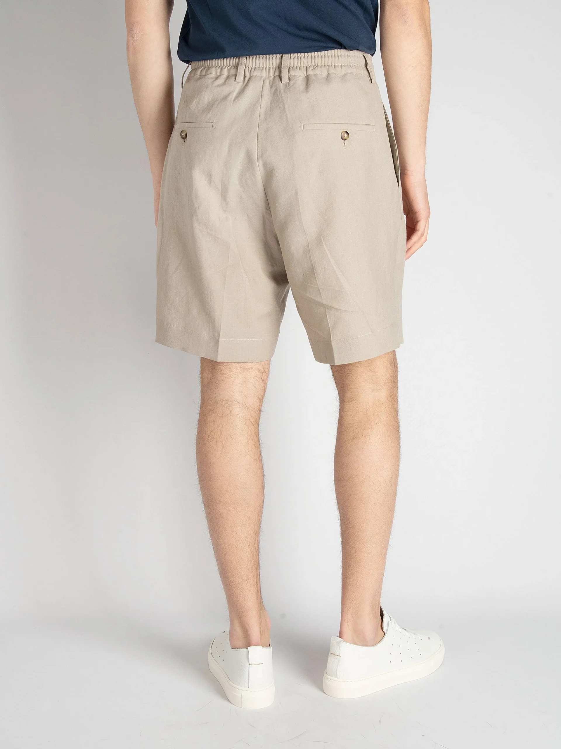 - Bermuda sartoriale con una pence in lino e cotone.