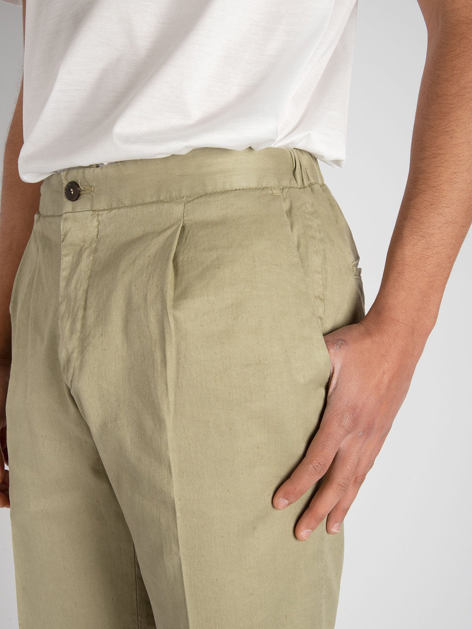 - Composizione: 49% cotone, 49% lino, 2% elastan.