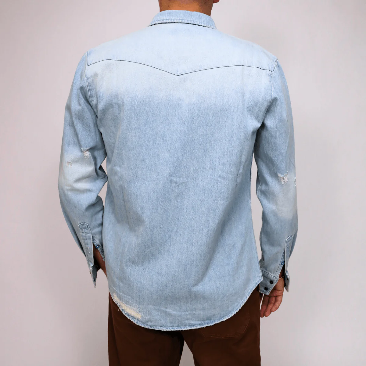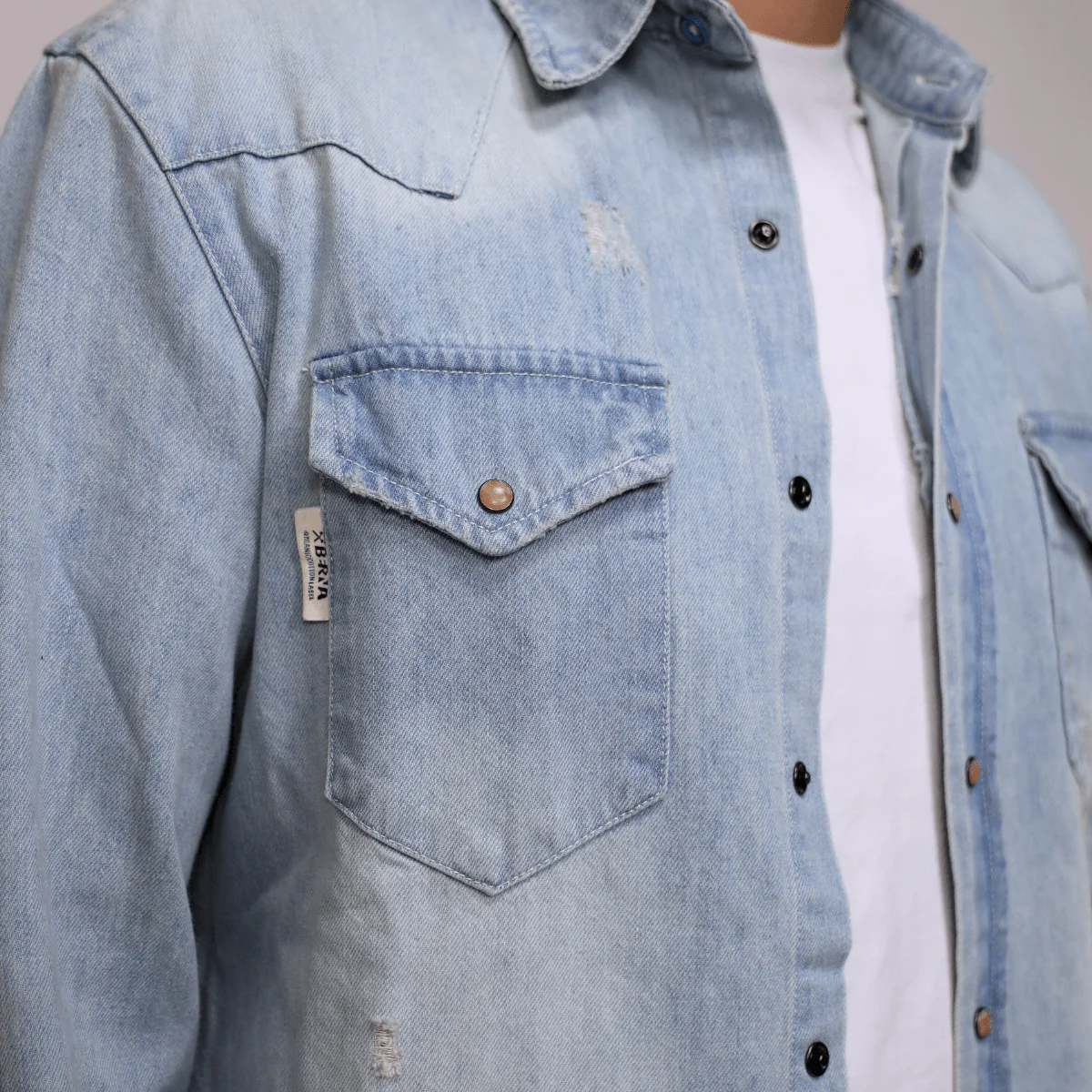 Camicia da uomo di BERNA realizzata in cotone color jeans con colletto e chiusura con bottoni. Tasche esterne.