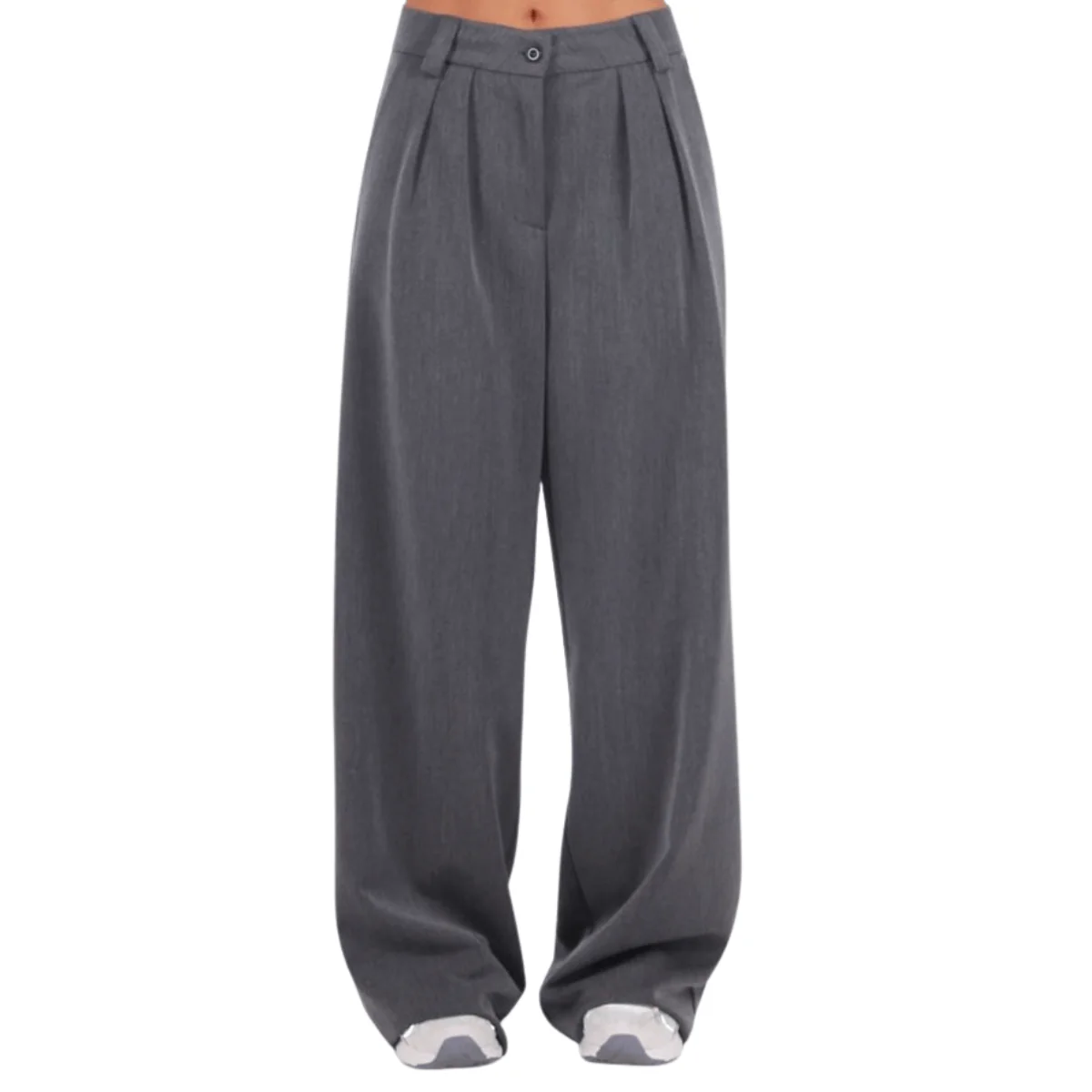 Pantalone a palazzo di BERNA. Realizzato in tessuto grigio, con tasche accessorie e passanti per la cintura.