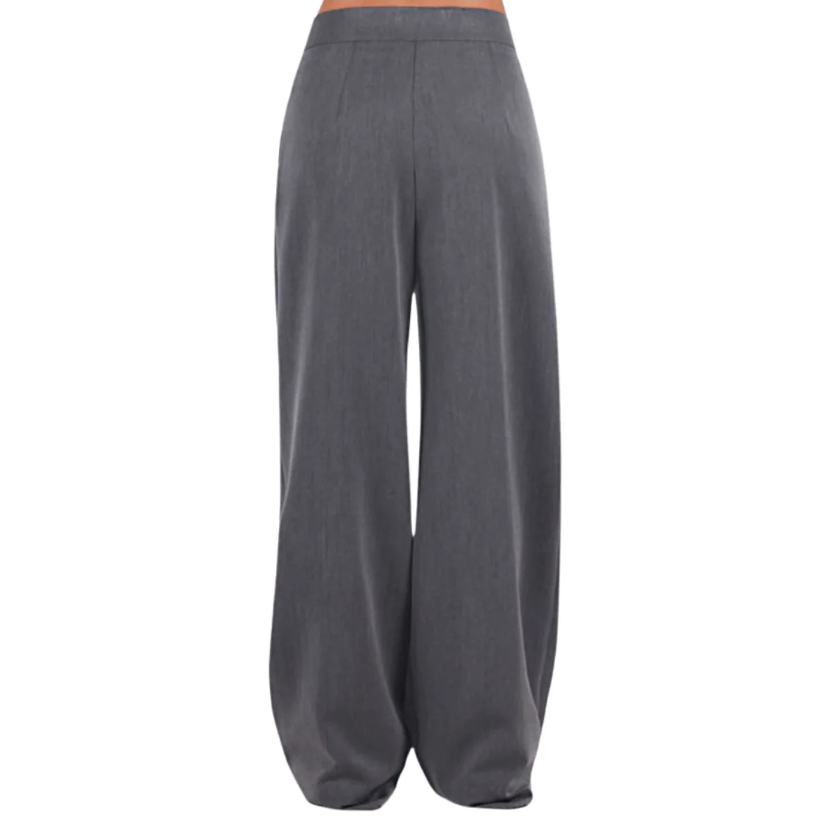 Pantalone a palazzo di BERNA. Realizzato in tessuto grigio, con tasche accessorie e passanti per la cintura. Composizione: 78% Poliestere, 18% Viscosa, 4% Elastane. Made in Italy