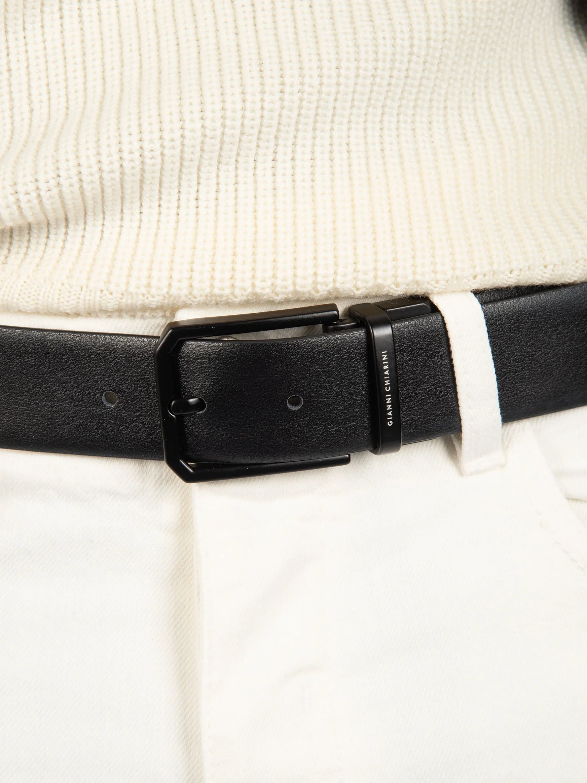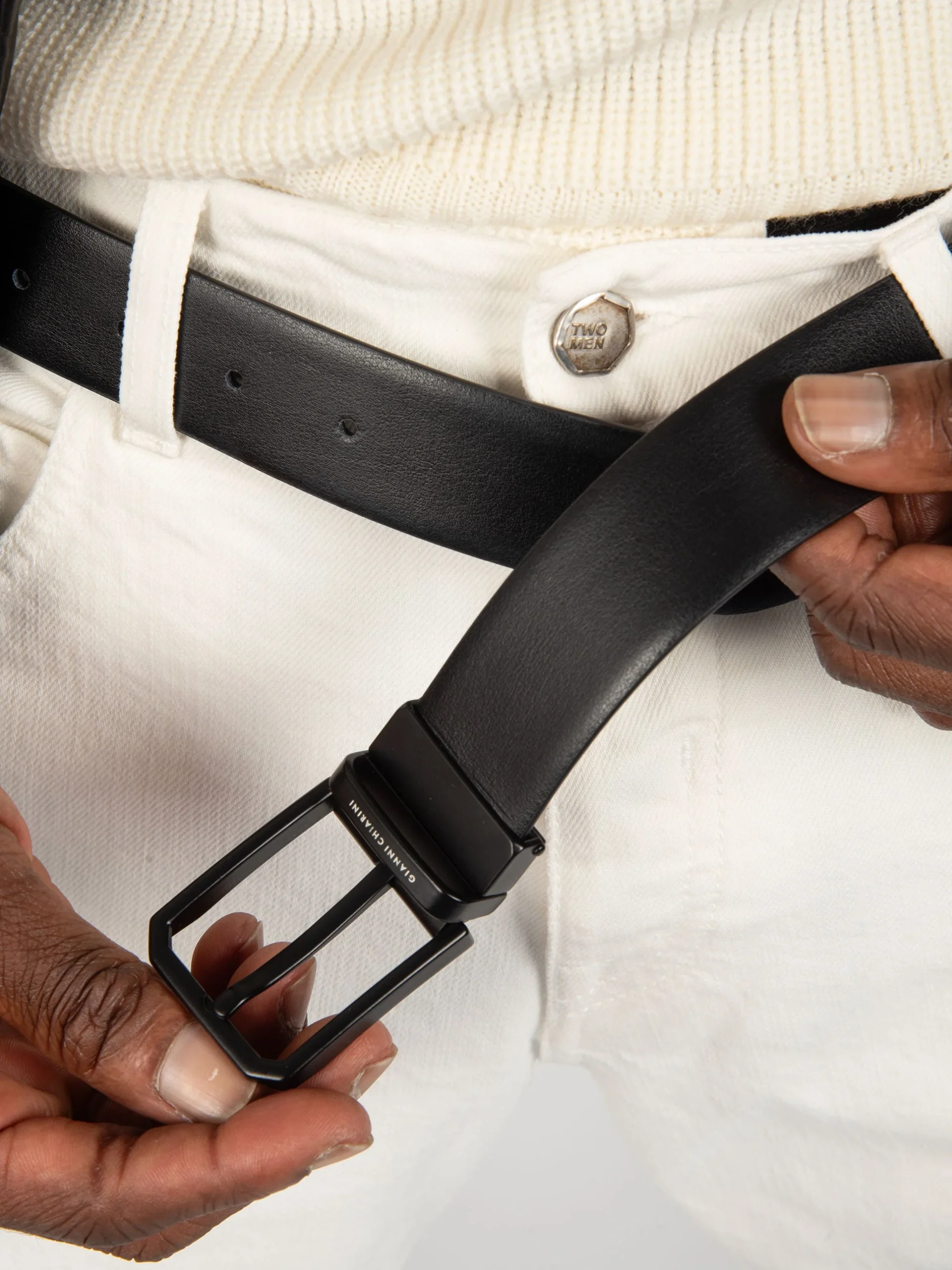 Mod: CN99033/06VTT SAF NERO Cintura reversibile in pelle nera. Un lato pelle liscia e l’altro con lavorazione saffiano. Fibbia in metallo nero logata. Possibilità di accorciarla in base alla propria taglia. 100% Made in Italy. Altezza cintura: 3,5 cm.