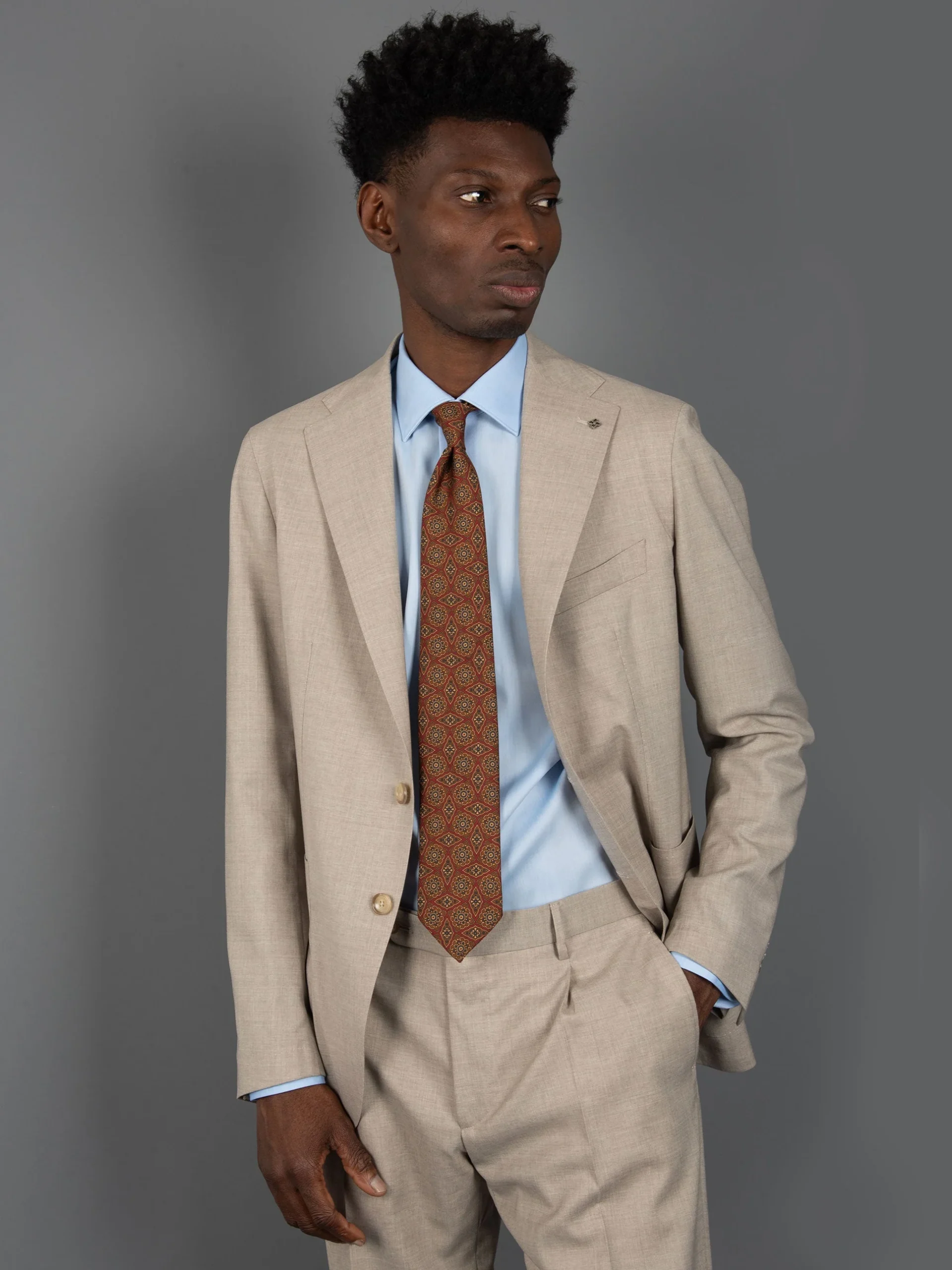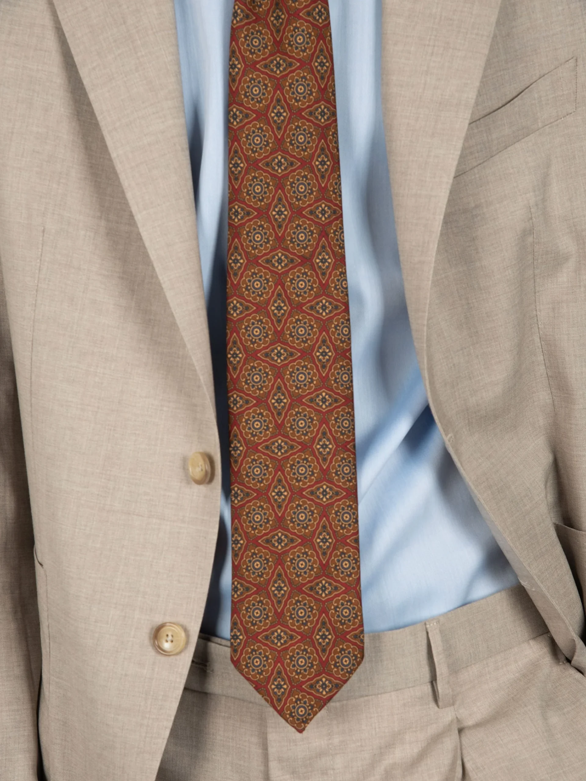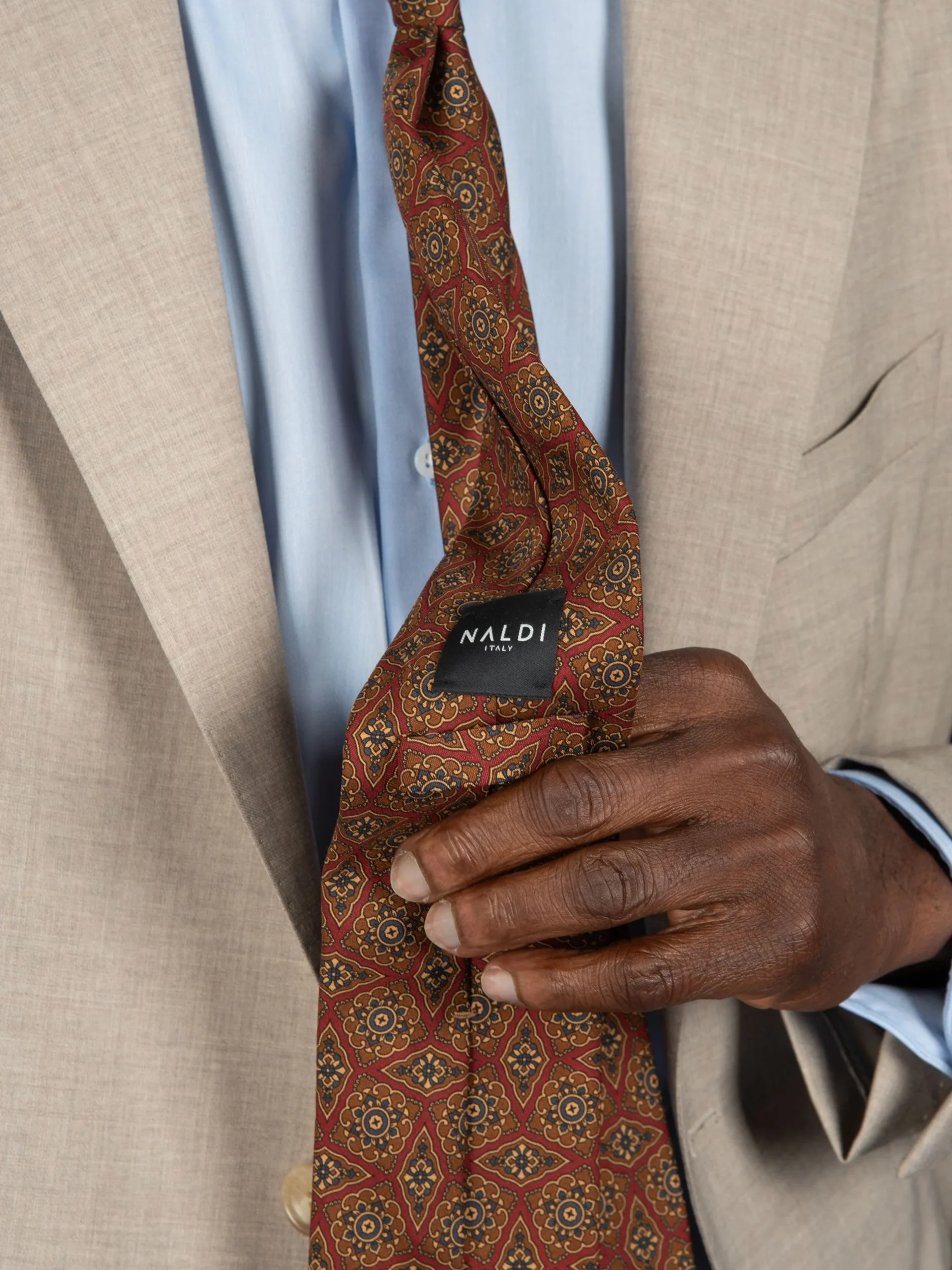 Mod: Naldi vintage 8 cm fantasia rosso tabacco Cravatta artigianale in seta vintage ultra light. Sfoderata e rifinita a mano, larghezza 8 cm. Tessuto 100% seta. Caratteristiche artigianato Napoletano. Made in Italy.