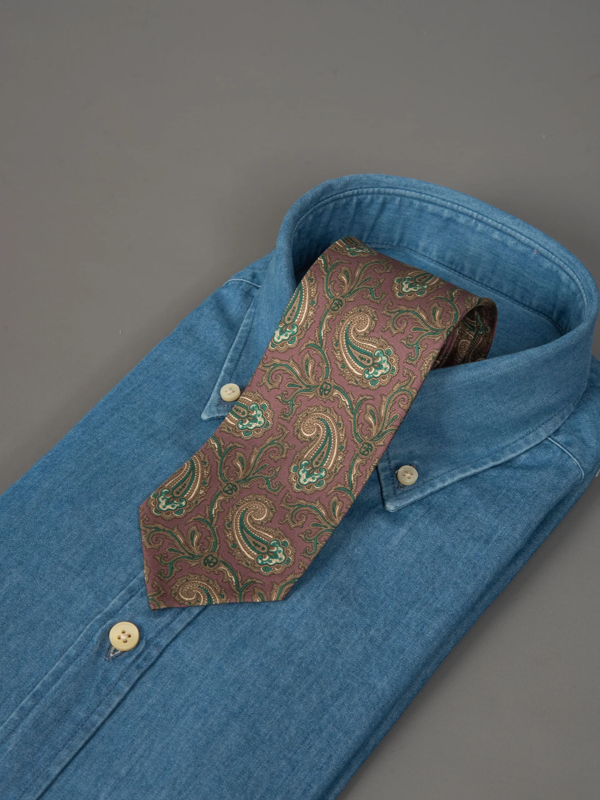 Mod: Naldi vintage 8 cm paisley medio rosa antico Cravatta artigianale in seta vintage ultra light. Sfoderata e rifinita a mano, larghezza 8 cm. Tessuto 100% seta. Caratteristiche artigianato Napoletano. Made in Italy.