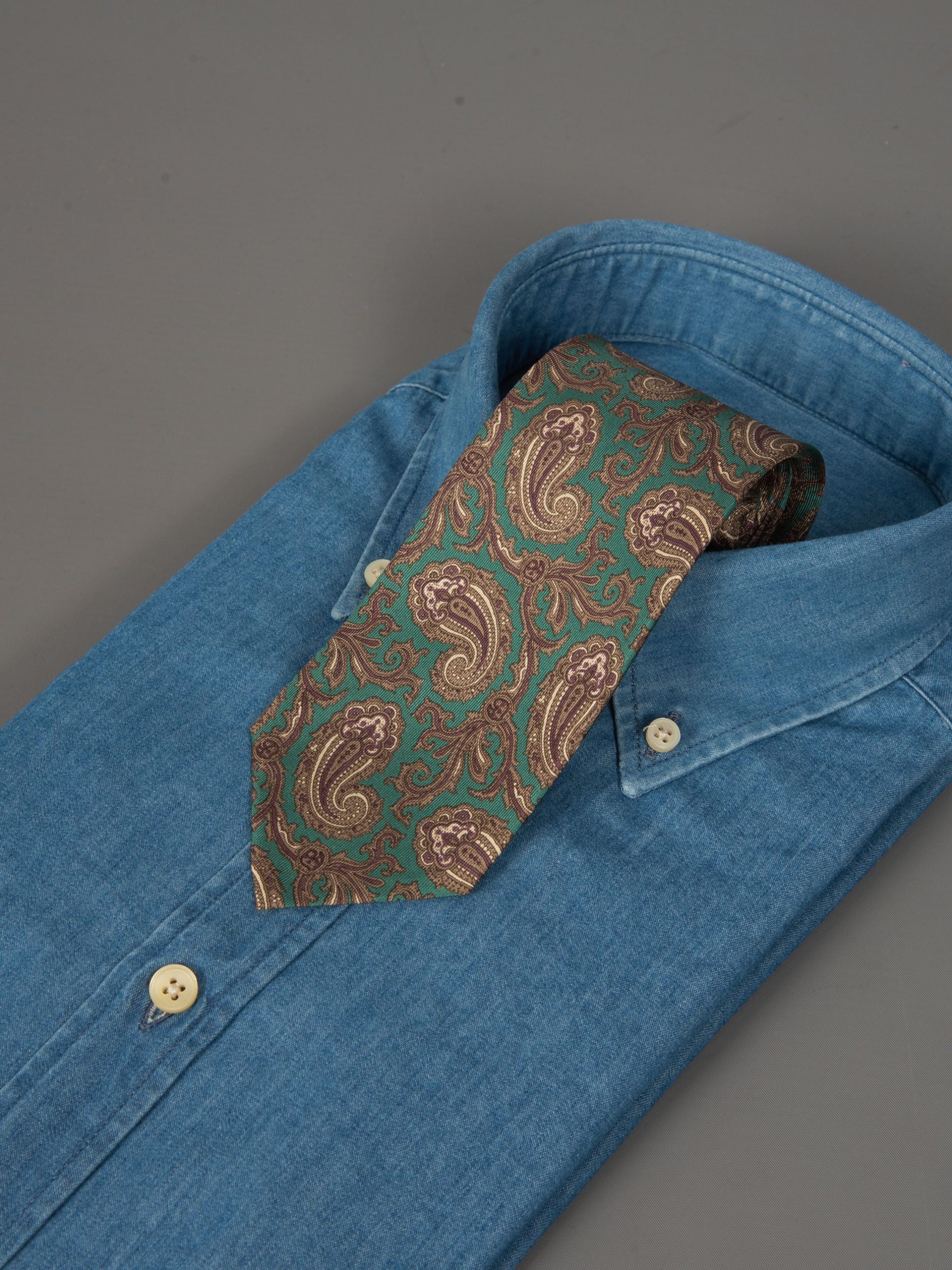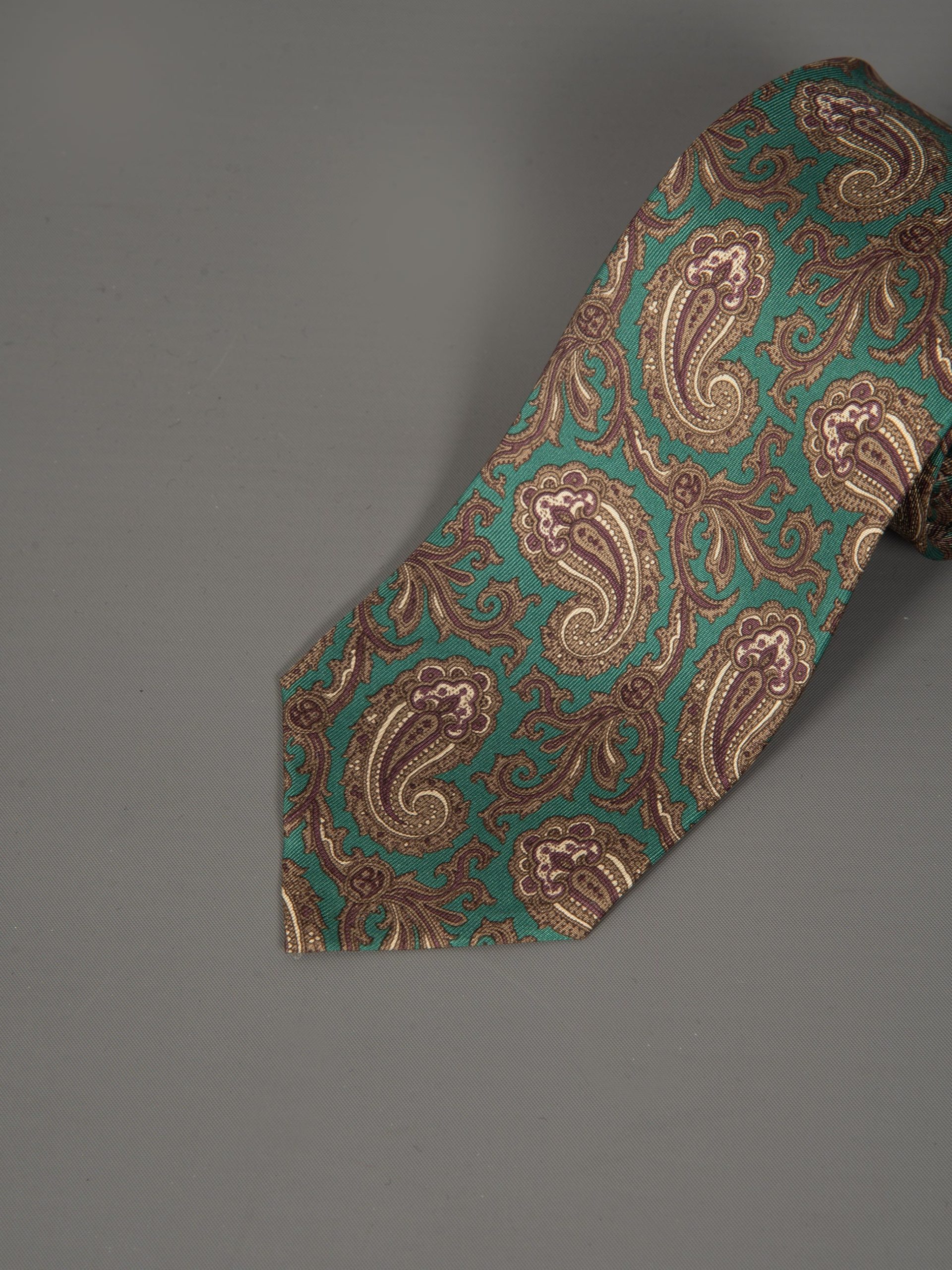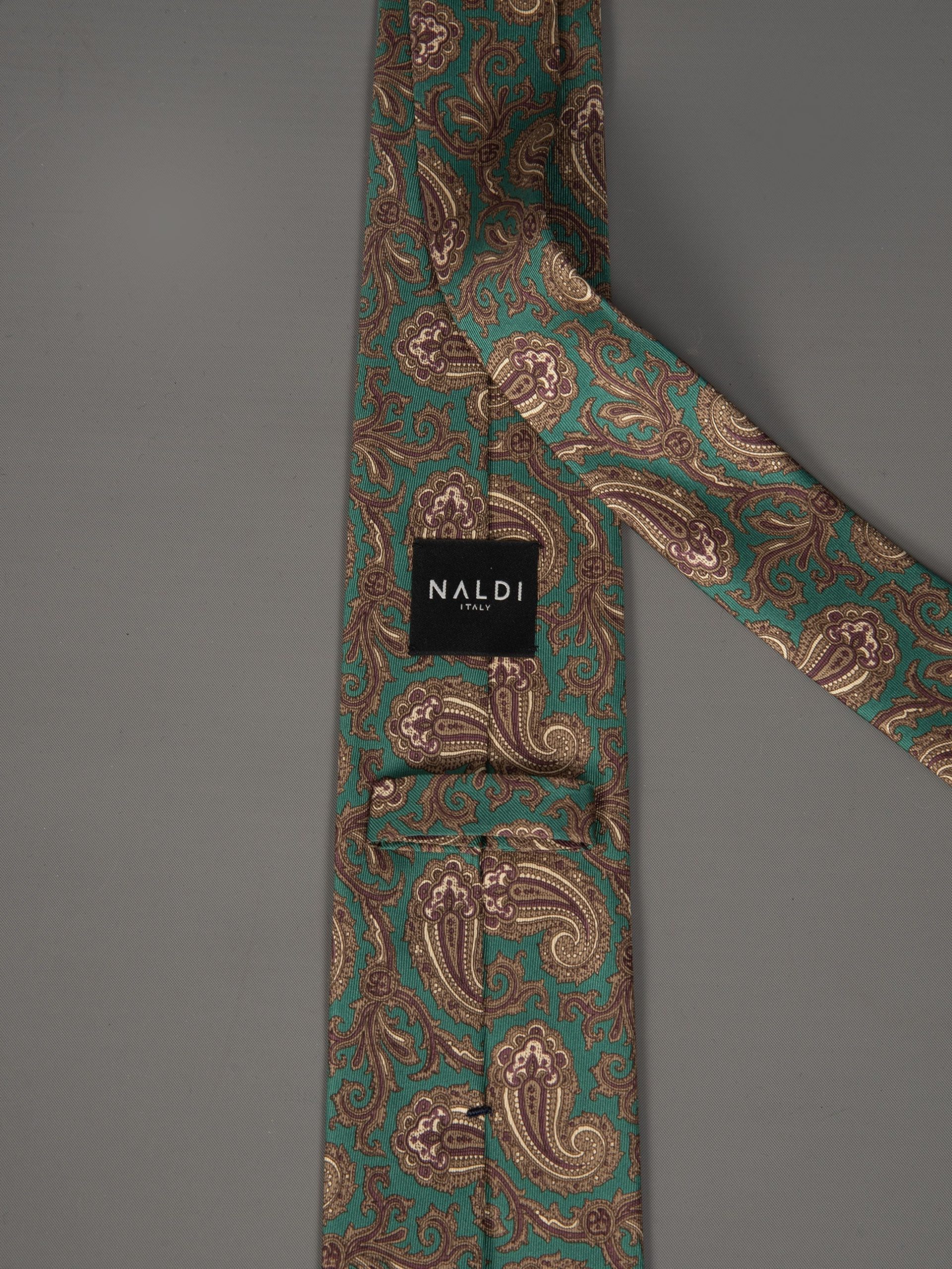 Mod: Naldi vintage 8 cm paisley medio verde Cravatta artigianale in seta vintage ultra light. Sfoderata e rifinita a mano, larghezza 8 cm. Tessuto 100% seta. Caratteristiche artigianato Napoletano. Made in Italy.