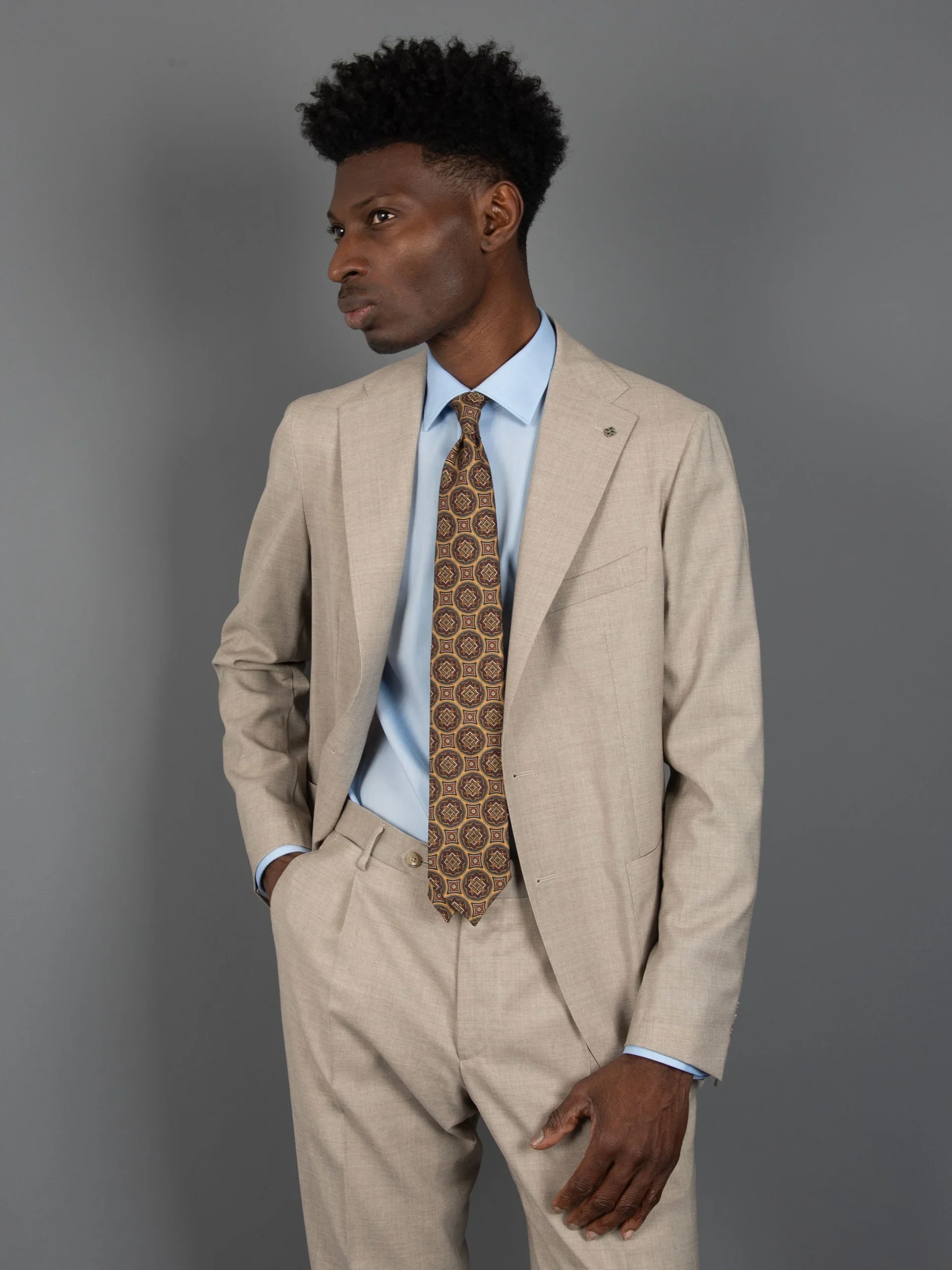 Mod: Naldi vintage 8 cm rombi ocra Cravatta artigianale in seta vintage ultra light. Sfoderata e rifinita a mano, larghezza 8 cm. Tessuto 100% seta. Caratteristiche artigianato Napoletano. Made in Italy.