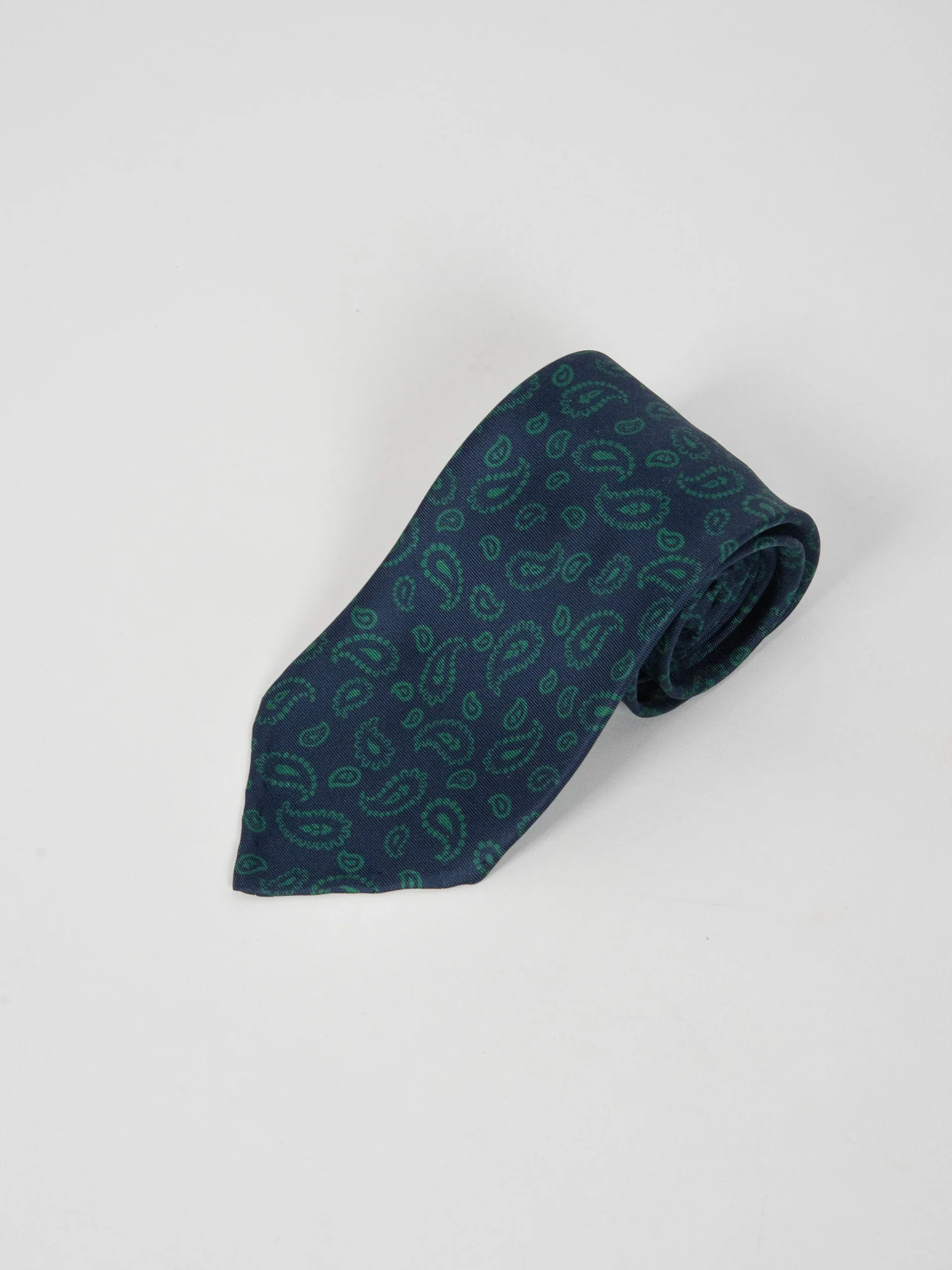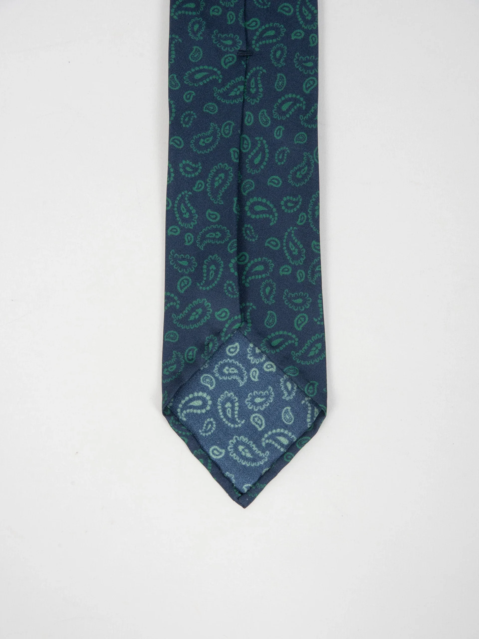 Mod: Naldi foderata 8 cm blu motivo cachemire verde Cravatta 8 cm artigianale foderata. Tessuto 100% seta. Base blu e motivo cachemire verde. Caratteristiche artigianato Napoletano.