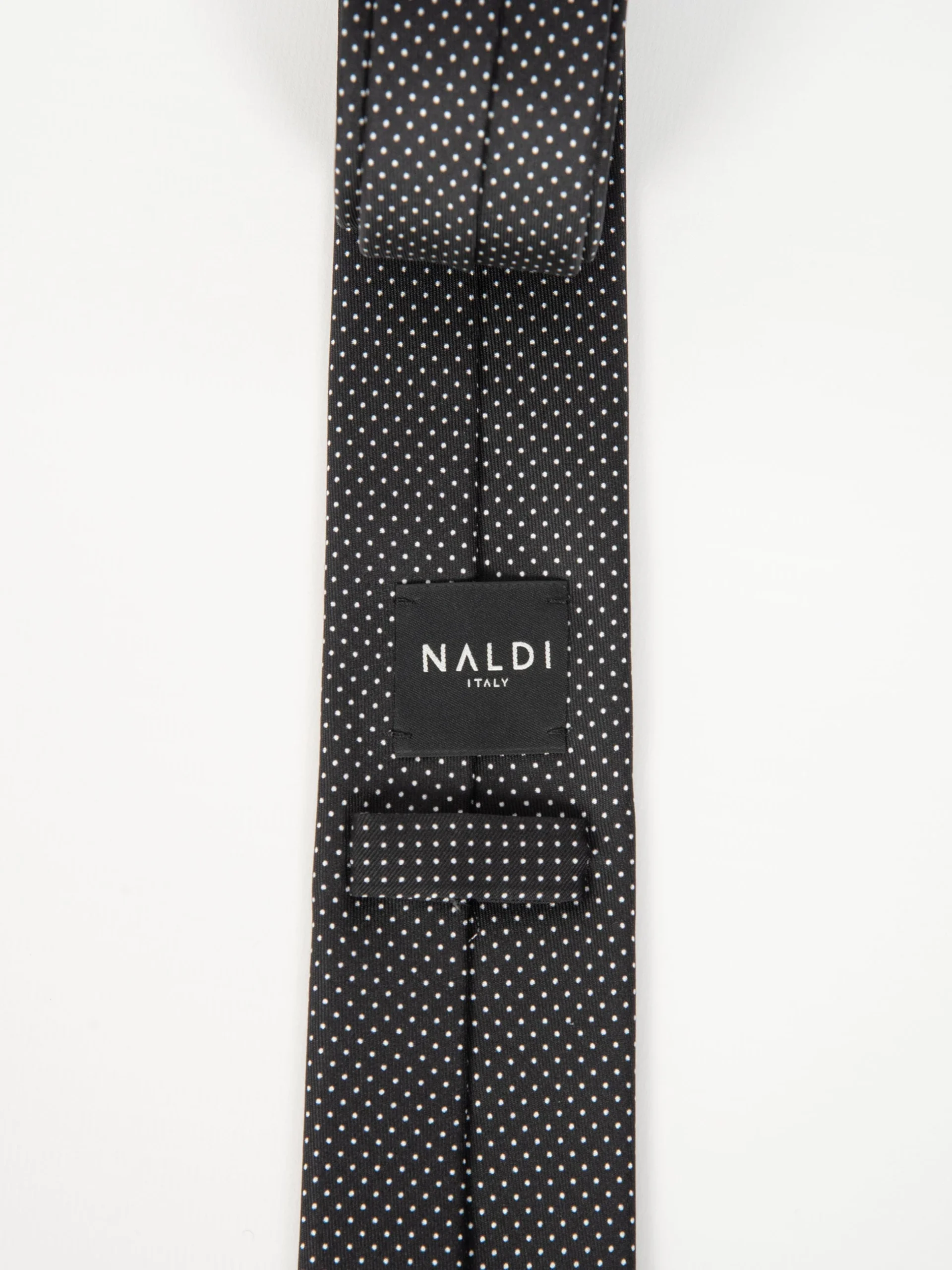 Mod: Naldi Micro Pois 21 Cravatta 6 cm artigianale foderata con orlo a mano. Tessuto 100% seta. Cravatta realizzata secondo le caratteristiche dell’artigianato Napoletano