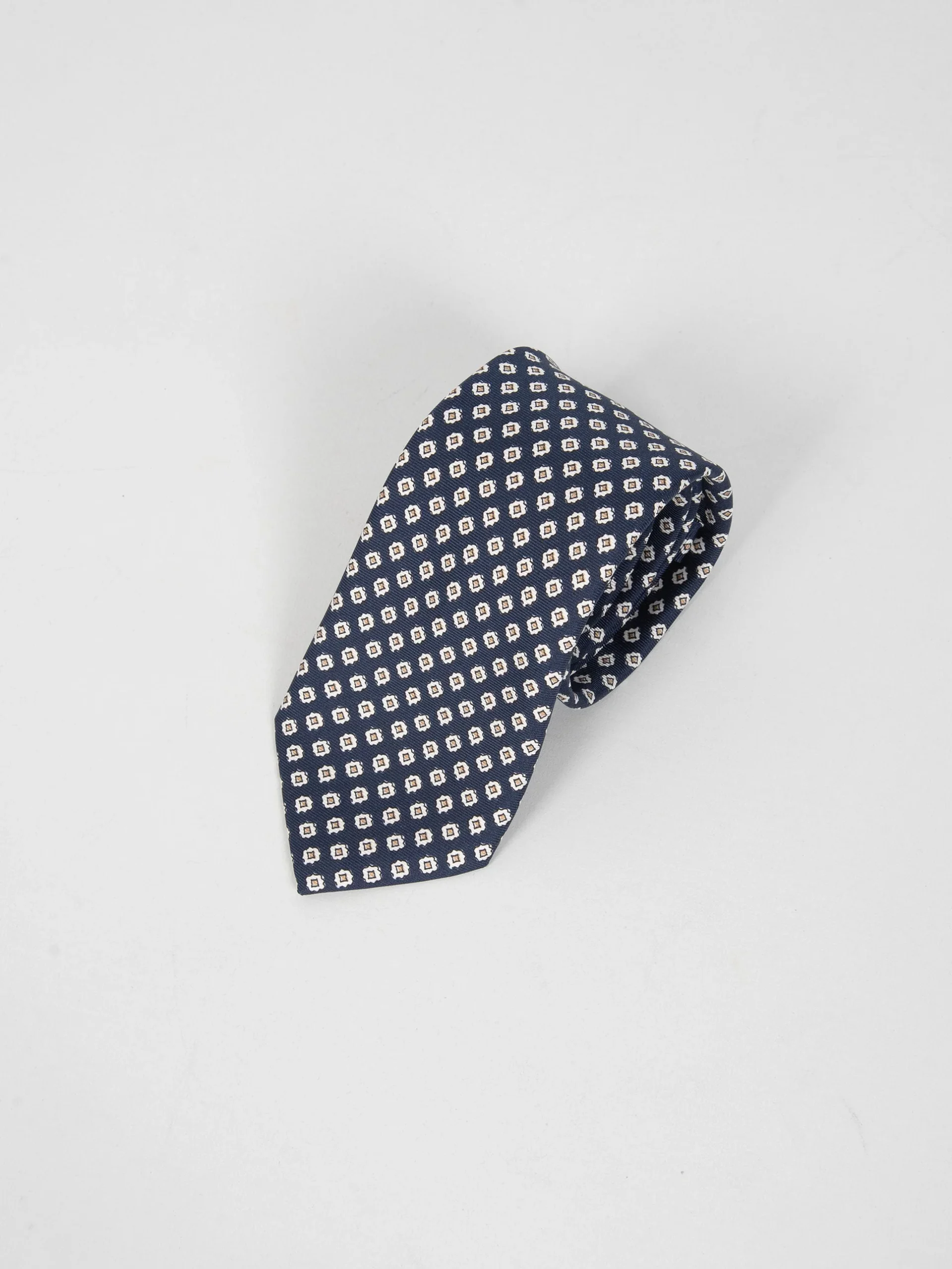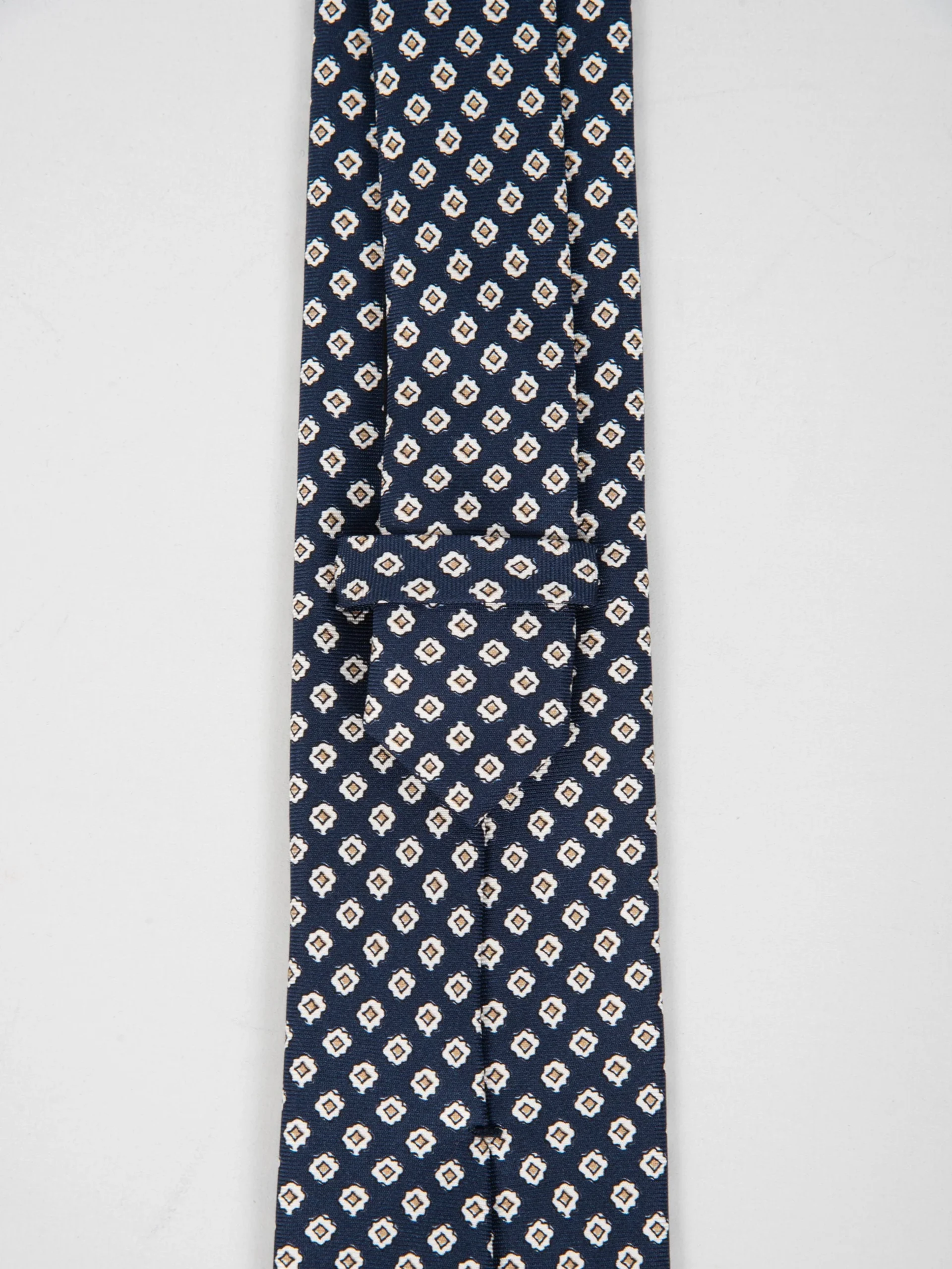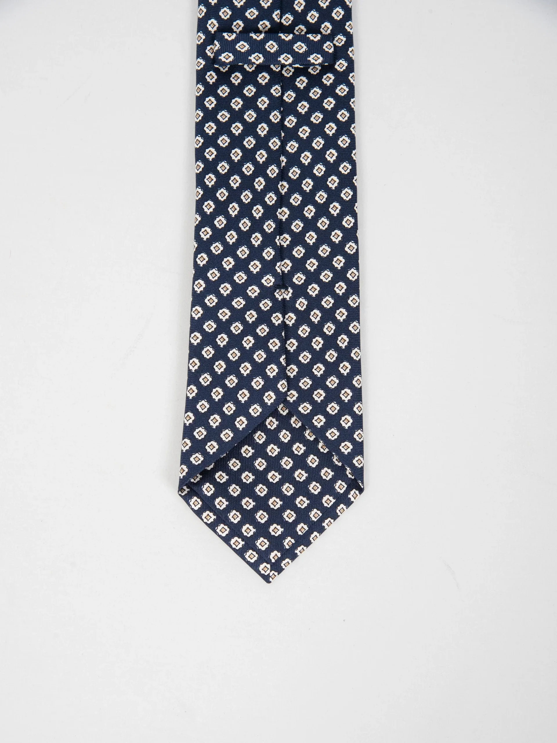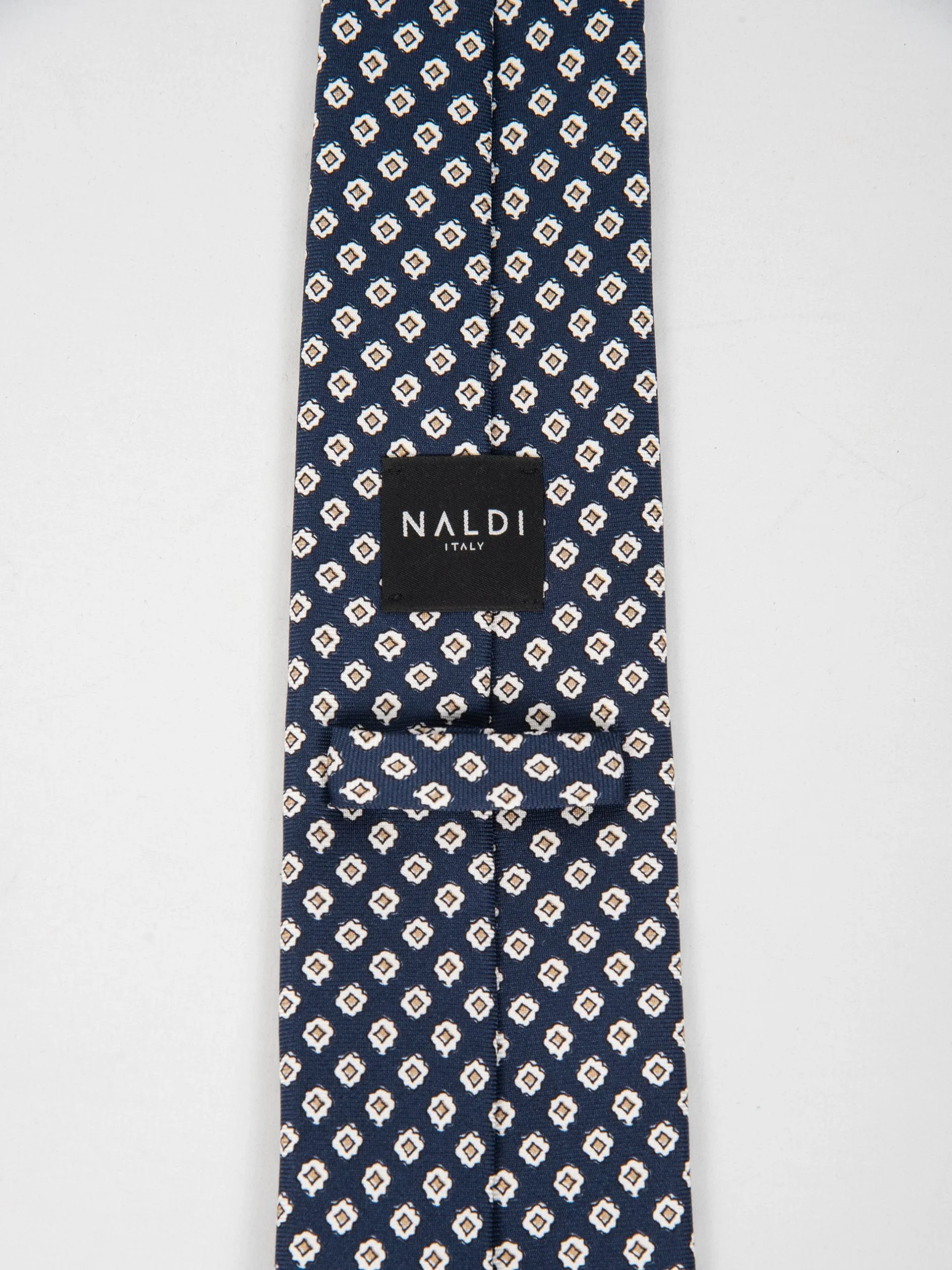 Mod: Naldi foderata 8 cm blu motivo micro rombi oro Cravatta 8 cm artigianale foderata. Tessuto 100% seta. Base blu e motivo micro rombi oro. Caratteristiche artigianato Napoletano.