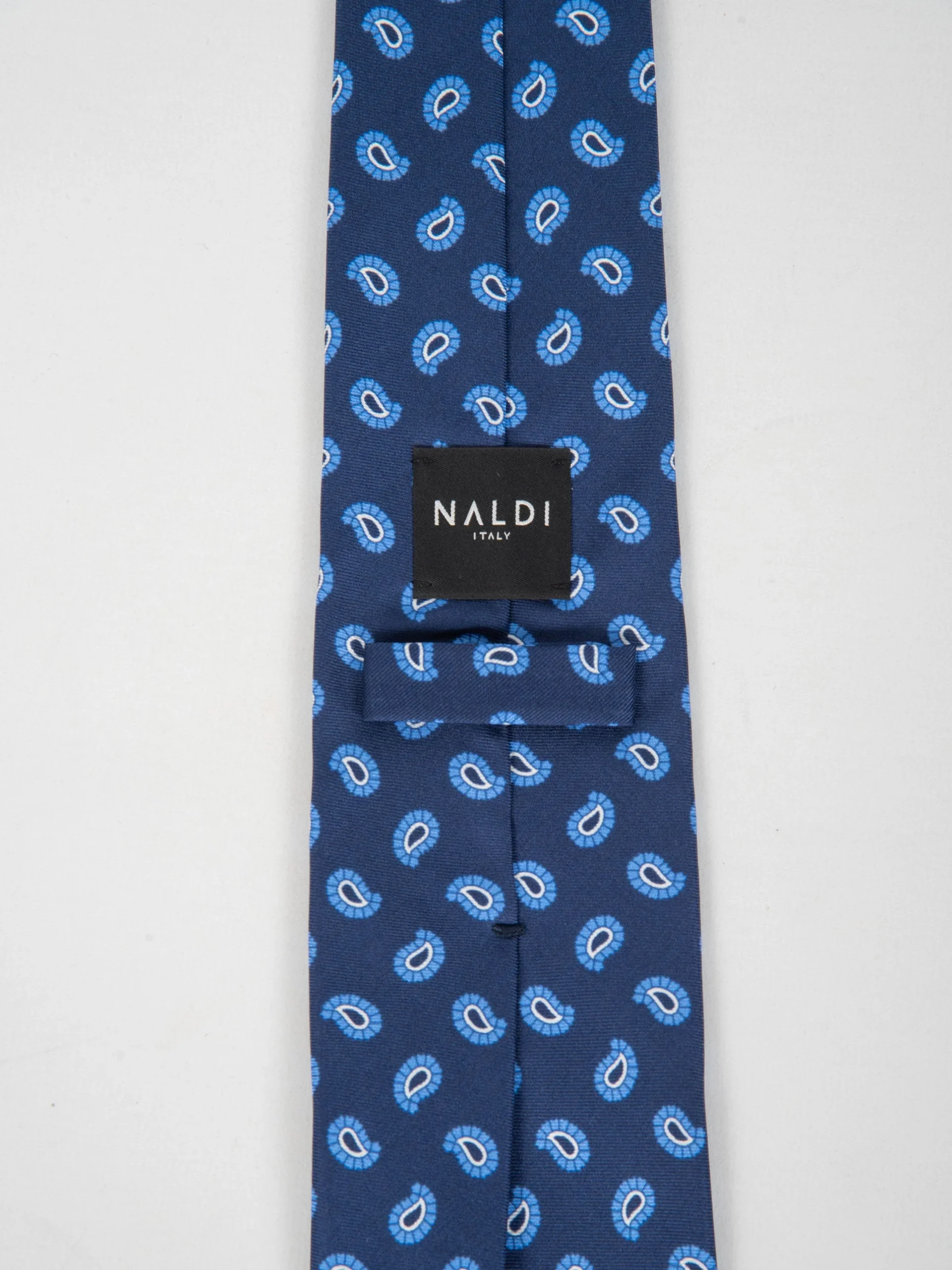 Mod: Naldi sfoderata 8 cm Celeste Paisley Cravatta 8 cm artigianale sfoderata. Tessuto 100% seta. Fantasia base azzurro e paisley celeste. Caratteristiche artigianato Napoletano.