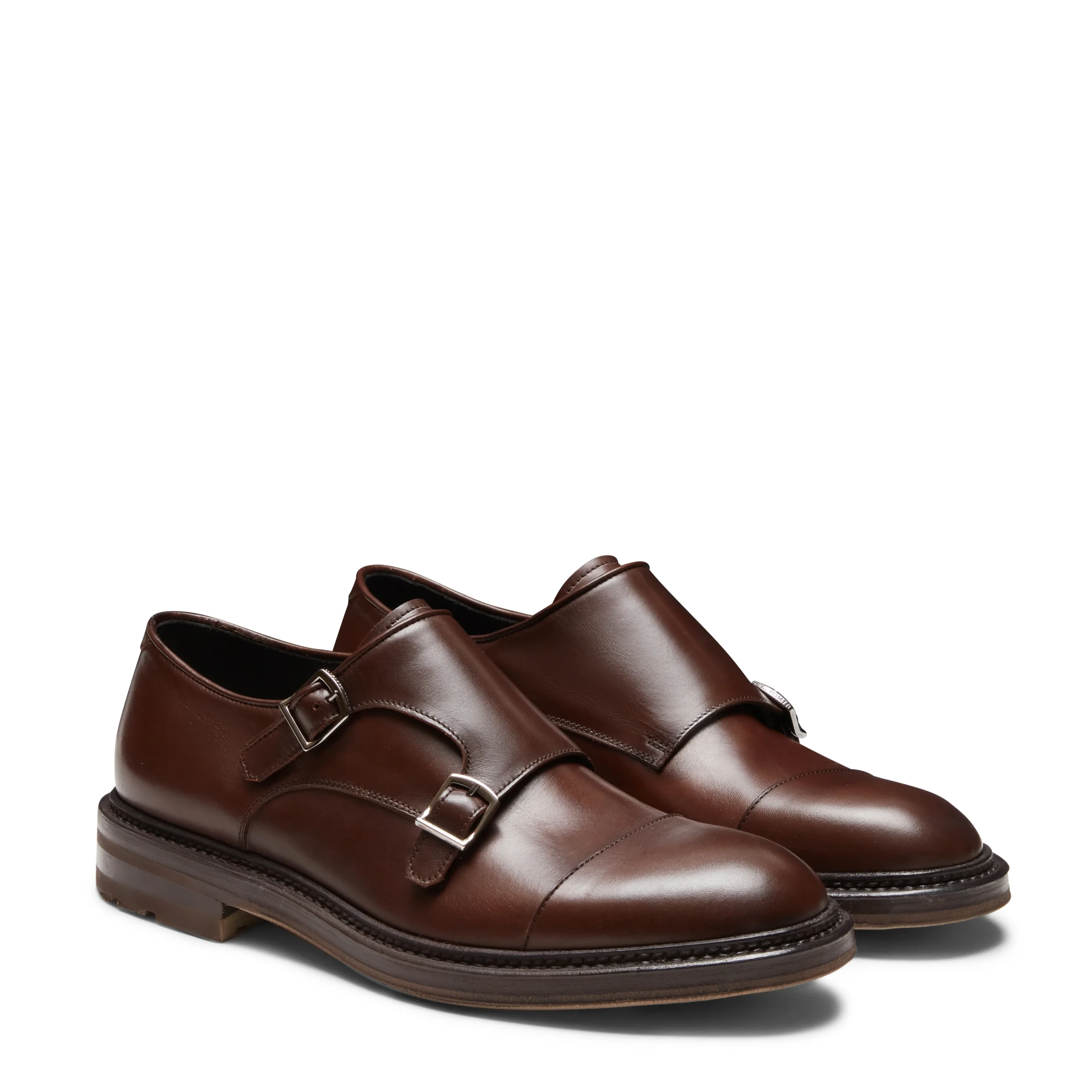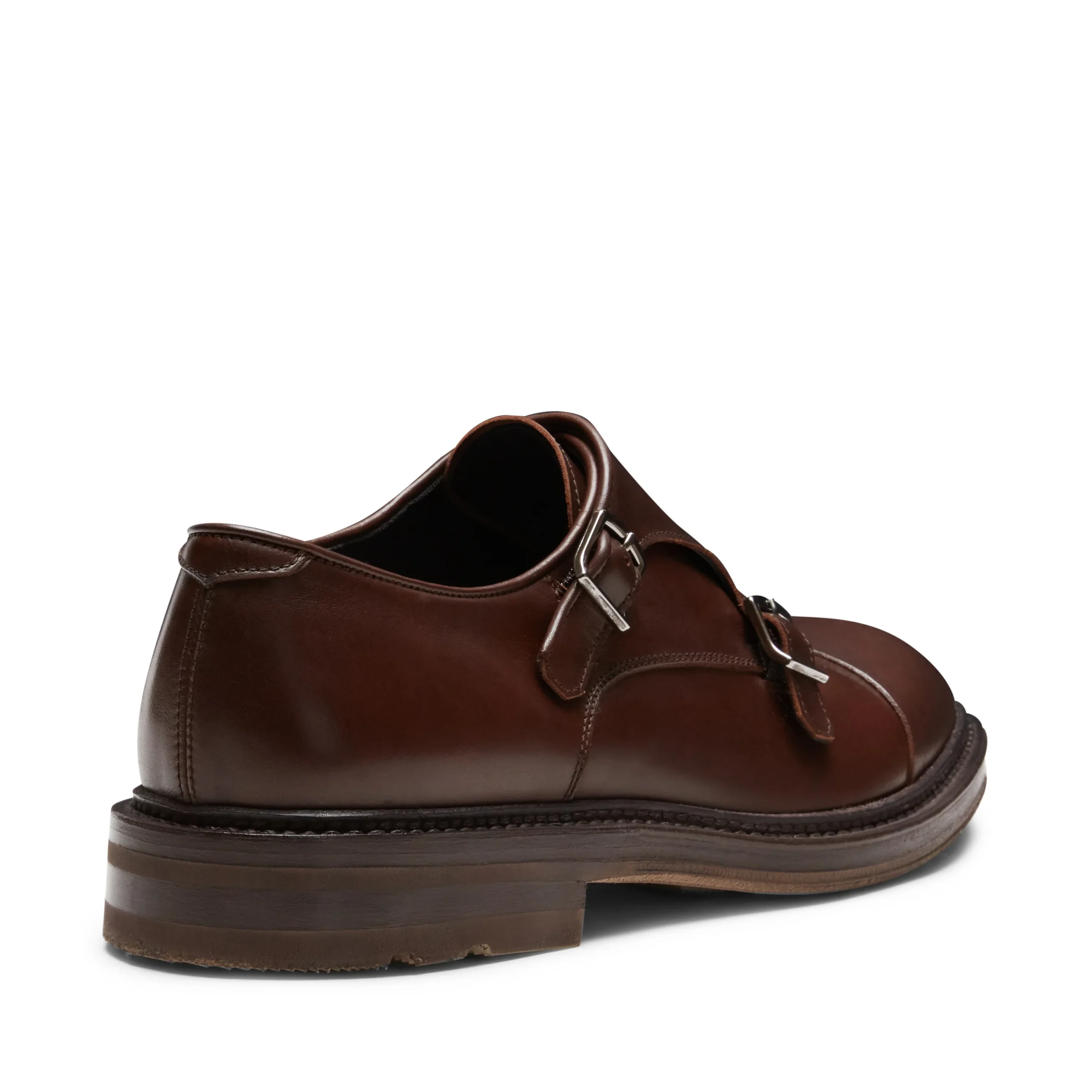 Derby doppia fibbia con puntale dal look ricercato. Linee classiche si fondono con un look contemporaneo. Realizzato in pelle liscia con fondo in gomma texturizzato di colore beige con intersuola in cuoio.