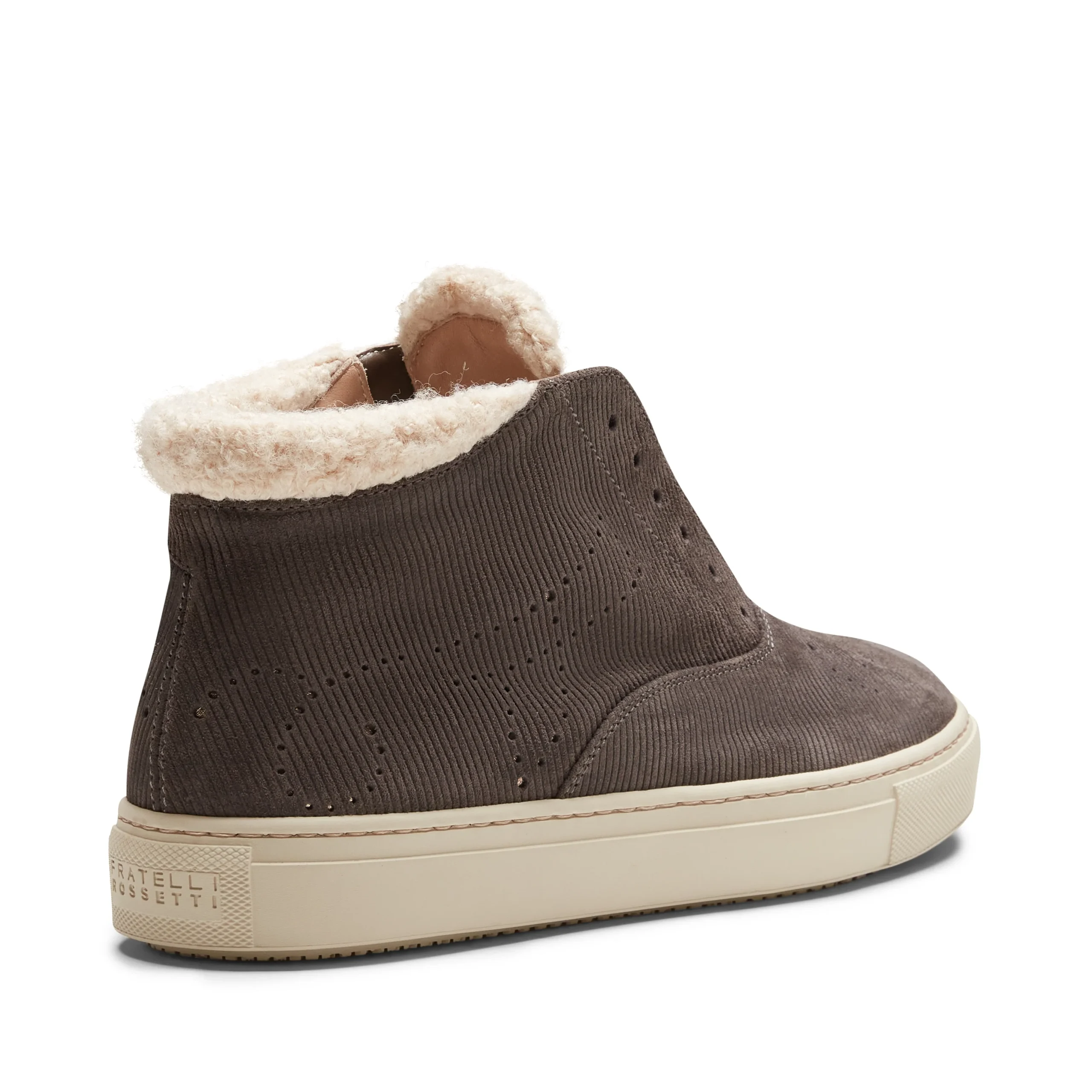 L’iconica sneaker Hobo Sport è reinterpretata in chiave desert boot. Realizzata in pelle scamosciata color acciaio con stampa millerighe e inserto in tessuto effetto riccio. Può essere indossata anche senza lacci, per un look pratico e contemporaneo. Suola in gomma con battistrada personalizzato antiscivolo, garantisce comfort e leggerezza, rendendola perfetta per un utilizzo quotidiano.