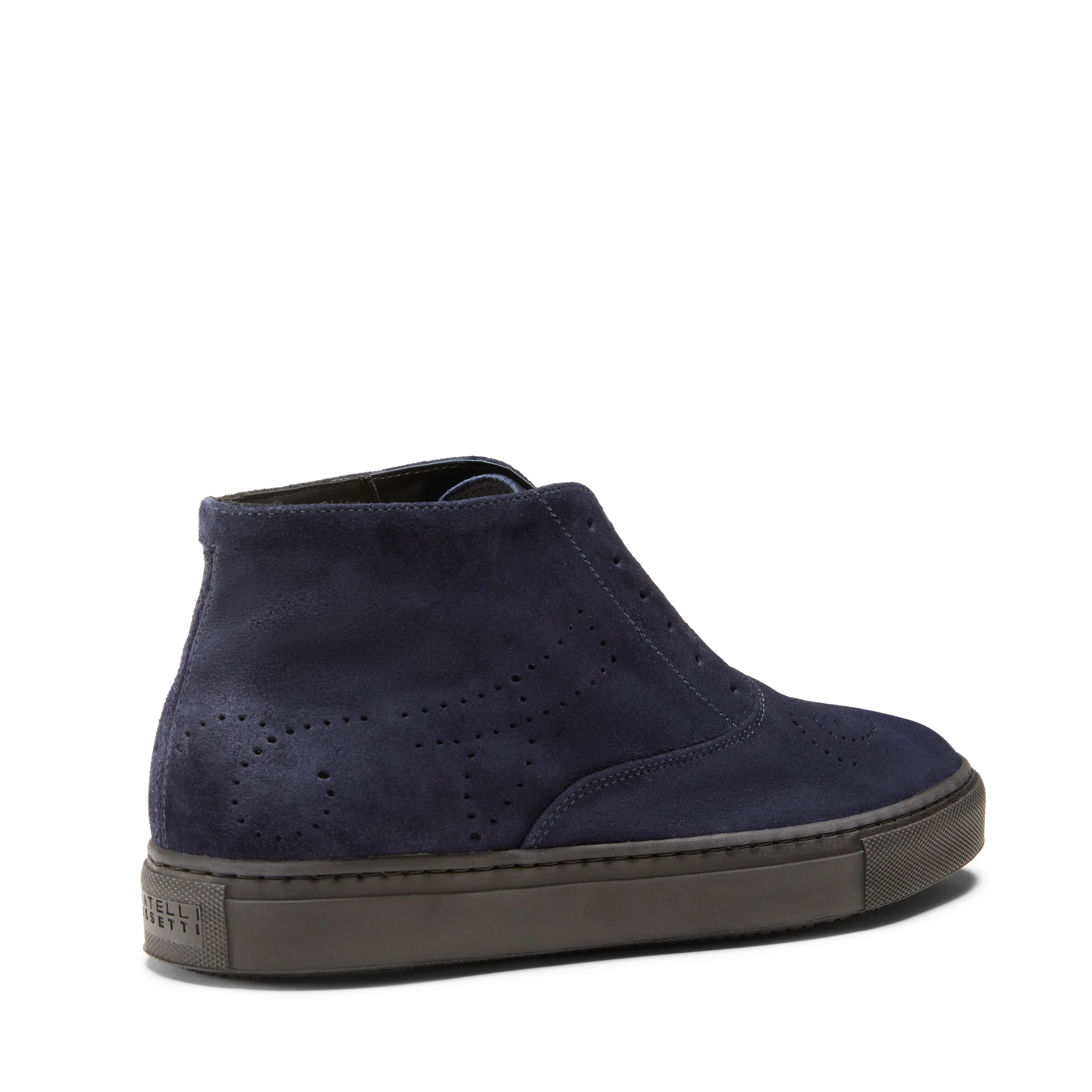 Iconica sneaker Hobo Sport con dettagli di forature interpretata nella versione desert boot. Realizzata in morbida pelle scamosciata con particolare aspetto lucido. Casual e raffinata può essere indossata senza lacci. Soletta interna estraibile e traspirante. La suola a cassetta realizzata in gomma con battistrada personalizzato è alta 55mm.