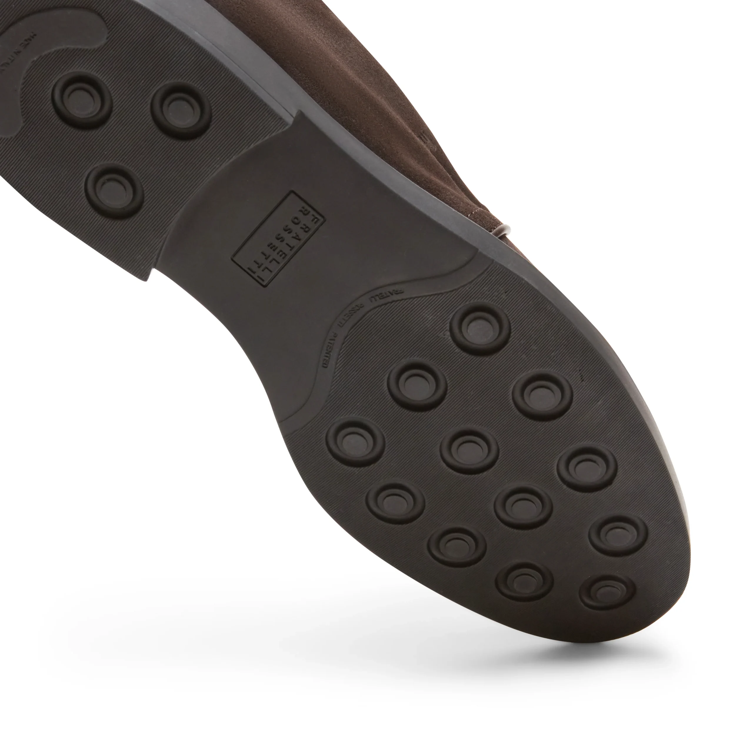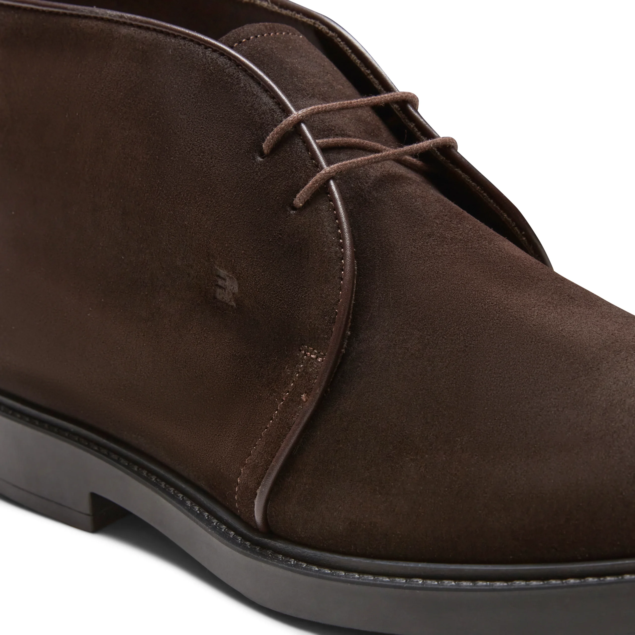 Desert boot d’ispirazione anglosassone, realizzato in morbida pelle scamosciata color cacao con trattamento idrorepellente. Caratterizzato dal profilo in pelle in tono, perfetto per affrontare l’inverno combinando stile raffinato e massimo comfort. Suola in gomma personalizzata con grip antiscivolo.