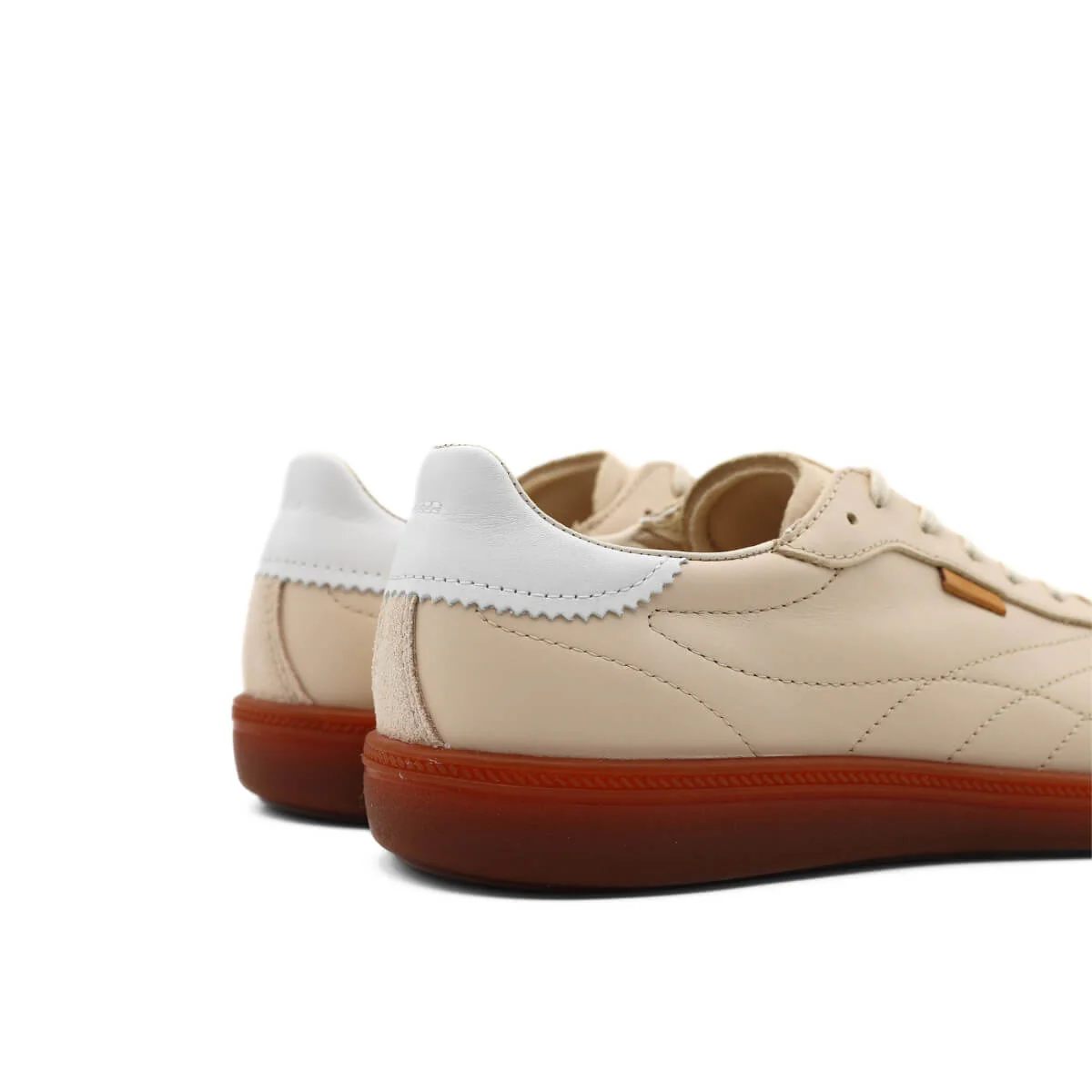 La tomaia è realizzata in vera pelle beige e bianca con inserti in camoscio, selezionata per garantire una sensazione piacevole al tatto e una vestibilità naturale. Internamente realizzata in tessuto con sottopiede non estraibile e suola in gomma.