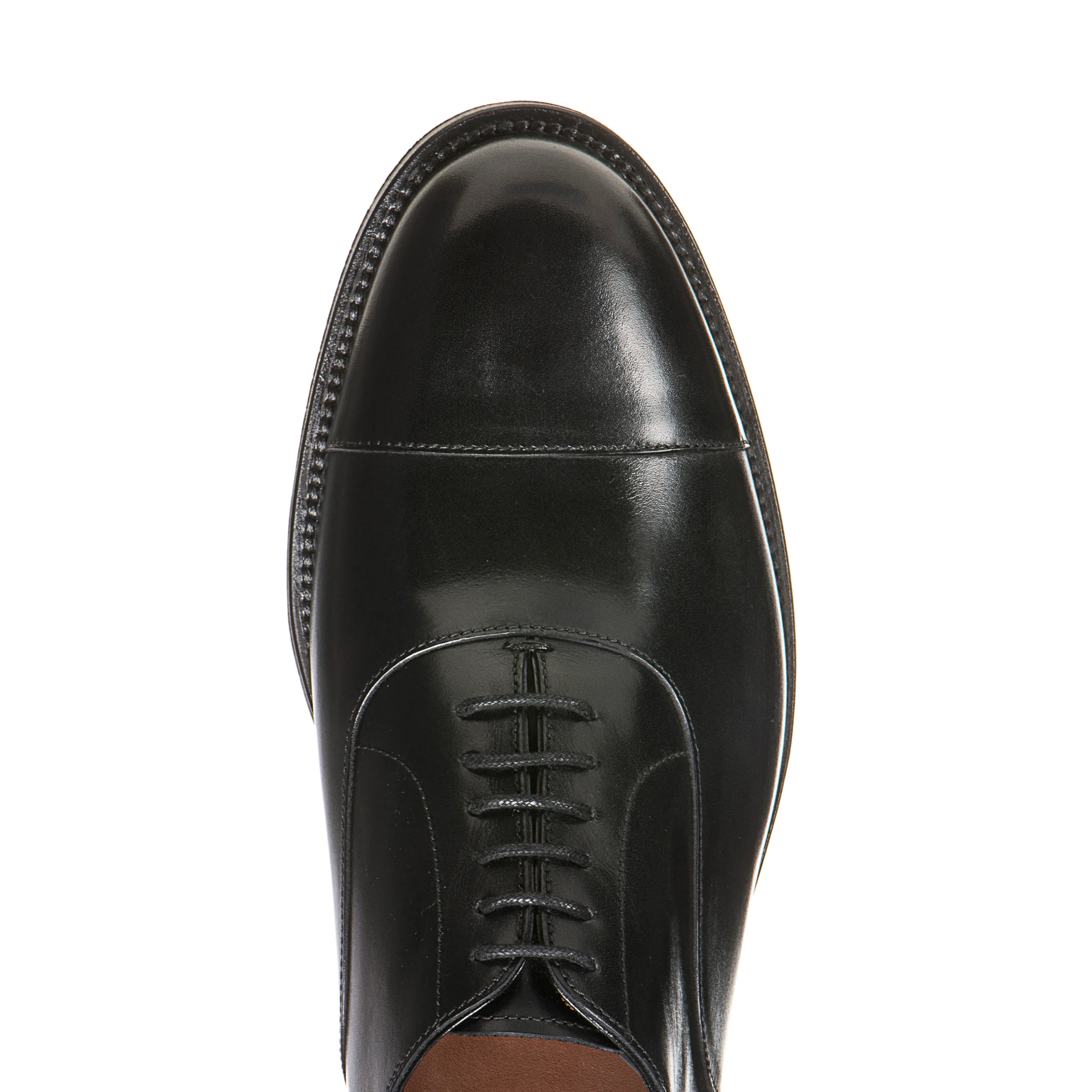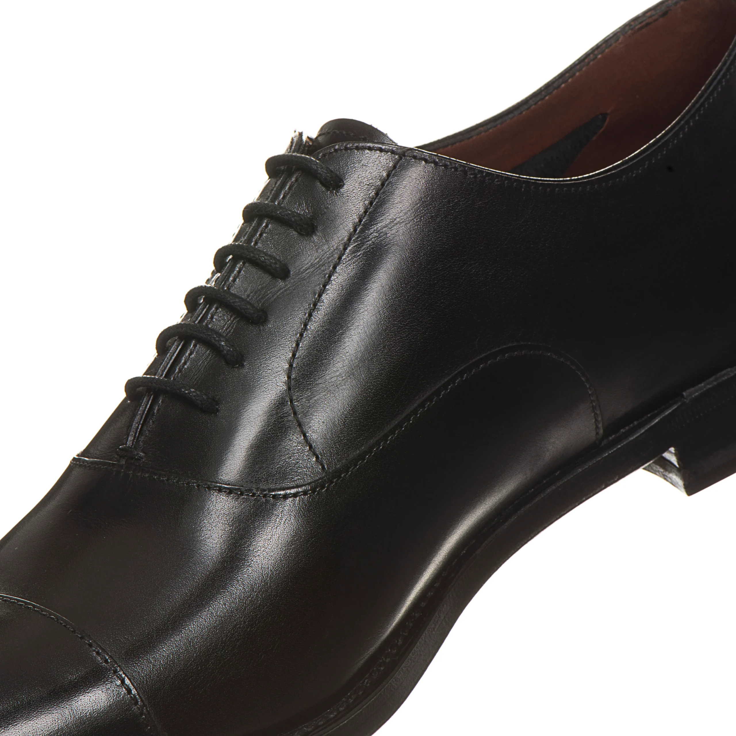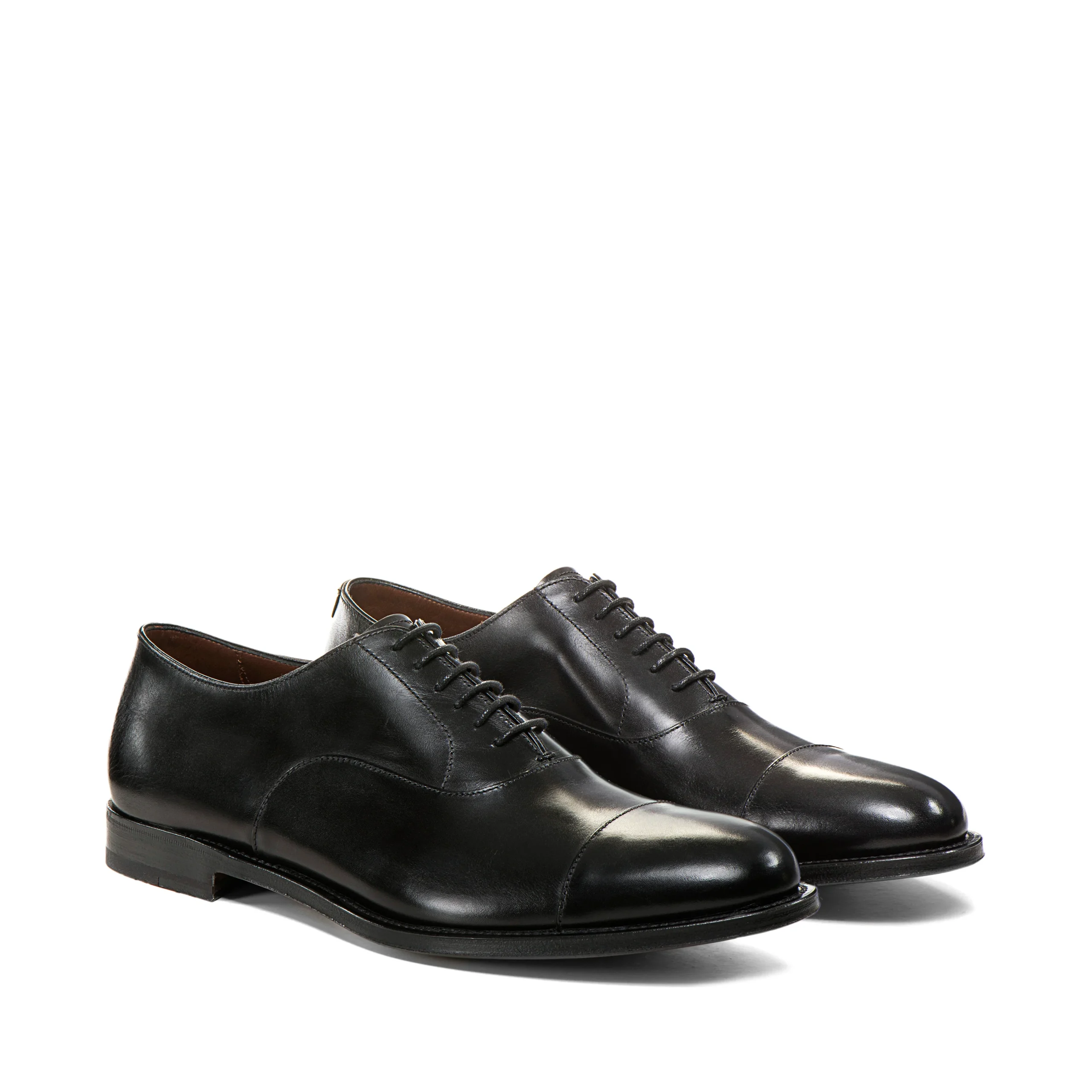 Francesina con puntale realizzata in morbida pelle di colore nero caratterizzata da un’esclusiva lavorazione artigianale tramite spazzolatura per creare un leggero effetto anticato.