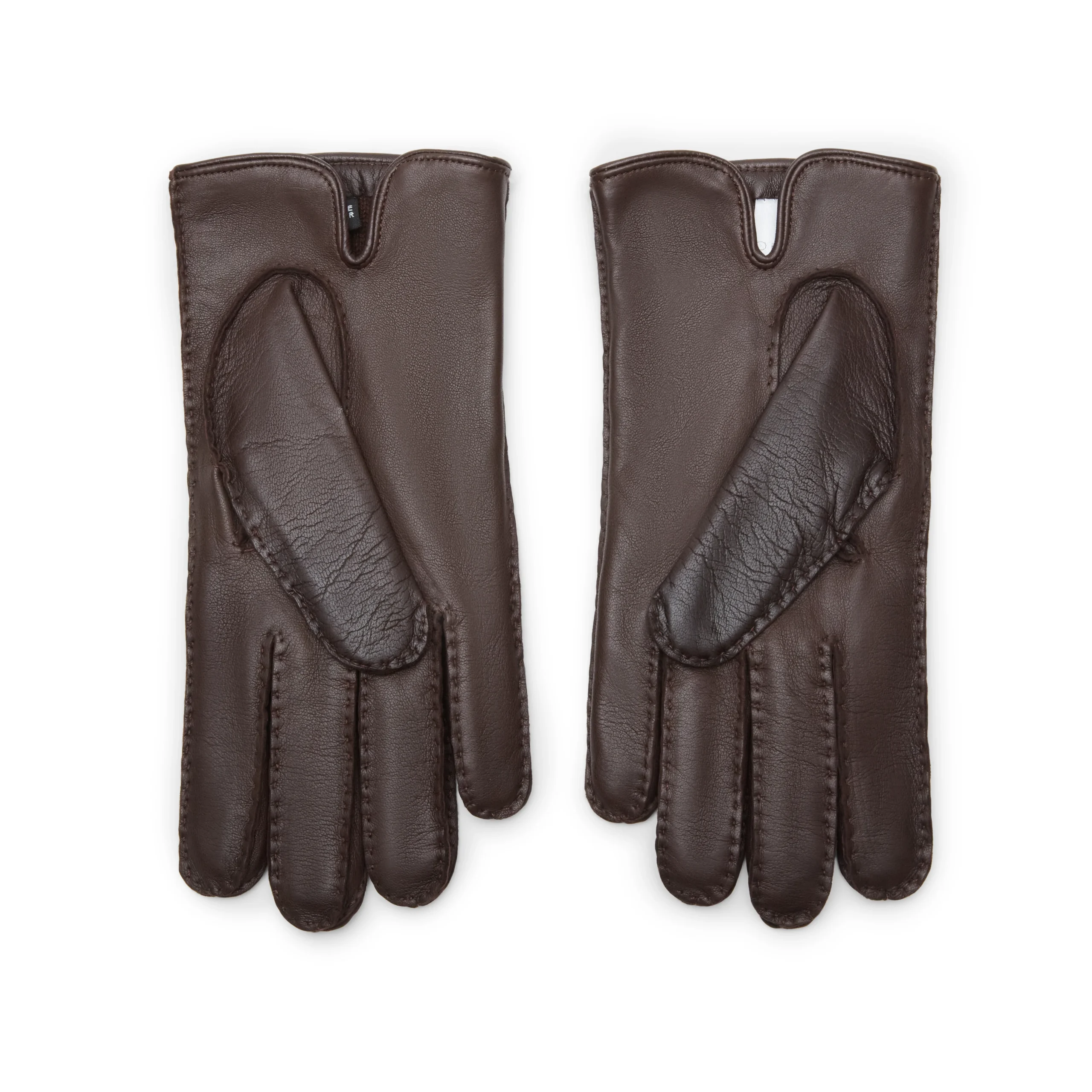 Guanto da uomo in morbida nappa color marrone. Caratterizzato da tre cordoni cuciti a mano sul dorso e spacco laterale. Il modello si caratterizza per i profili in pelle in tono.Art. 92237