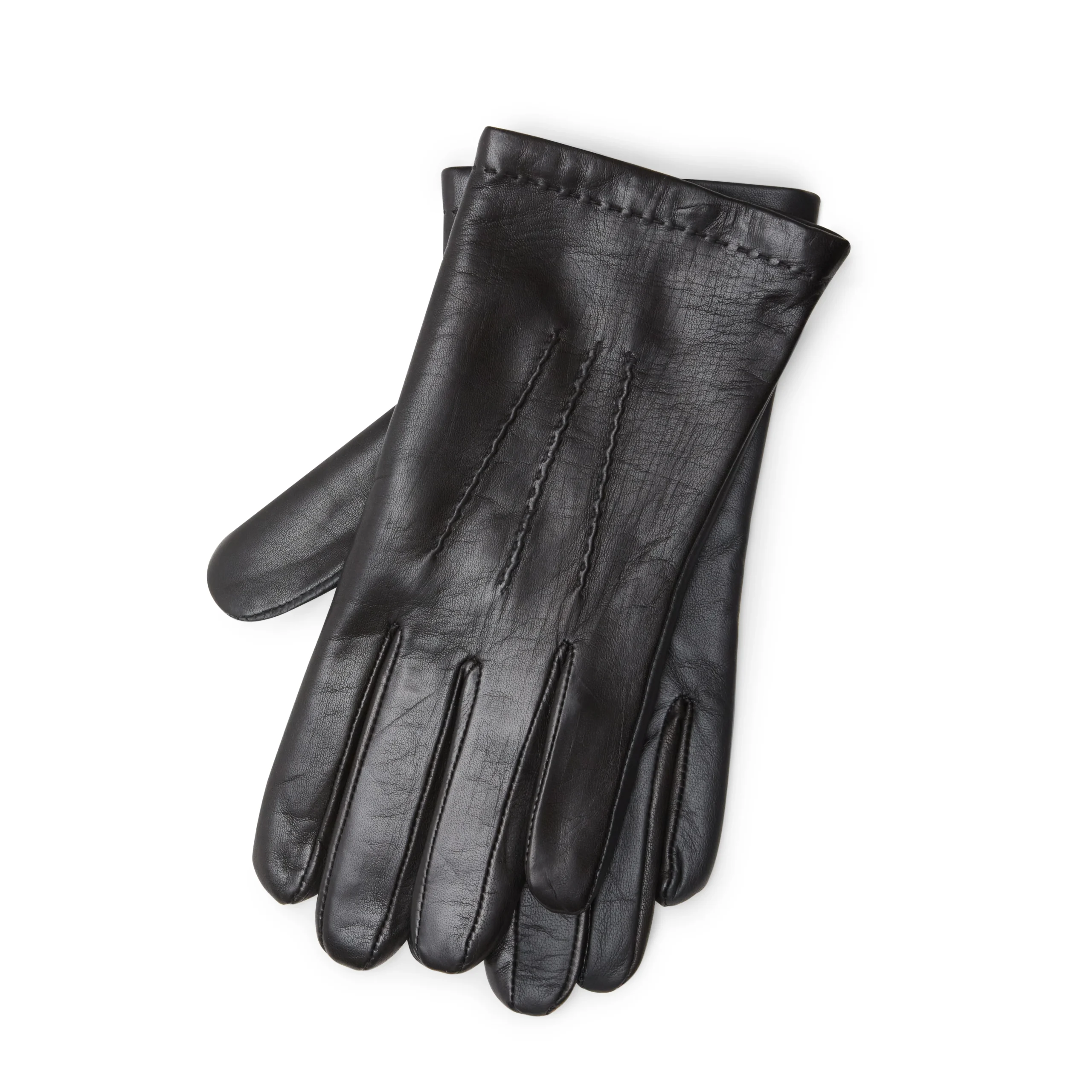 Guanto da uomo funzionale, realizzato in morbida nappa nera che permette di utilizzare il touchscreen. Caratterizzato da tre cordoni sopramano. Sottomano con spacco.Art. 92236
