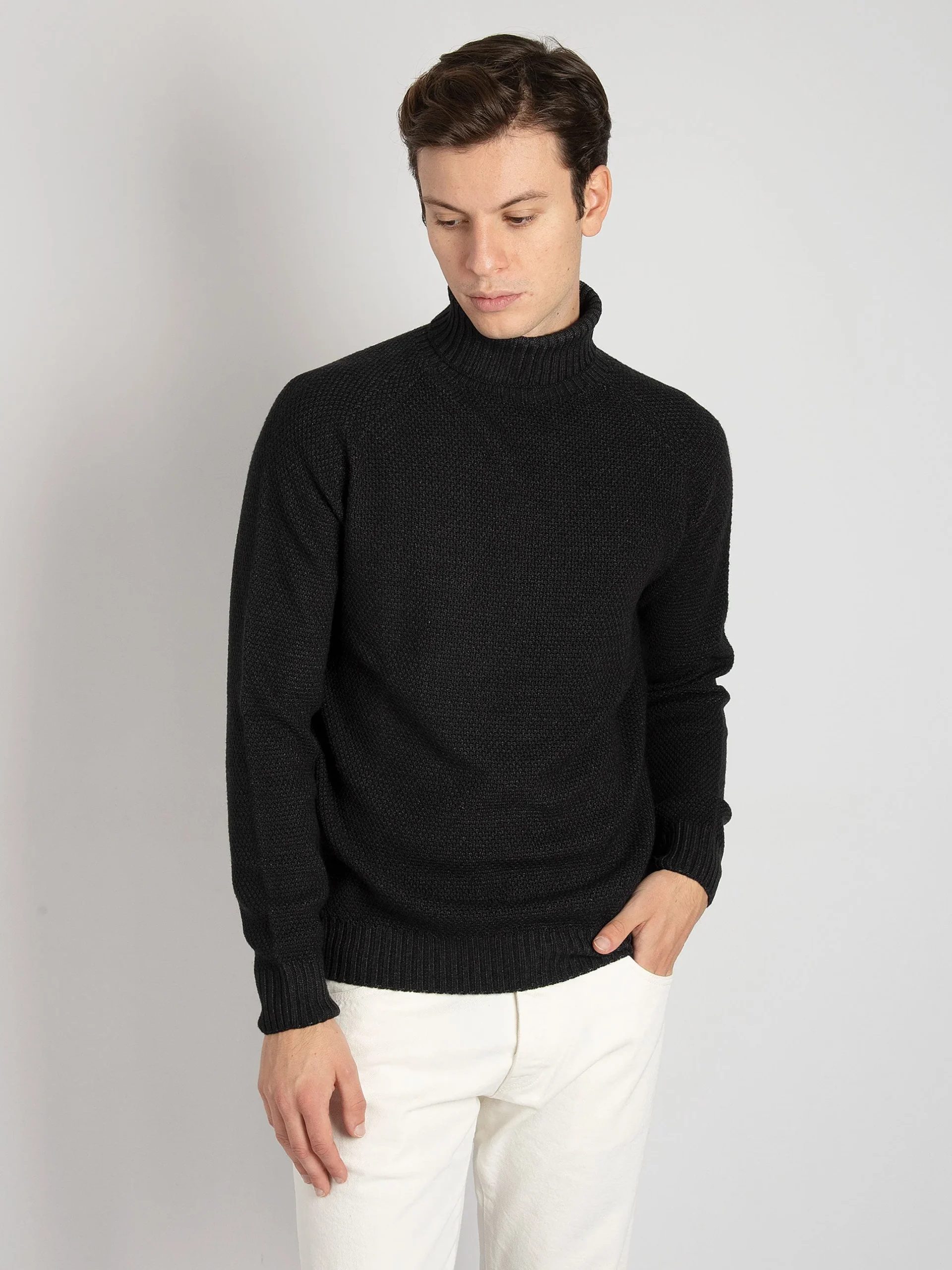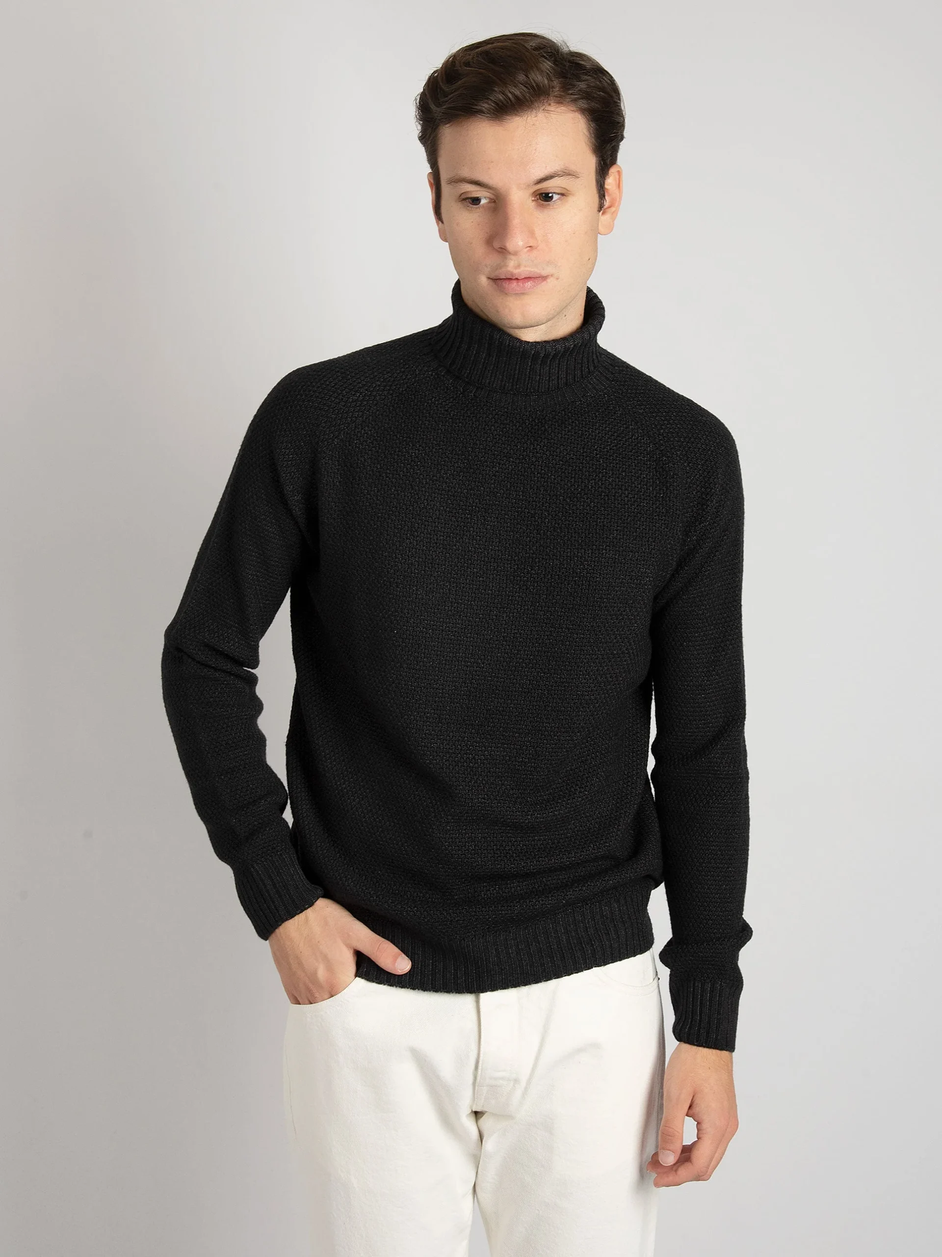 Maglia Dolcevita Grana Riso – Nero