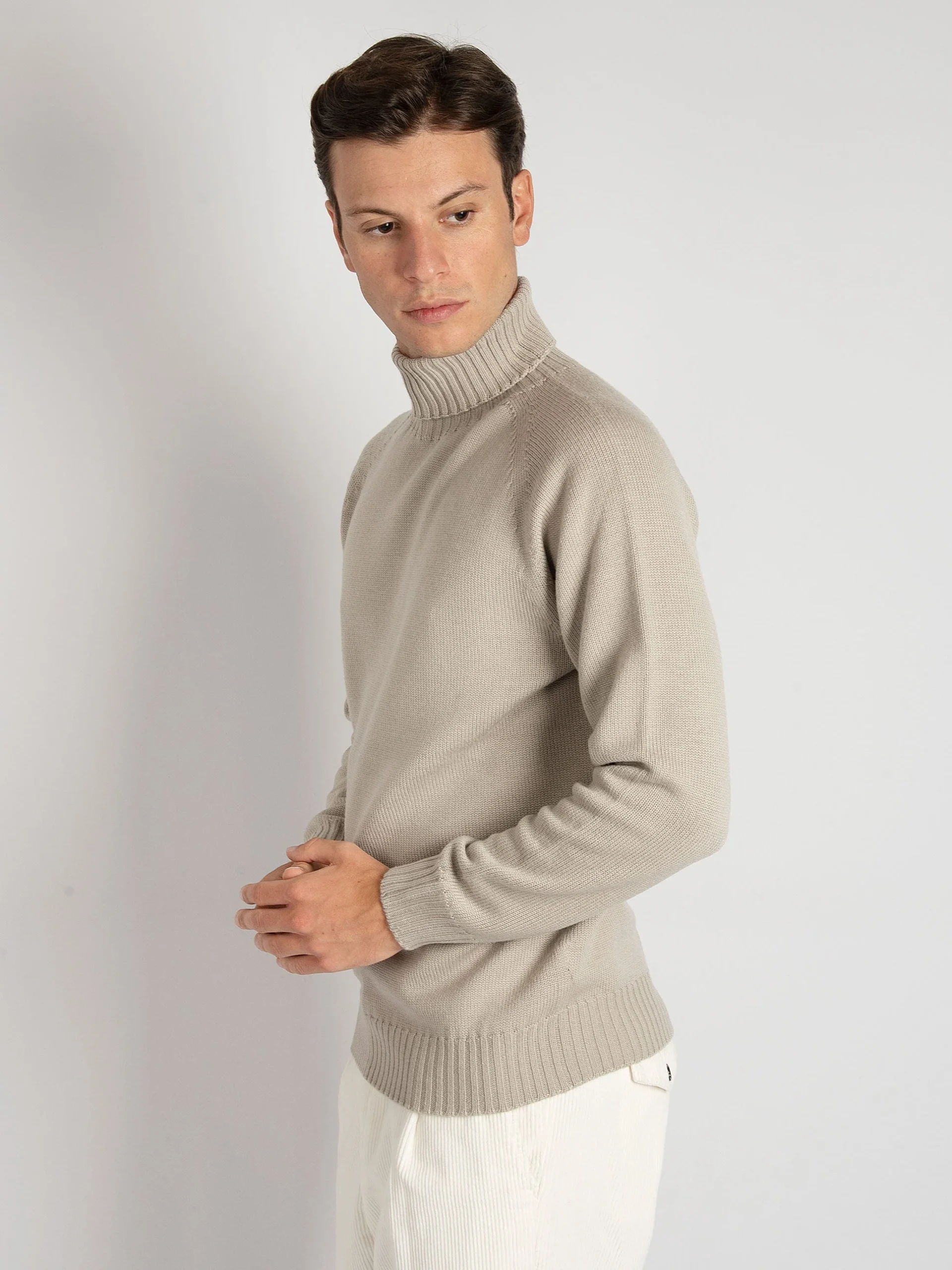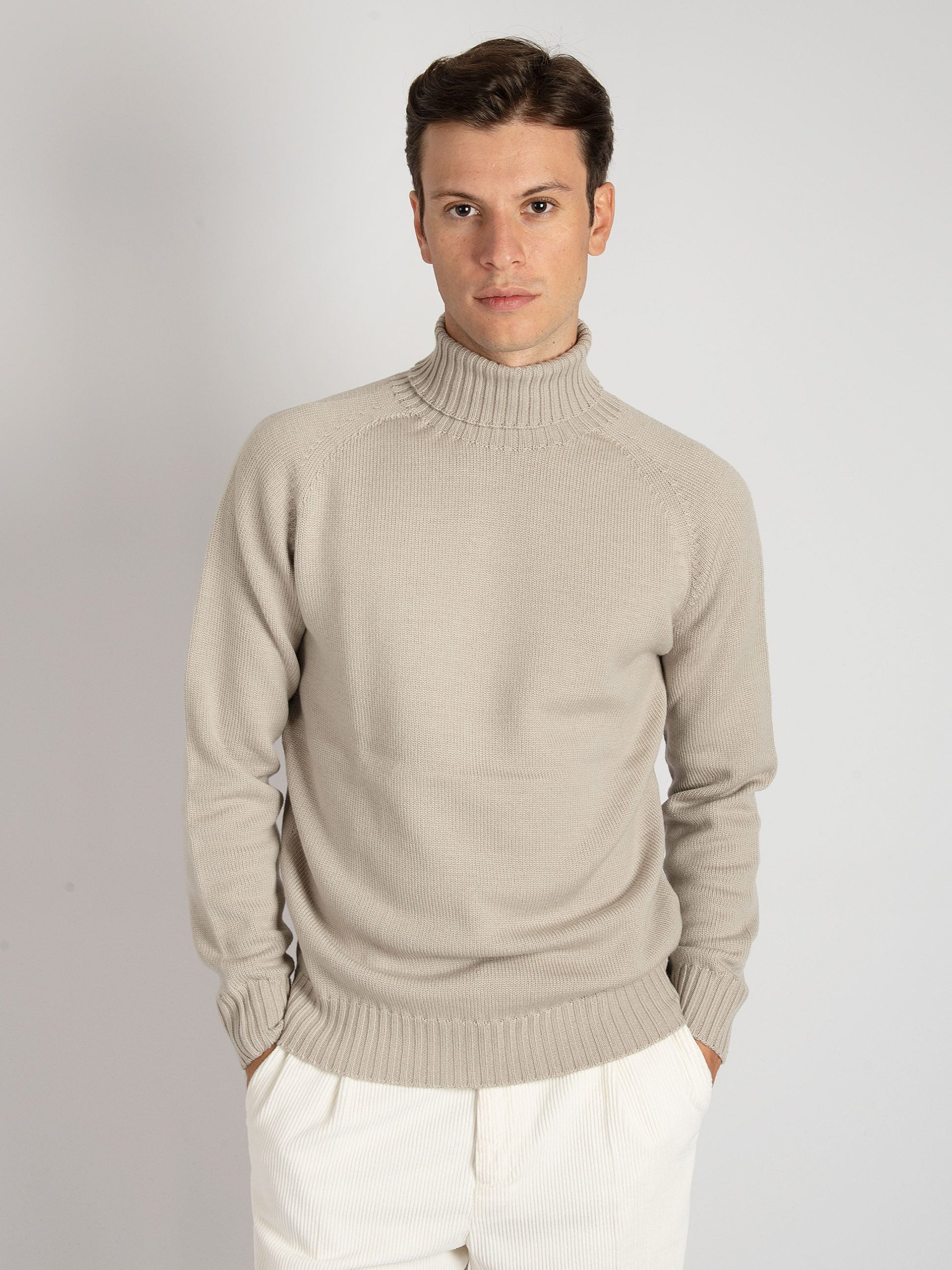 - Dolcevita tubolare in 100% lana merinos.
