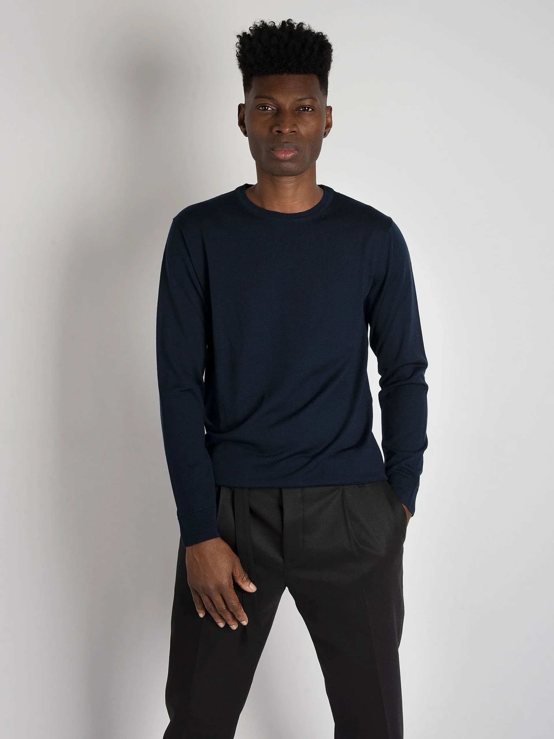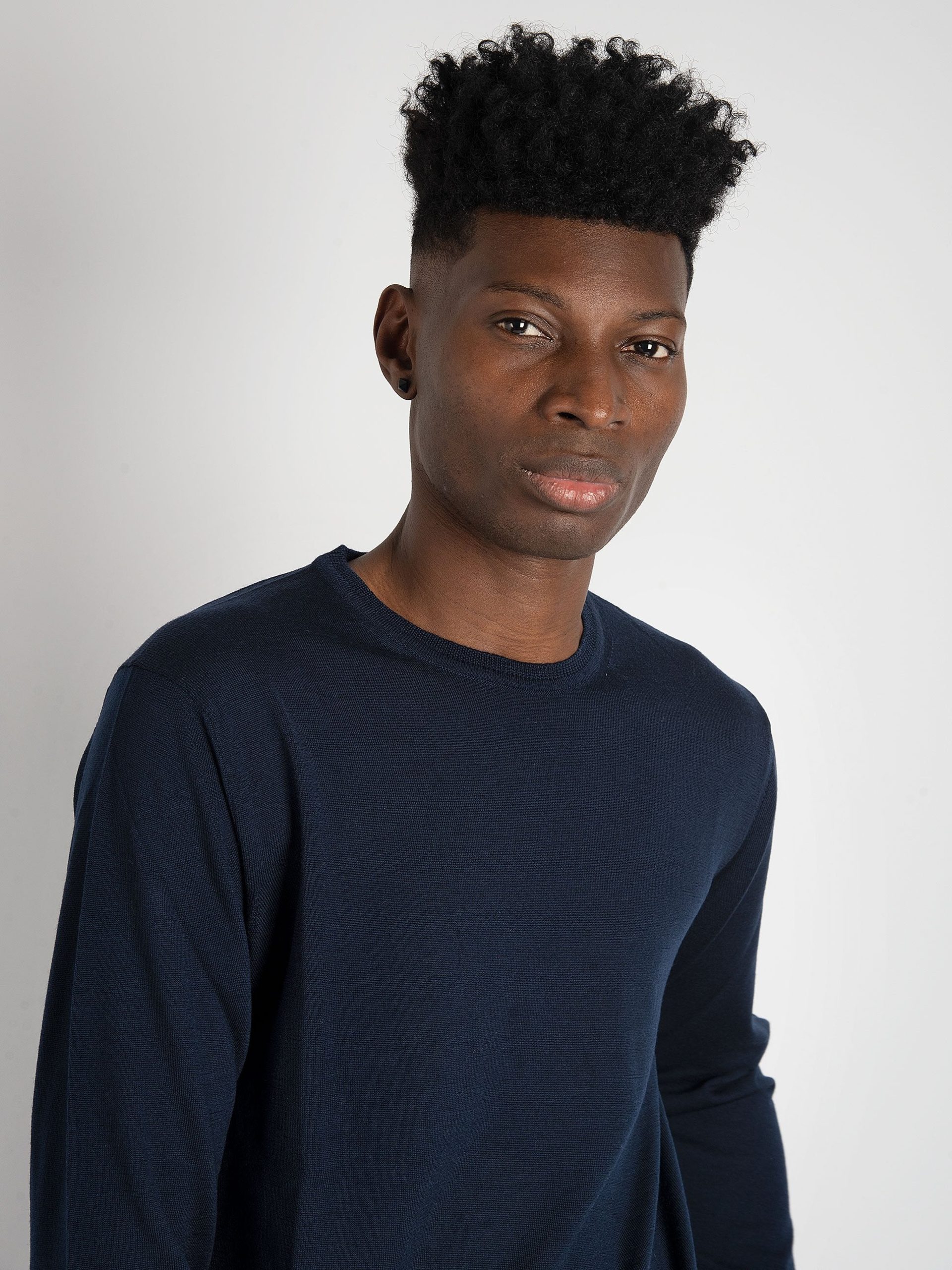 Mod: 2021/02 DF 0020 0024 Girocollo in lana 100% Merinos Exrafine. Cannolè, collo e polsini a costine. Adatto per un look casual o anche come sotto abito. Vestibilità regolare. Made in Italy. Il modello è alto 187 cm e pesa 70 kg: indossa una taglia L.