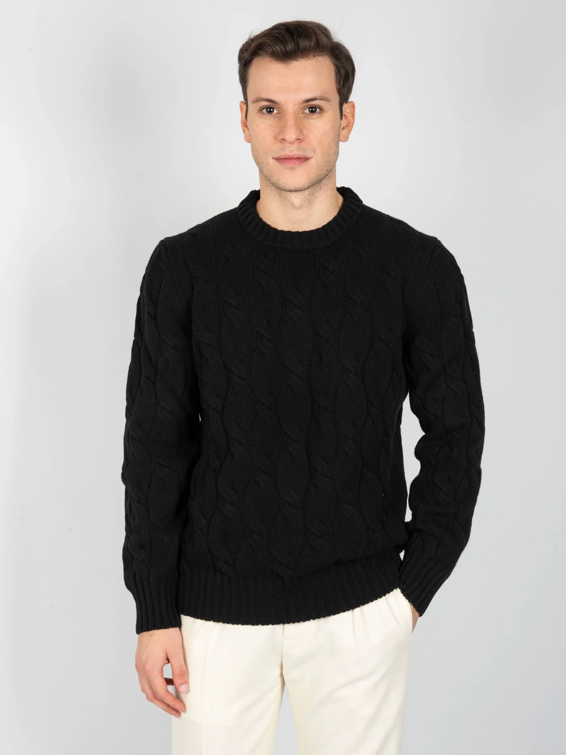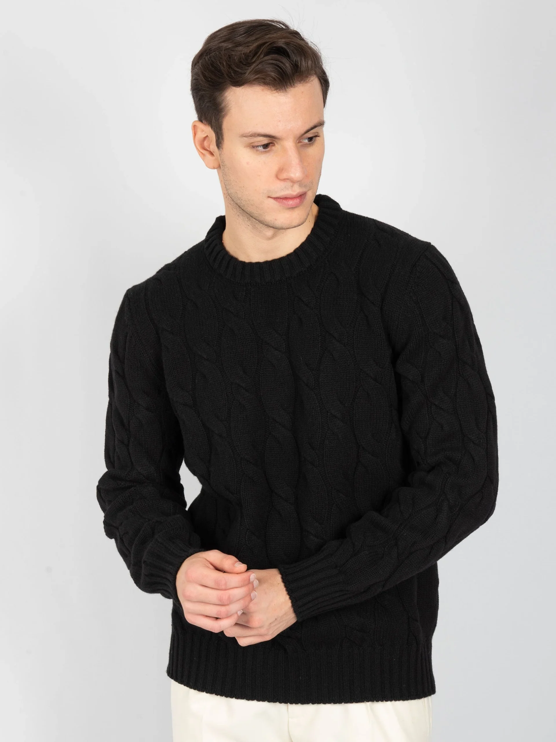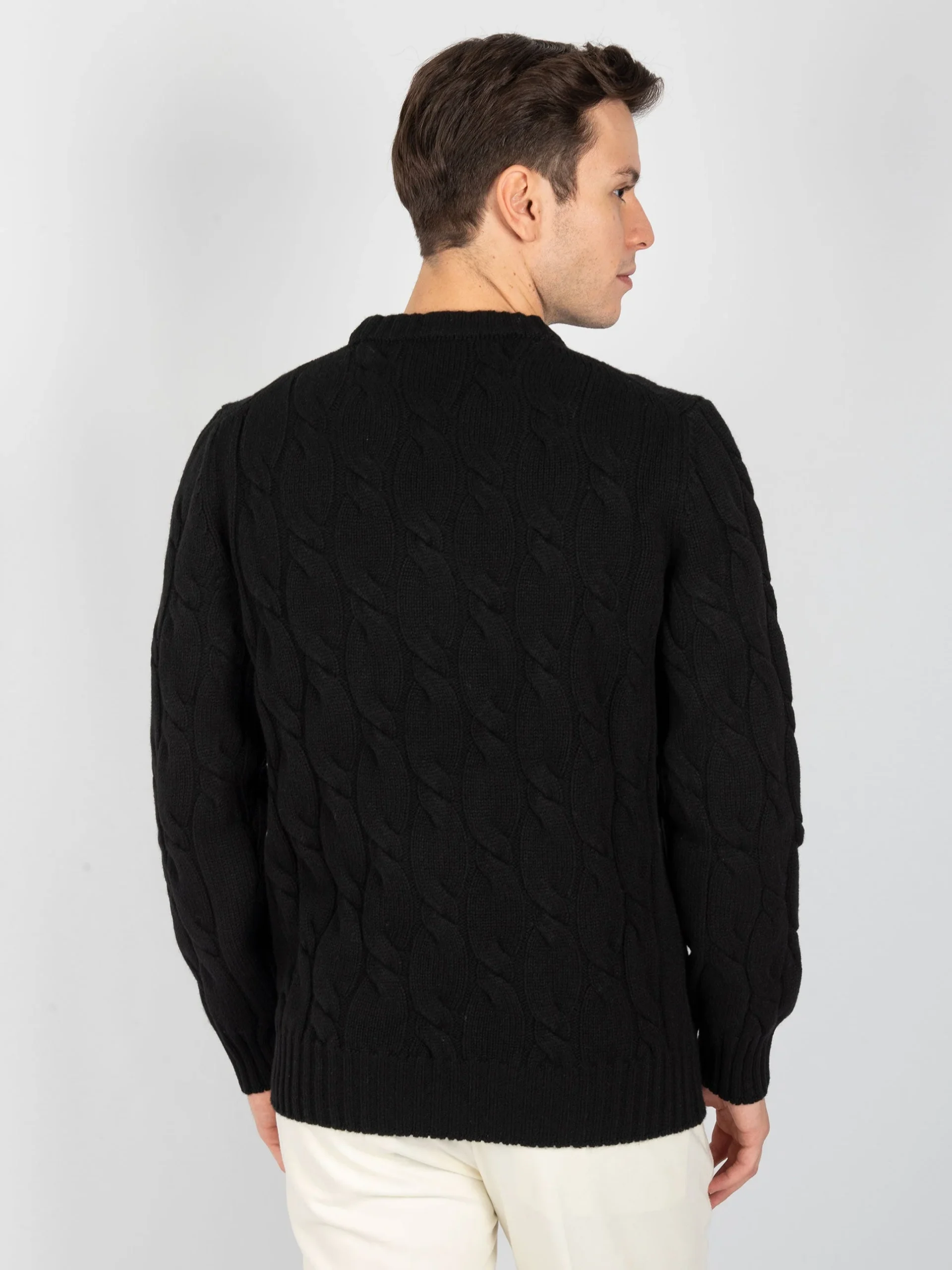 - Maglia girocollo in lana con lavorazione interna a trecce.
