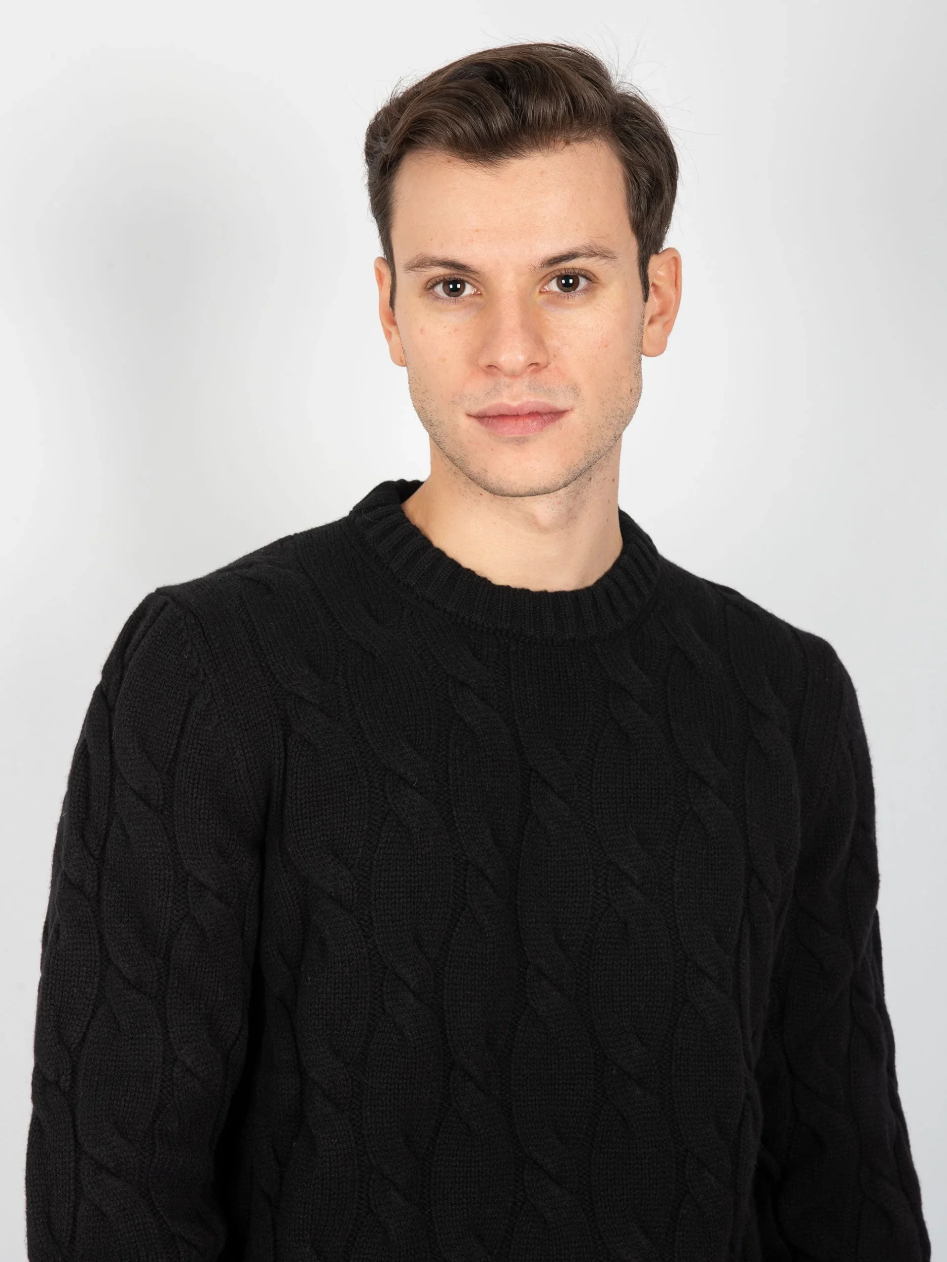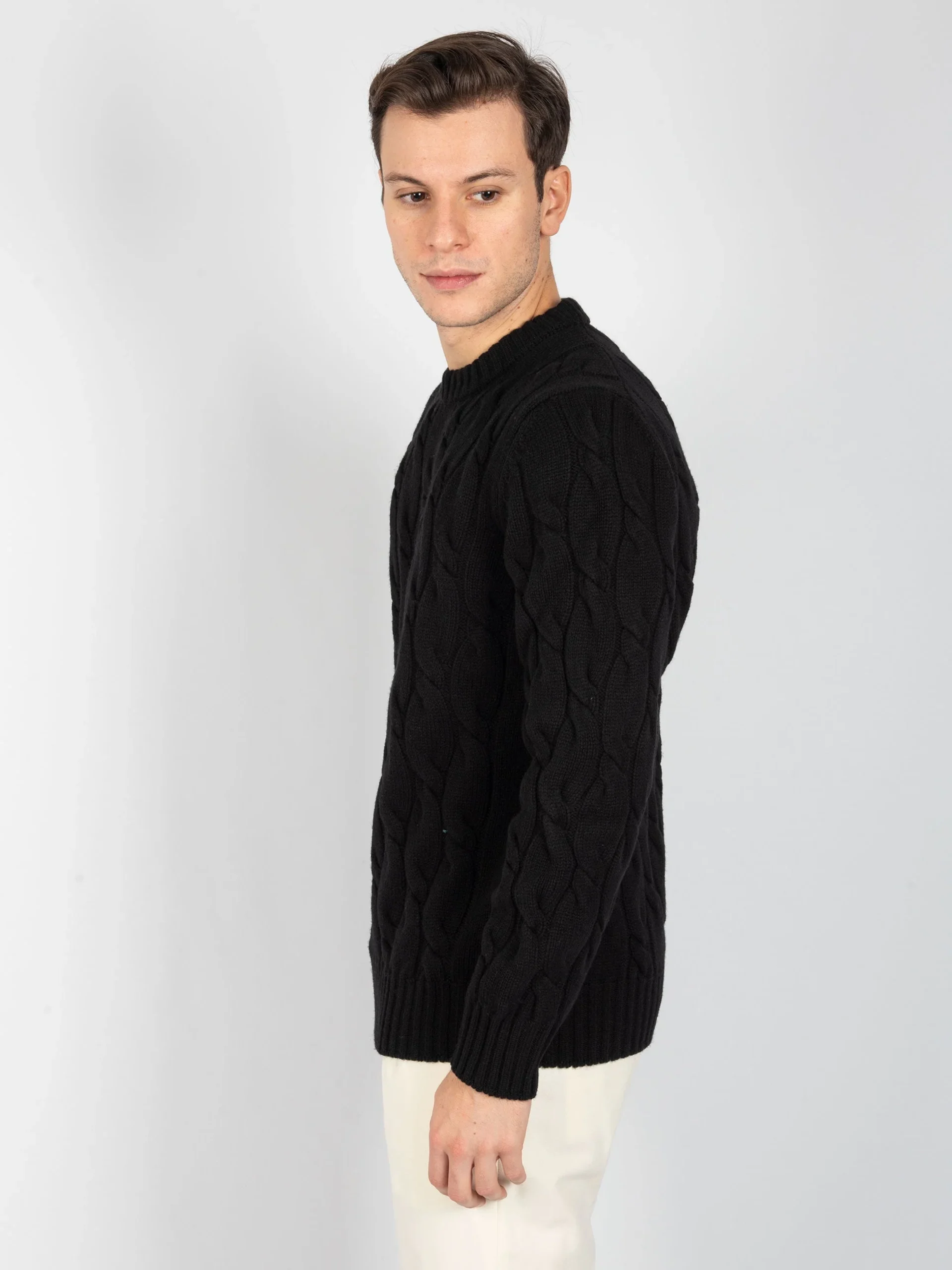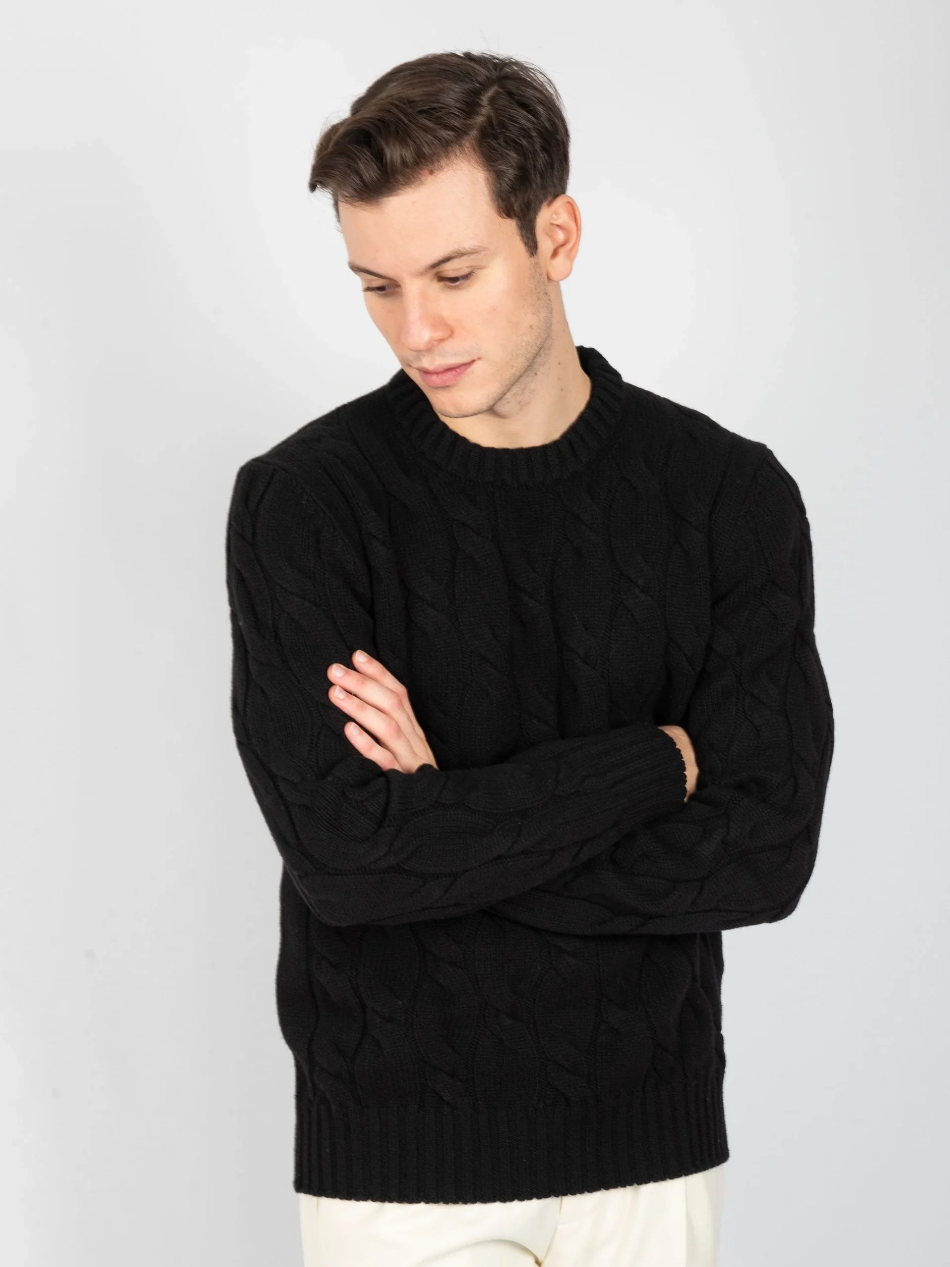 - Maglia girocollo in lana con lavorazione interna a trecce.