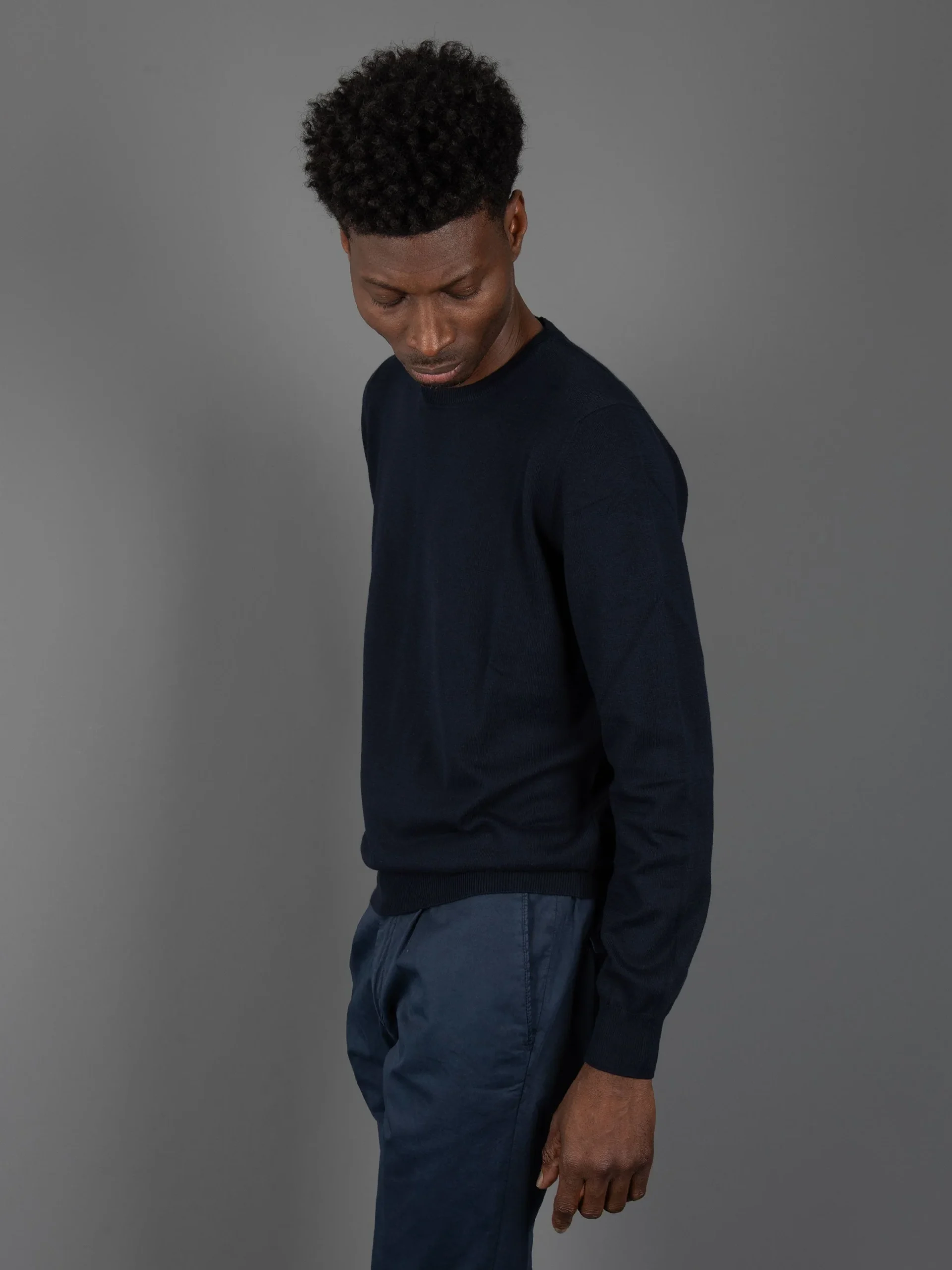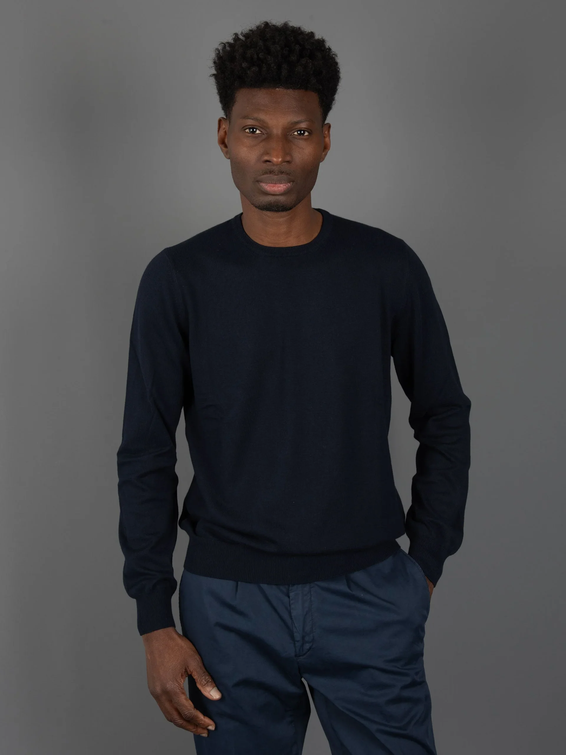- Maglia girocollo in cotone pregiato egiziano.