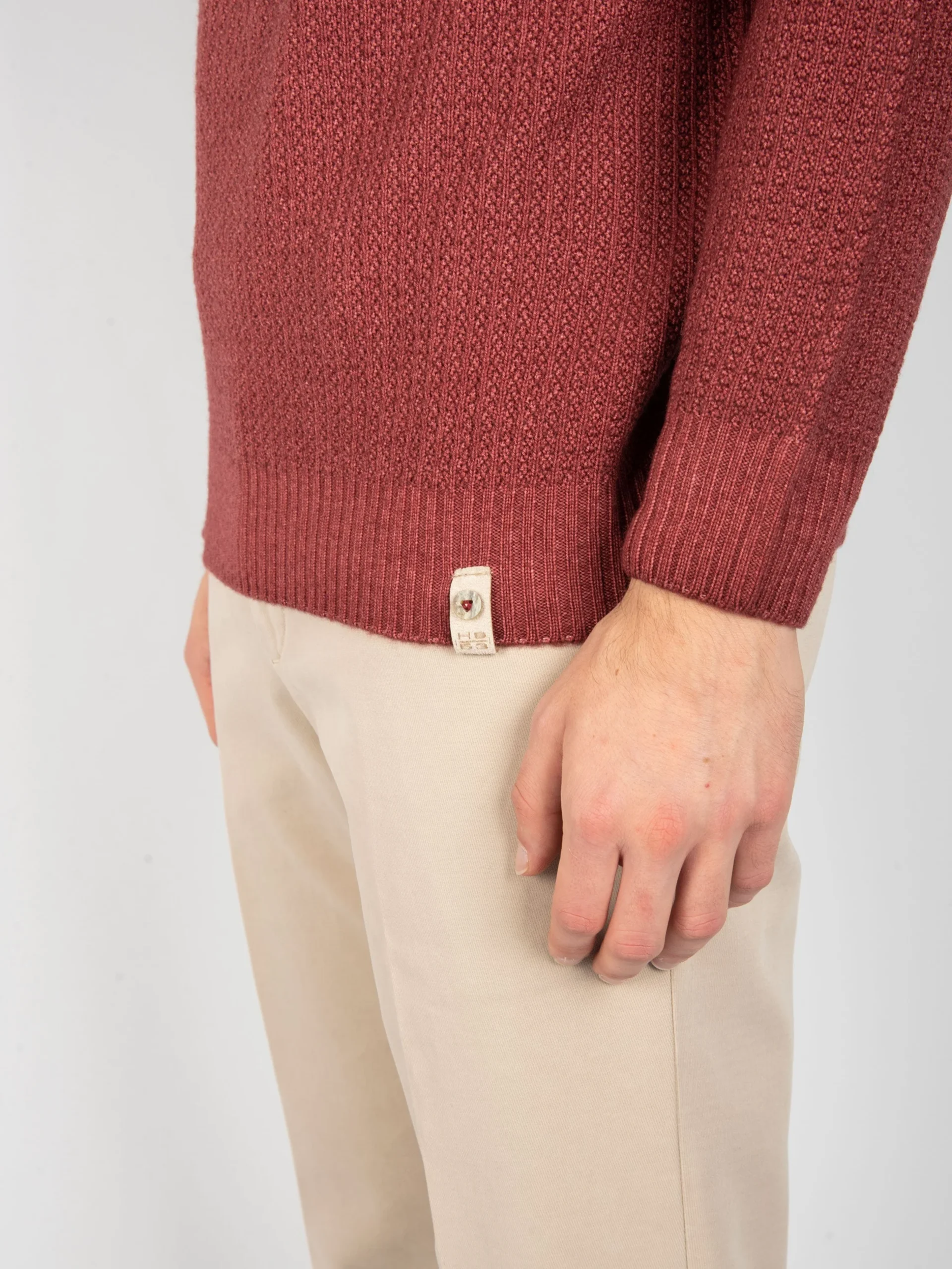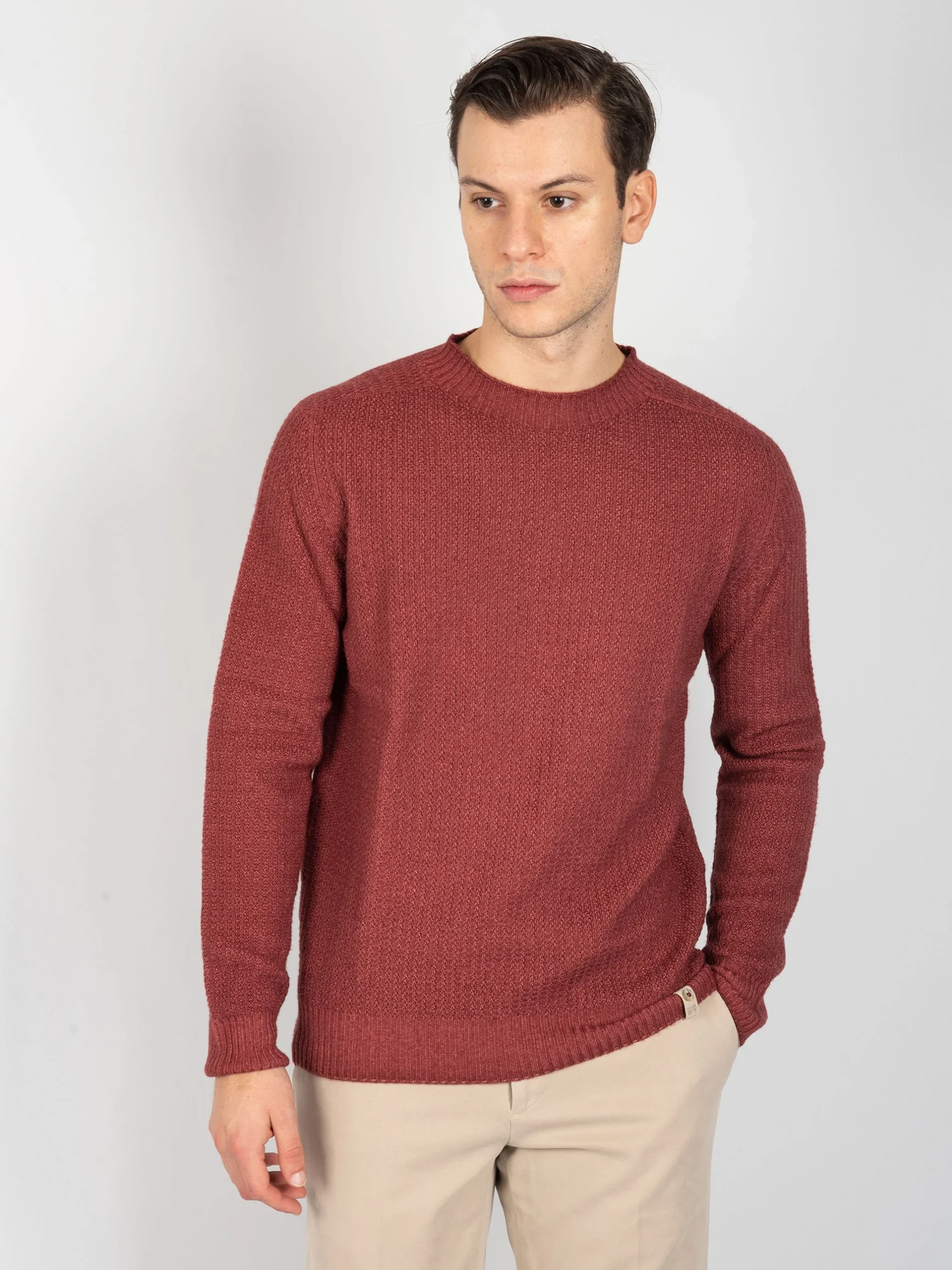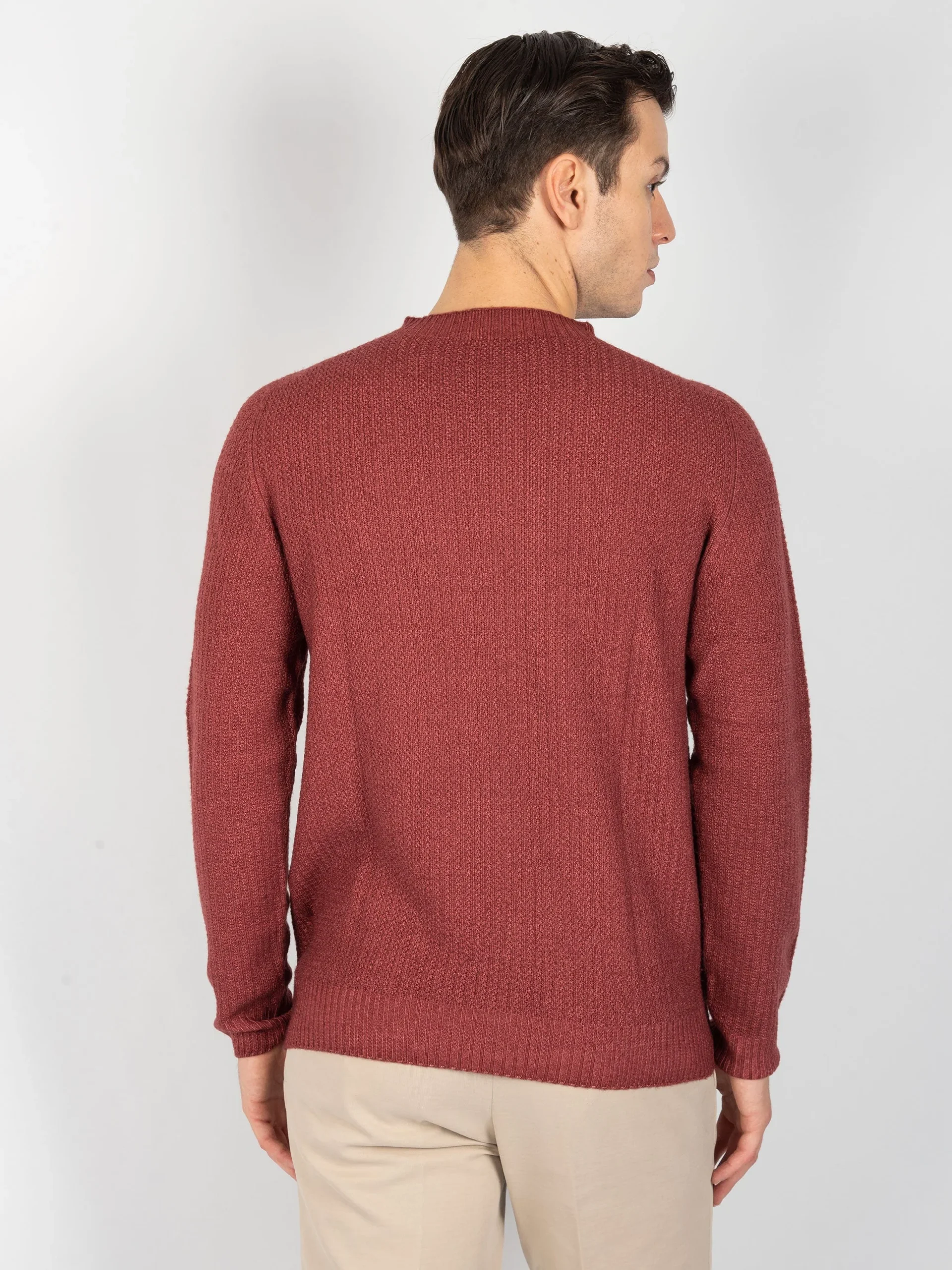 - Girocollo reversibile in 100% lana merinos.