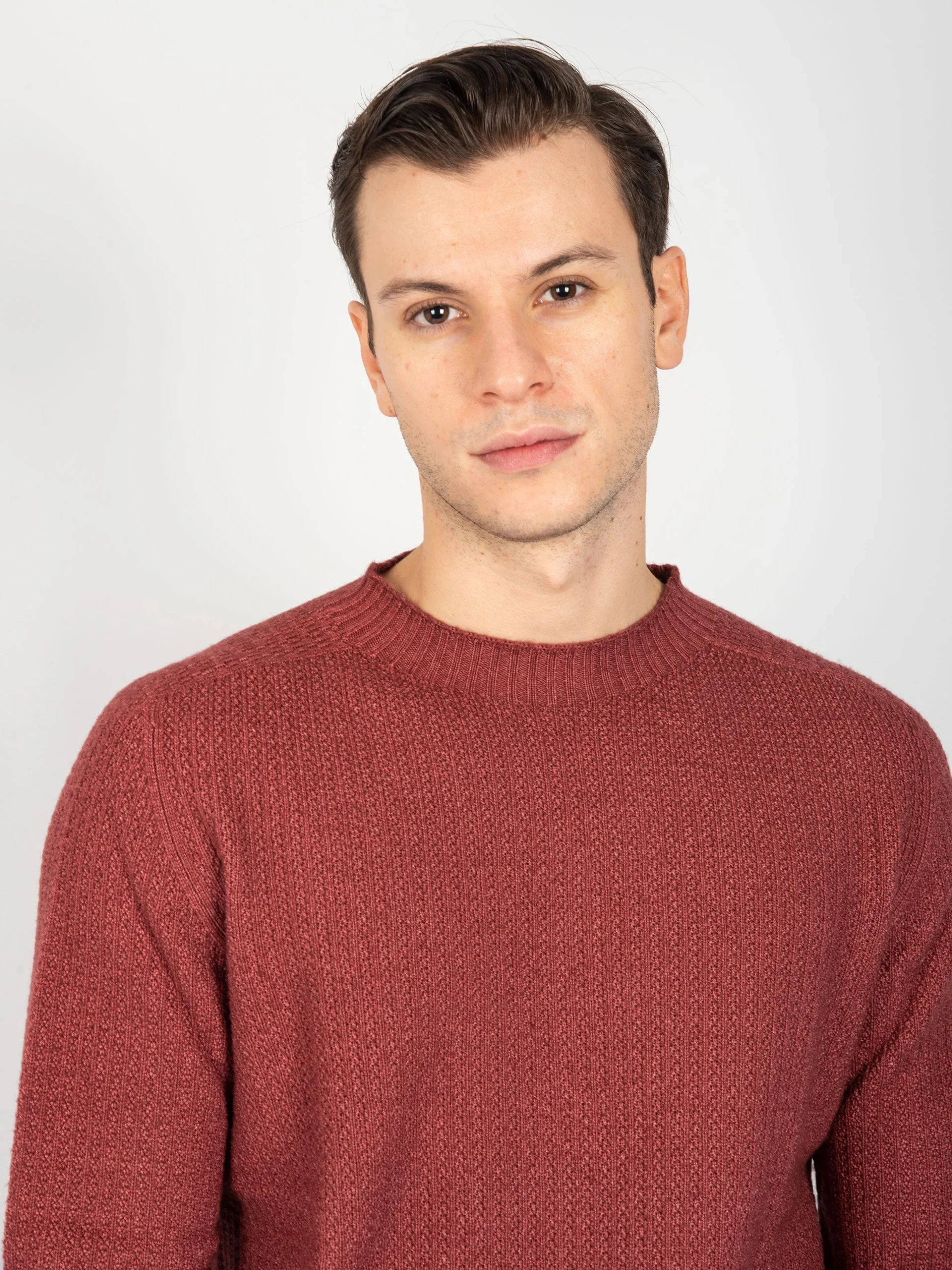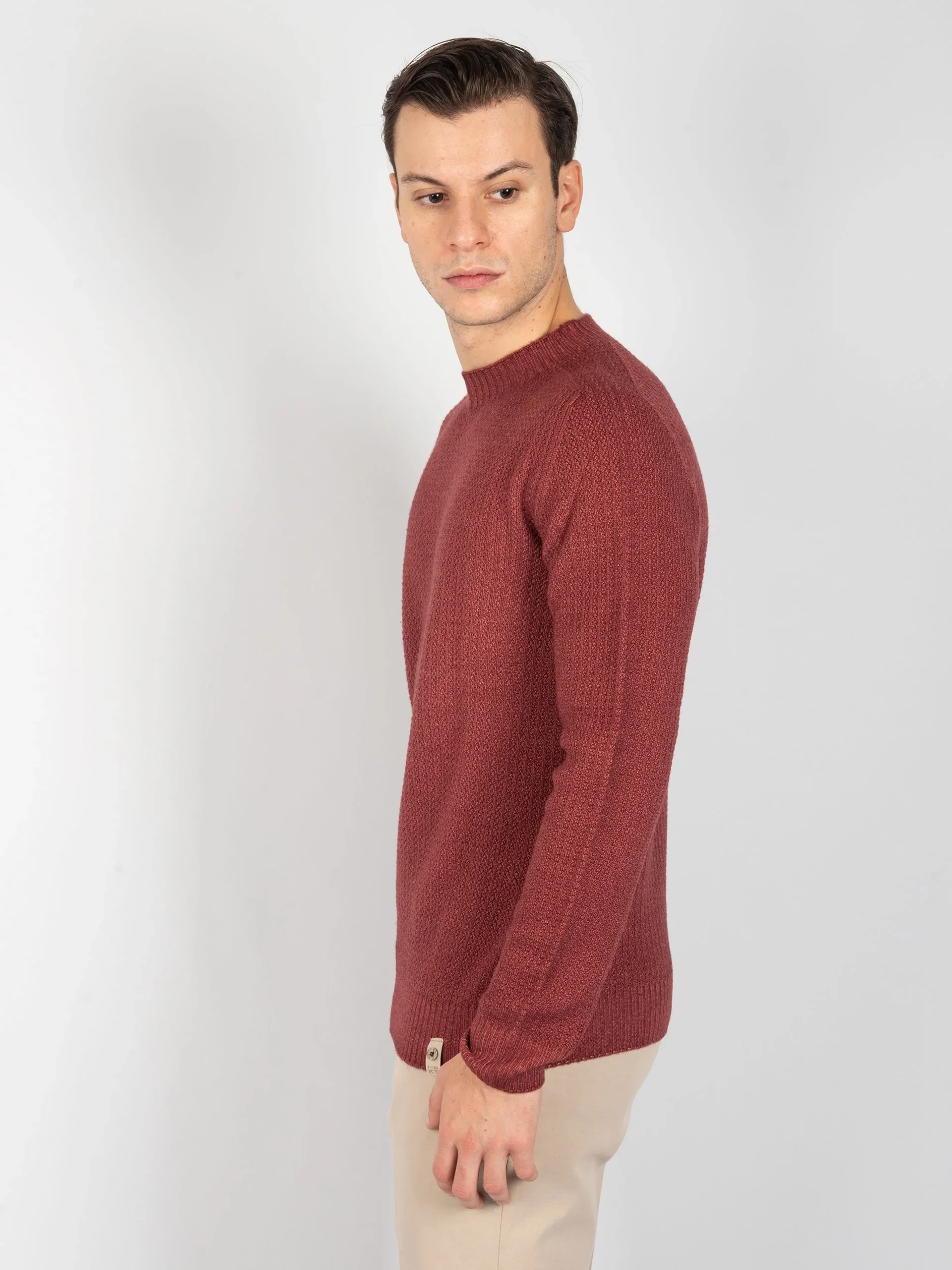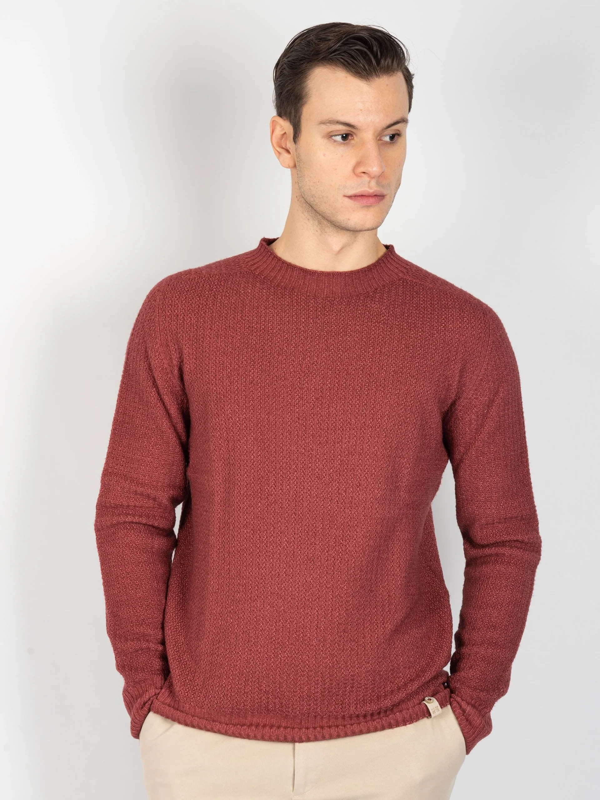 - Girocollo reversibile in 100% lana merinos.