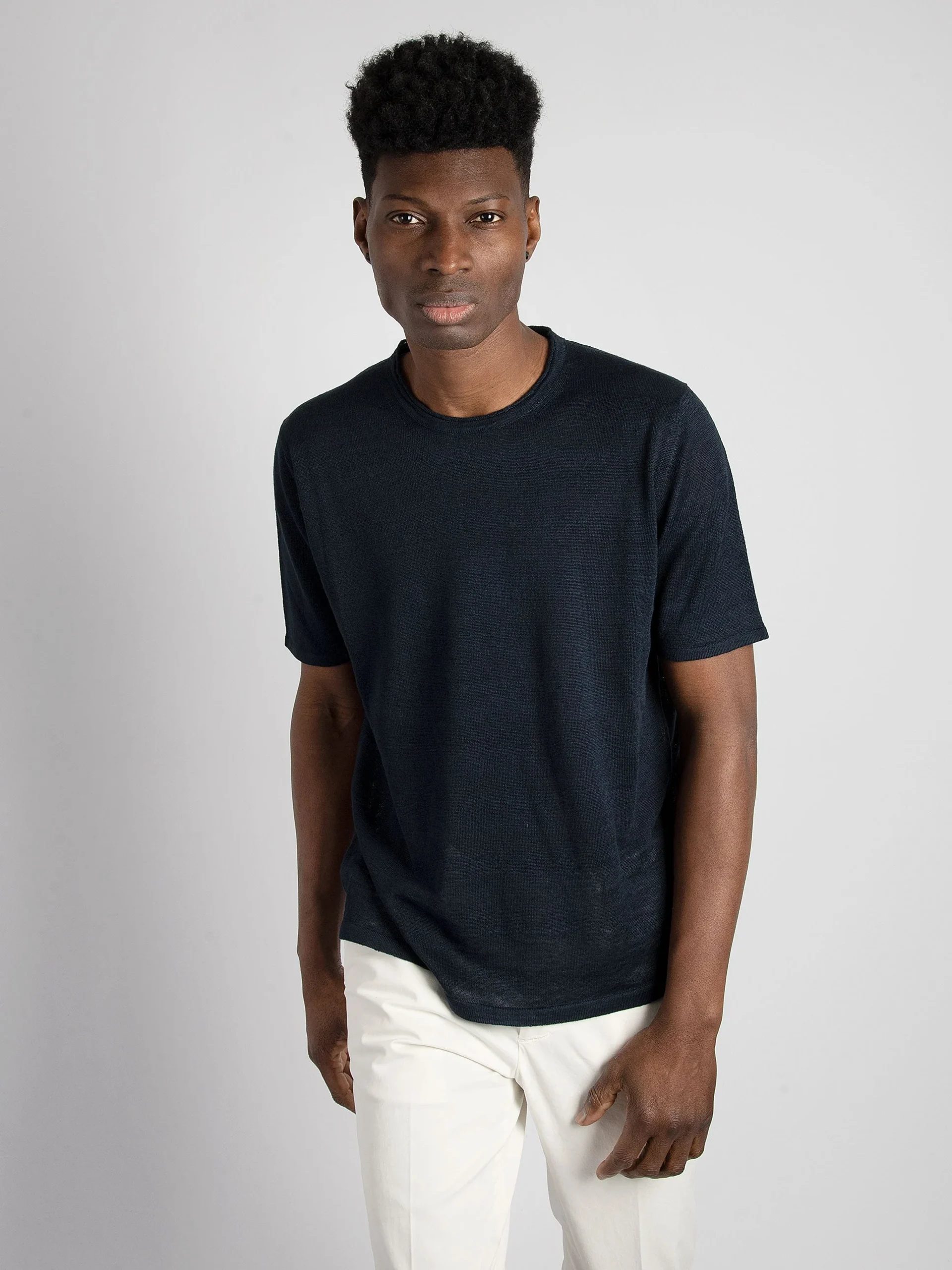 - Maglia girocollo in lino.
