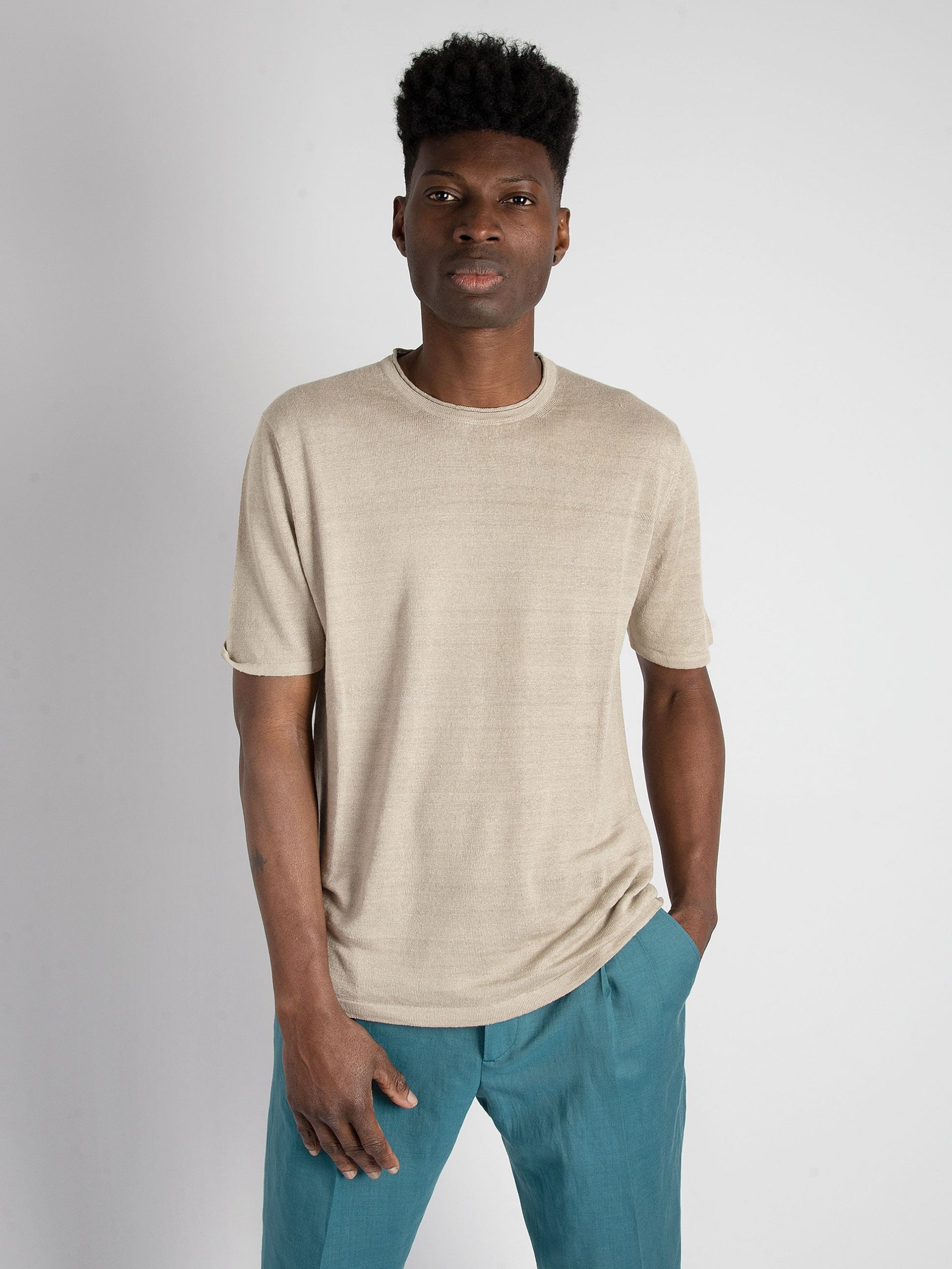 - Maglia girocollo in lino.