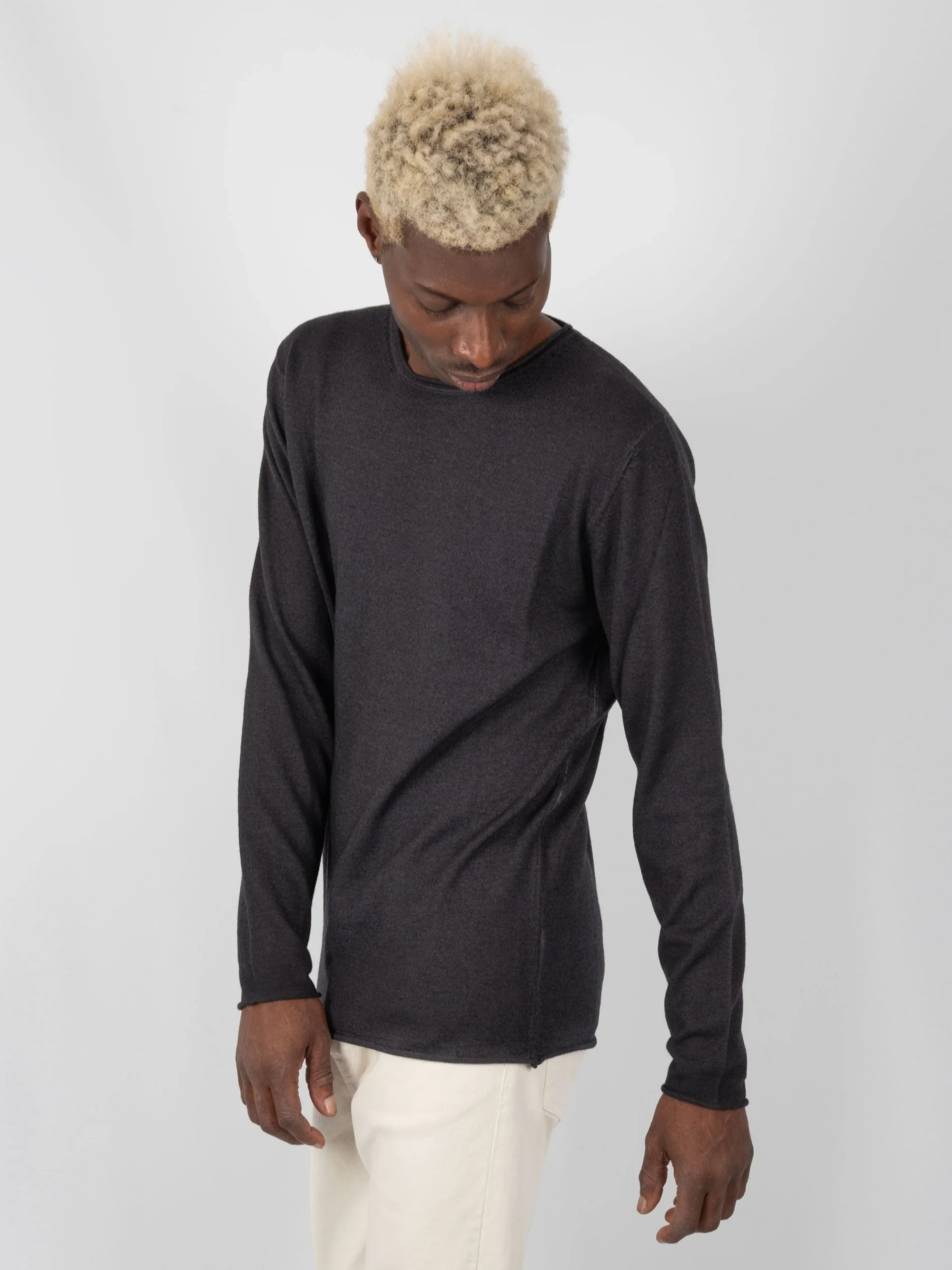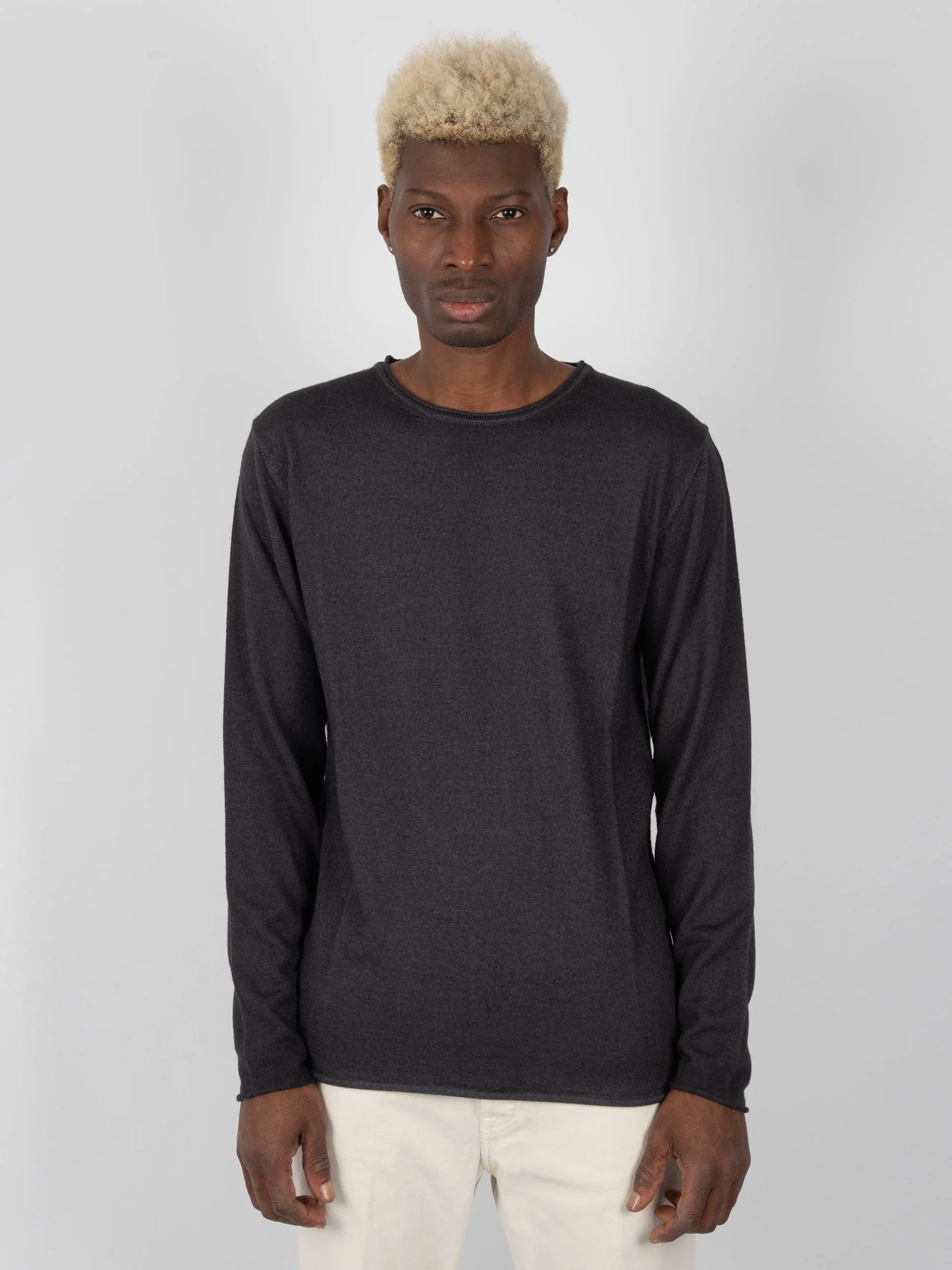 Mod: 2024/02 DF 0008 0009 Girocollo in lana 100% Merinos Loosefit. Colore non uniforme dovuto ad una tintura molecolare brevettata. Collo,polsini e fondo rotolino. Adatto per un look casual o anche come sotto abito. Vestibilità regolare. 100% Made in Italy. Il modello è alto 187 cm e pesa 70 kg: indossa una taglia L.