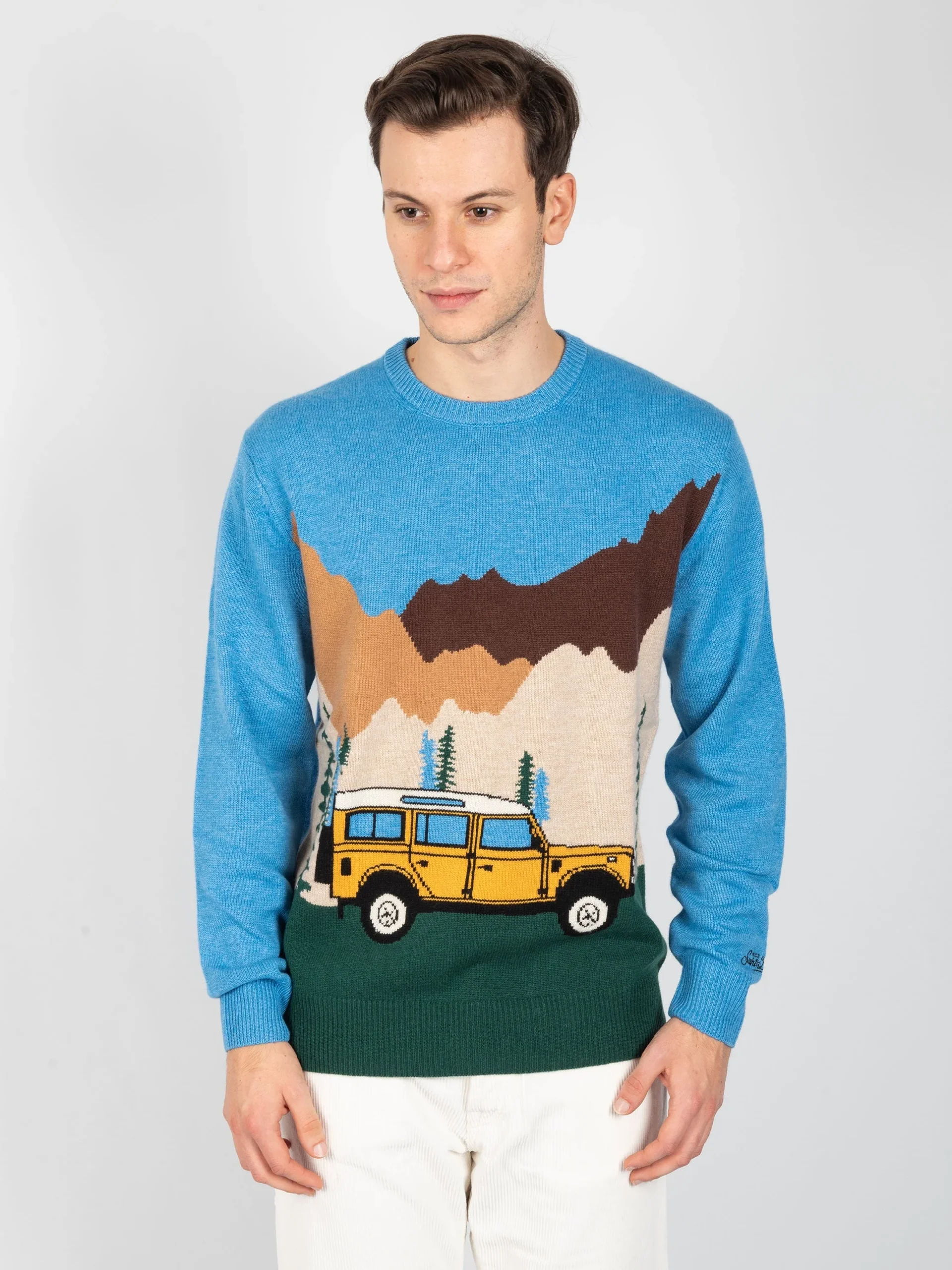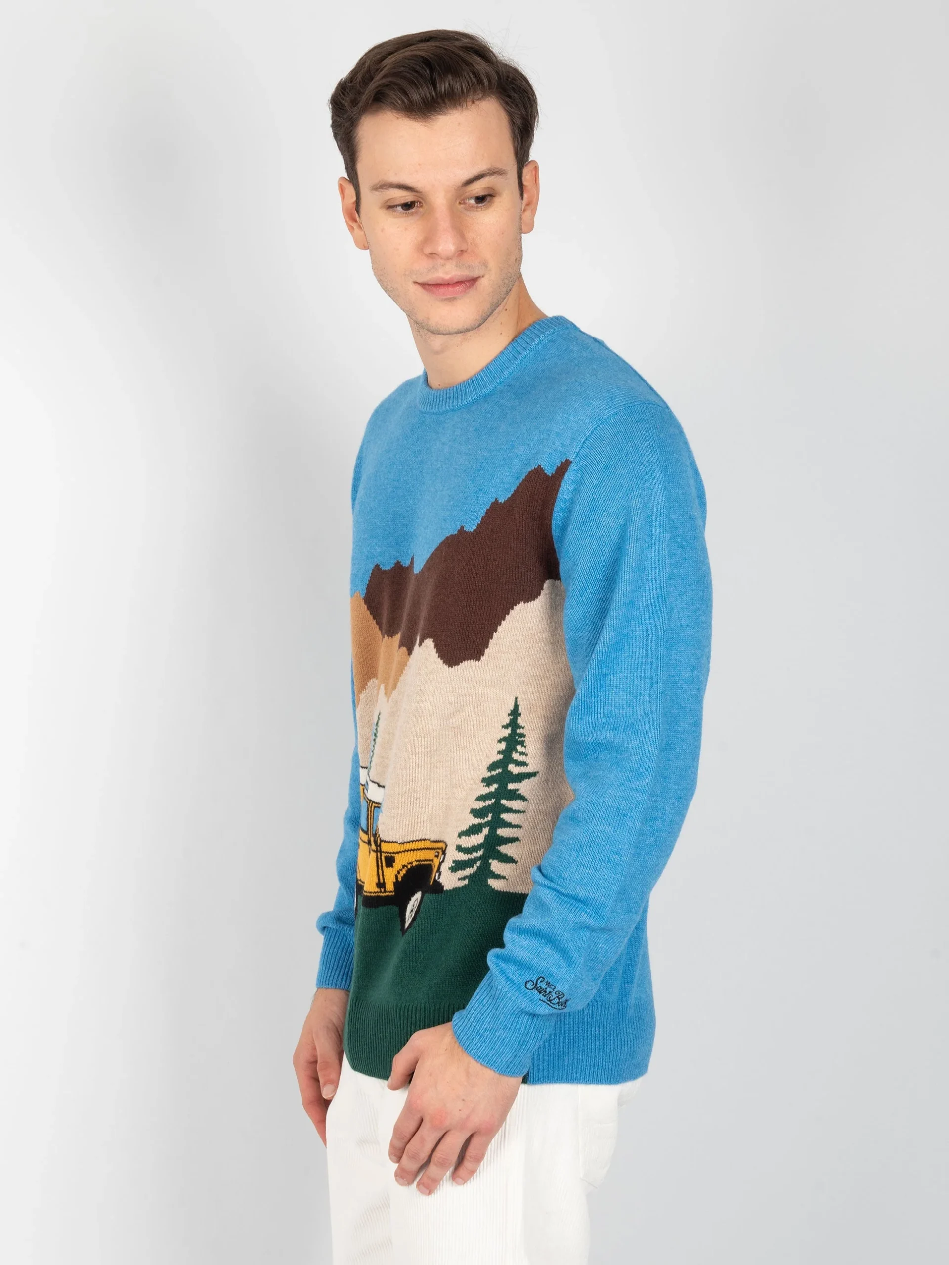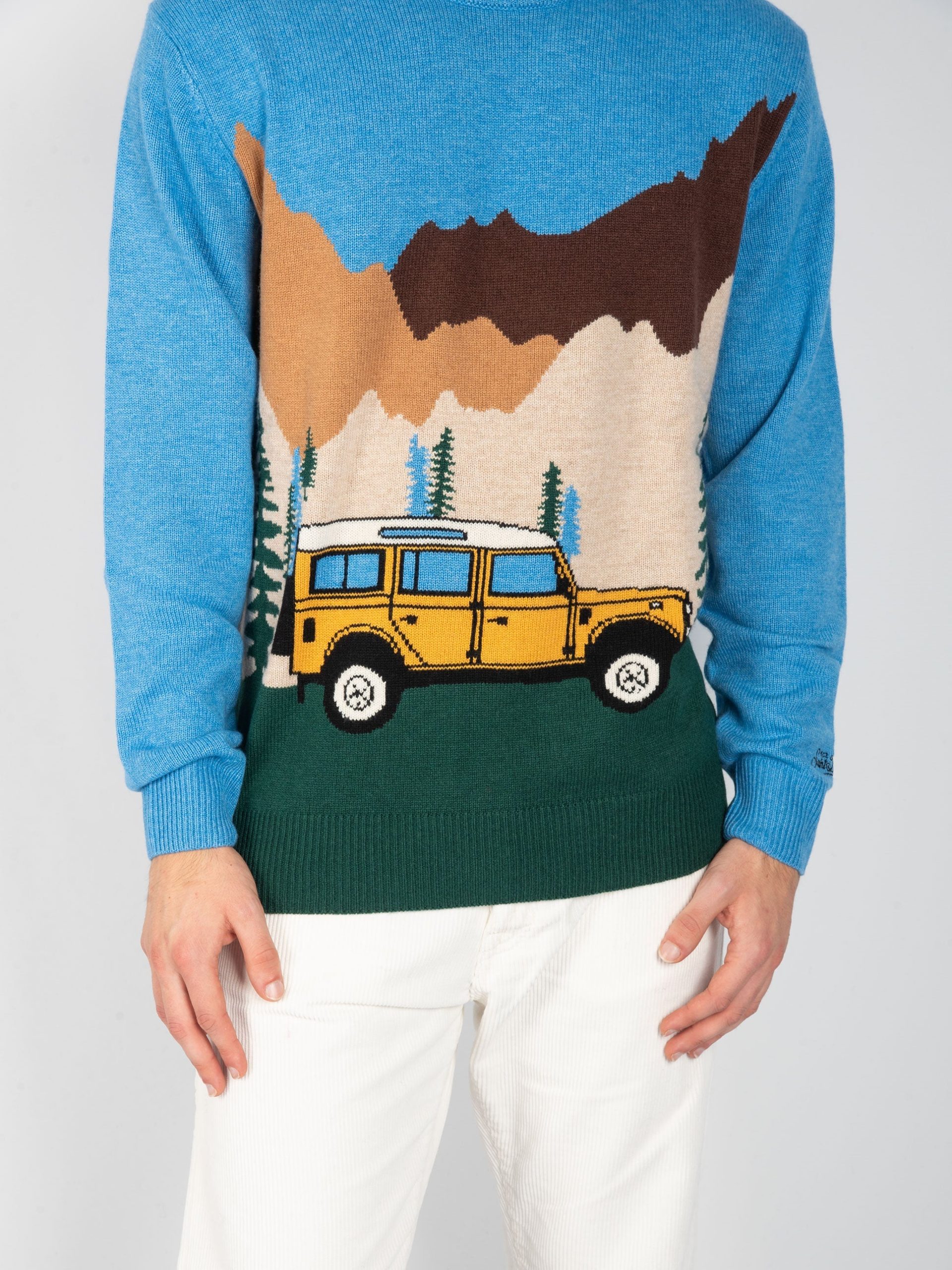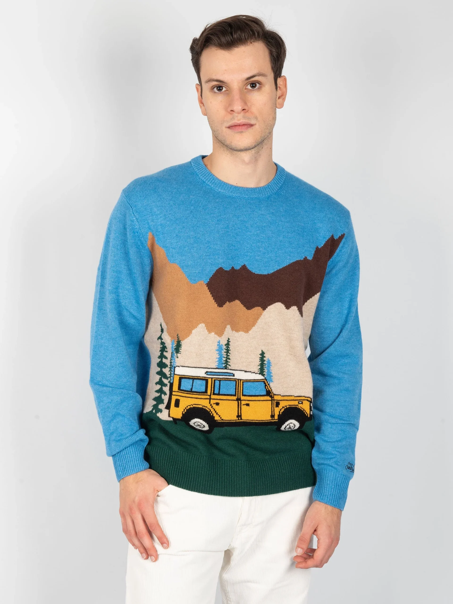 Mod: HERON C OFF ROAD LANDSCAPE 33 Maglia girocollo in misto lana con stampa. Cannolè sul fondo e polsini. Logo Saint Barth sulla manica sinistra. Composizione 40% lana, 25% viscosa, 25% poliammide e 10% cachemire. Il modello è alto 184 cm e pesa 73 kg: indossa una taglia L.