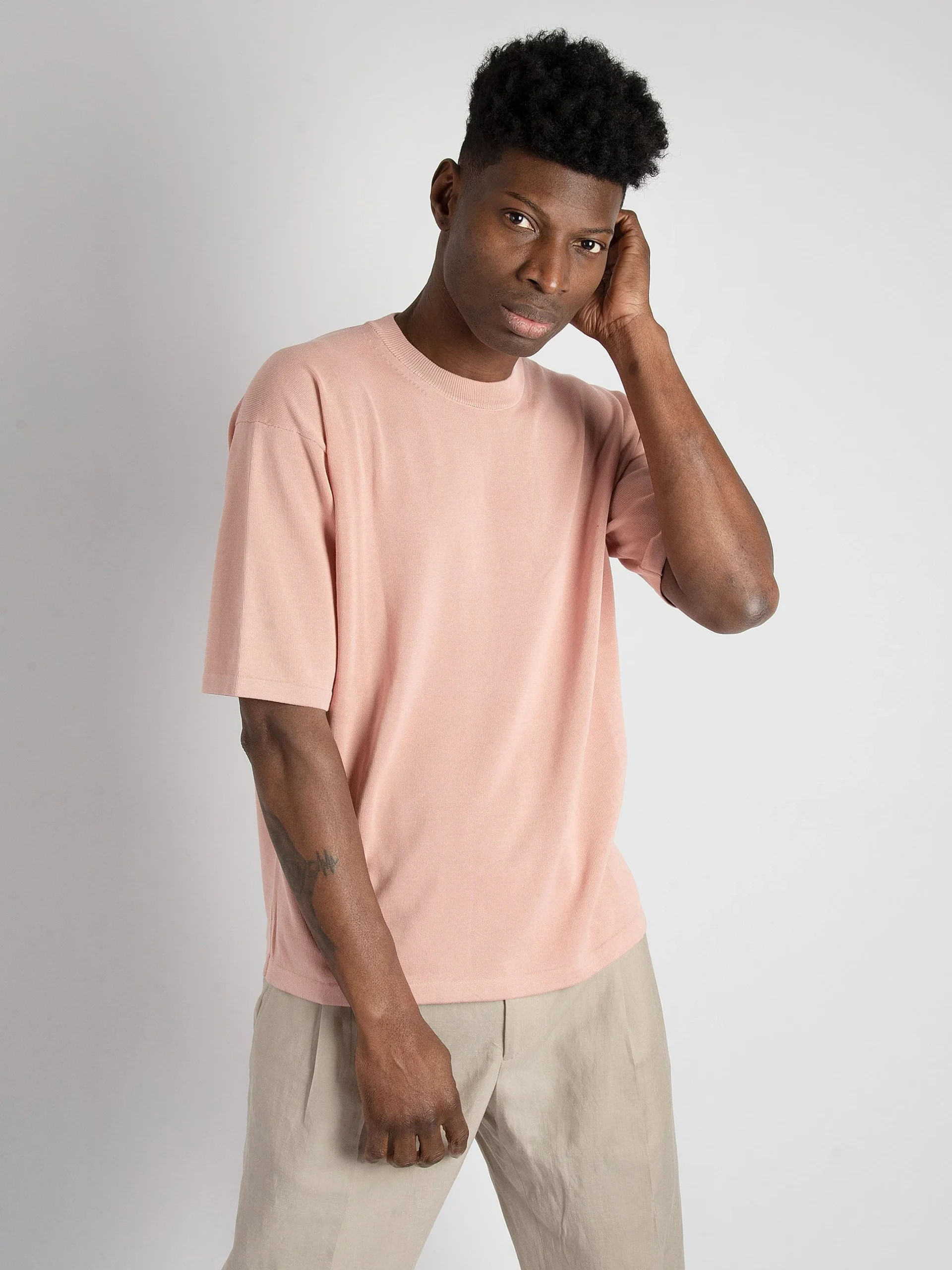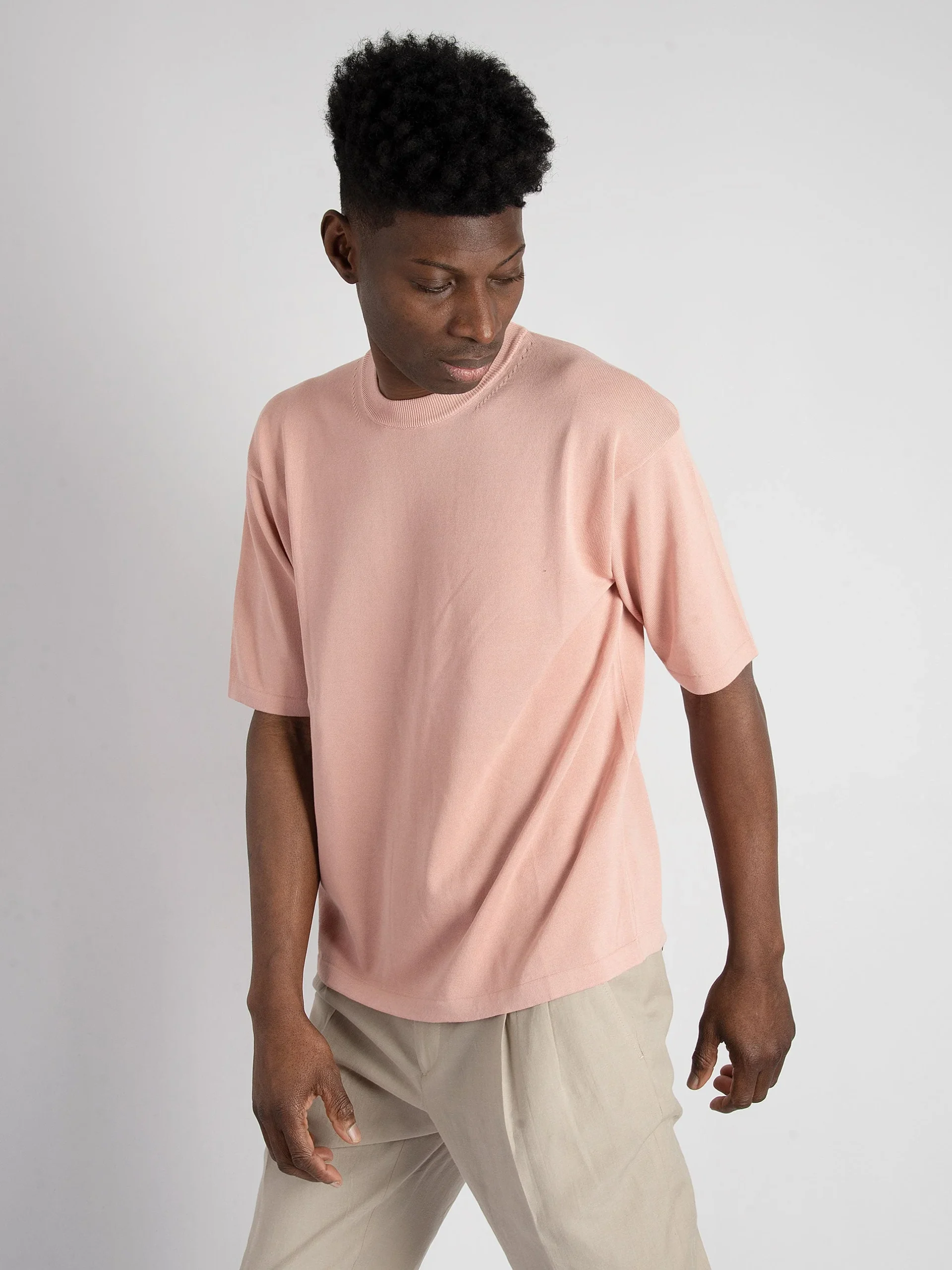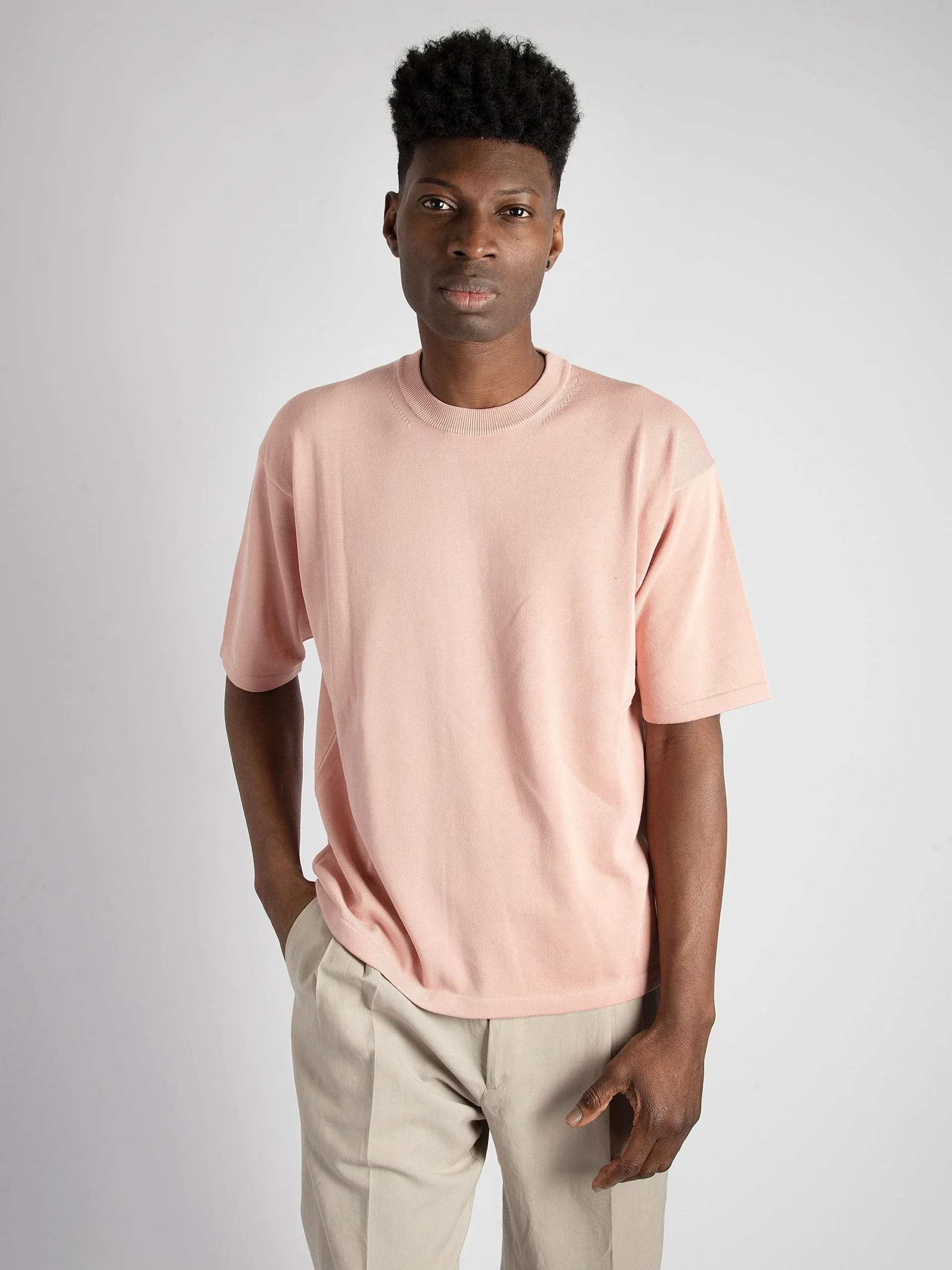 Mod: RL11021 31 ROSA Maglia in filo di cotone. Finto cannolè e orlo macchine sulle maniche. Girocollo con costine. Vestibilità over con spalla calata. Tessuto in 100% cotone. 100% prodotto in Italia. Il modello è alto 187 cm e pesa 70 kg: indossa una taglia 48.