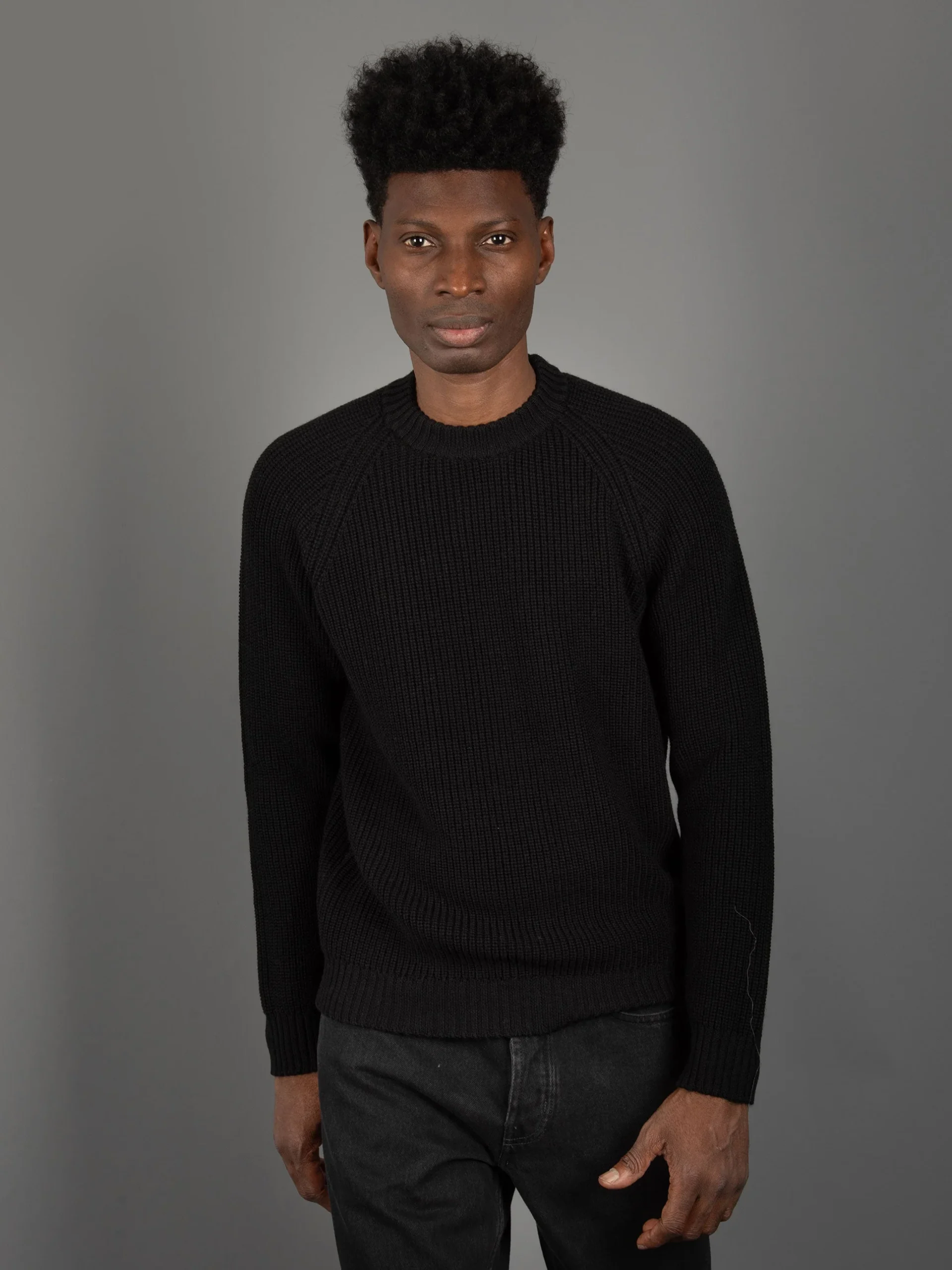 - Spalla raglan e cannolè su fondo e polsi.