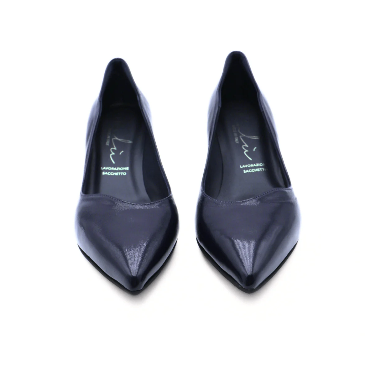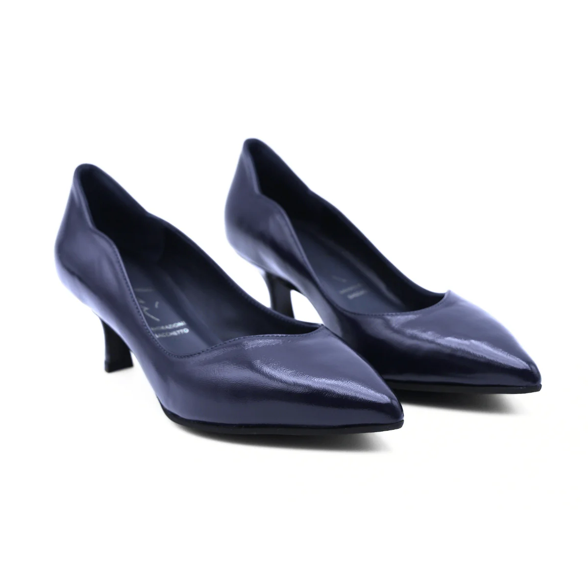 Décolleté da donna di MALÙ realizzata in pelle naplack blu. Interno e sottopiede foderati in pelle. Suola in gomma. Altezza tacco: 5cm MADE IN ITALY